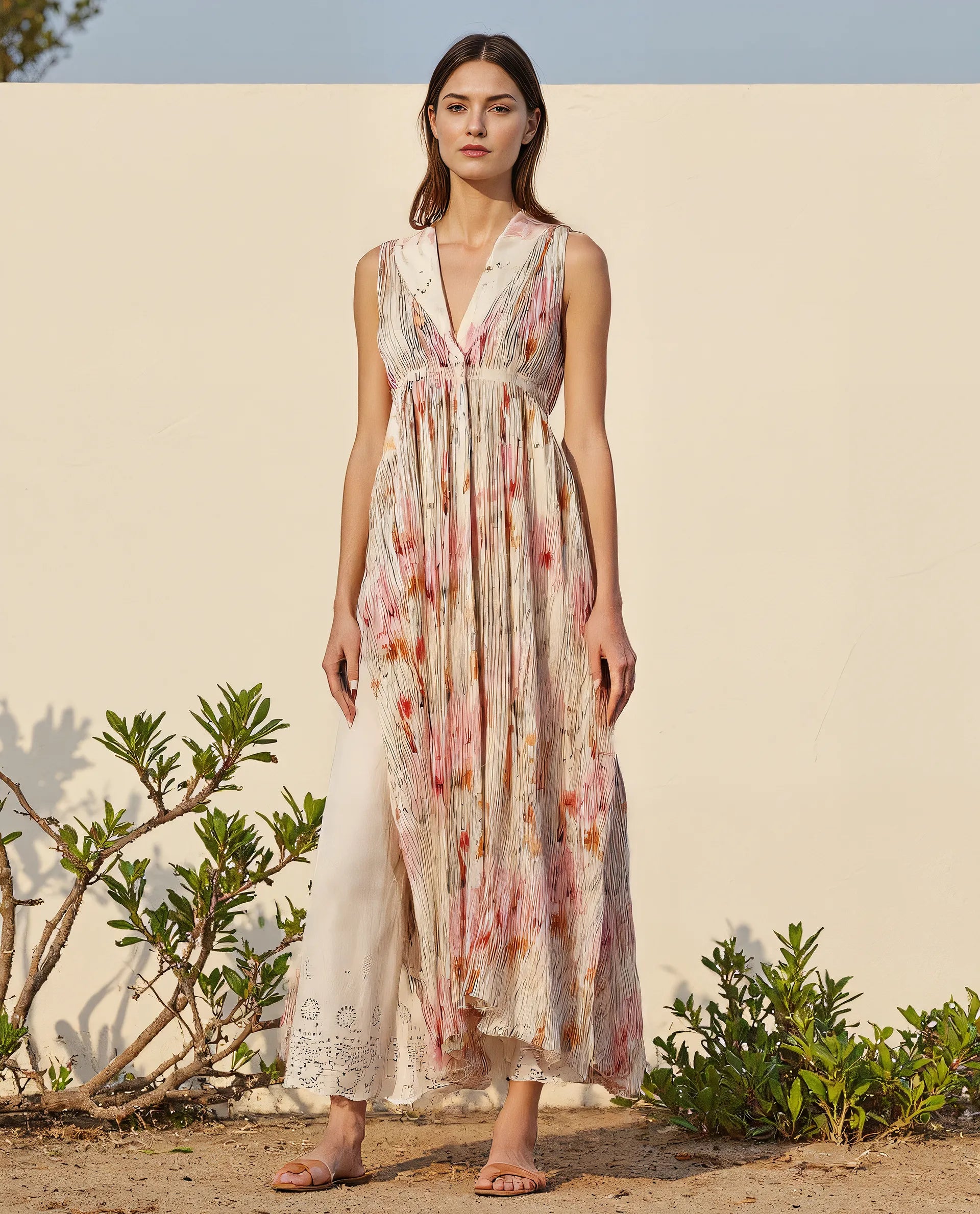 The model (Bust-31, Waist-24, Hip-34, Height-5'8") is wearing size XS.