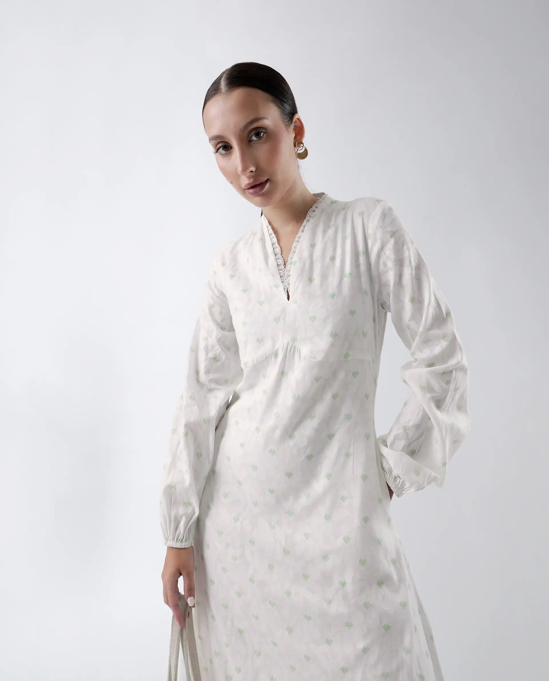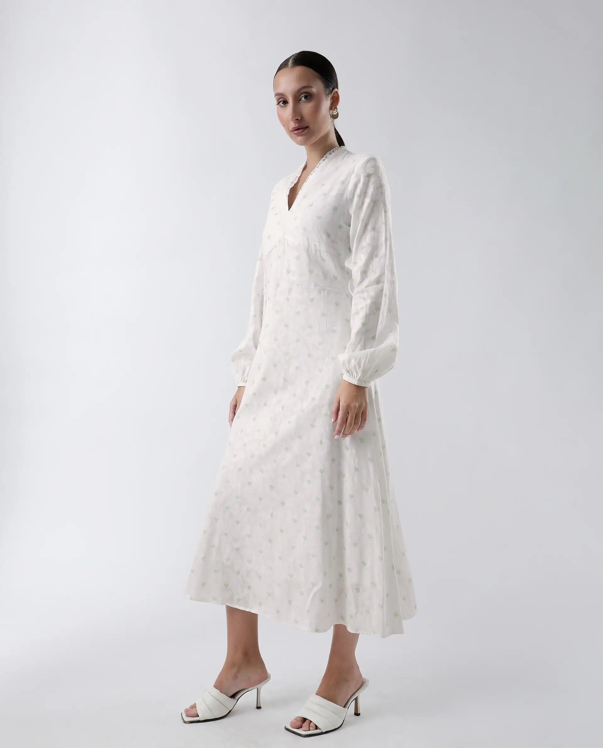 This Rareism Women Prento dress is crafted from 100% cotton blend fabric, offering a comfortable and breathable fit. The full sleeves and v-neckline add a touch of sophistication, while the zipper closure makes it easy to wear. The flared midi length and plain design provide a versatile and elegant look for any occasion.