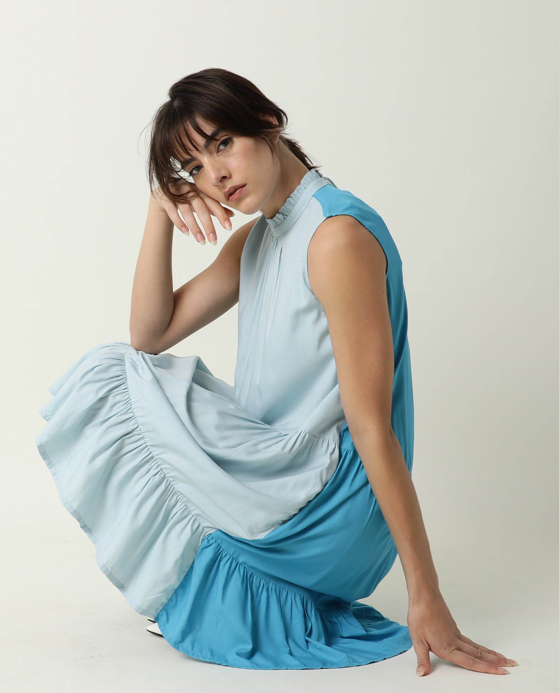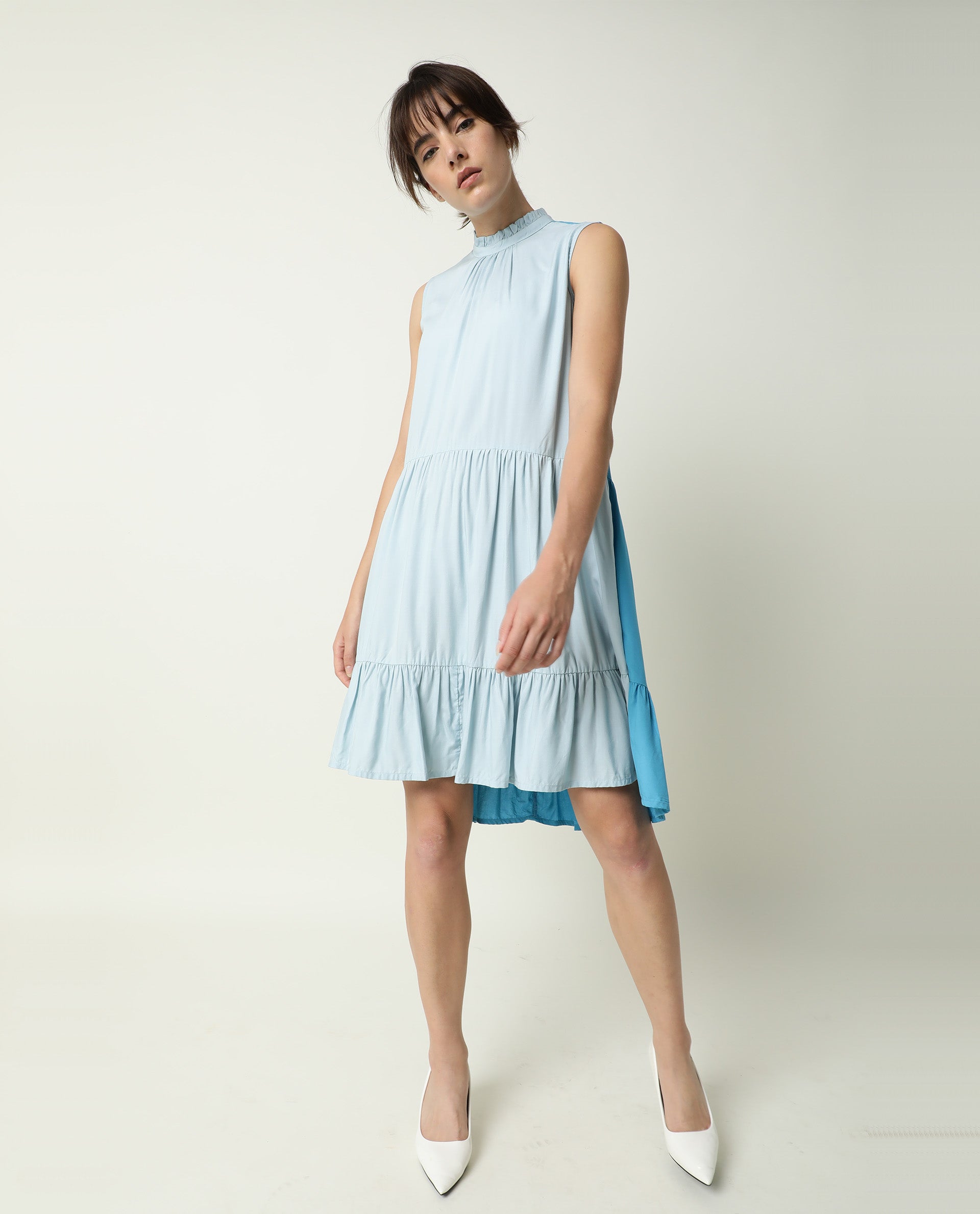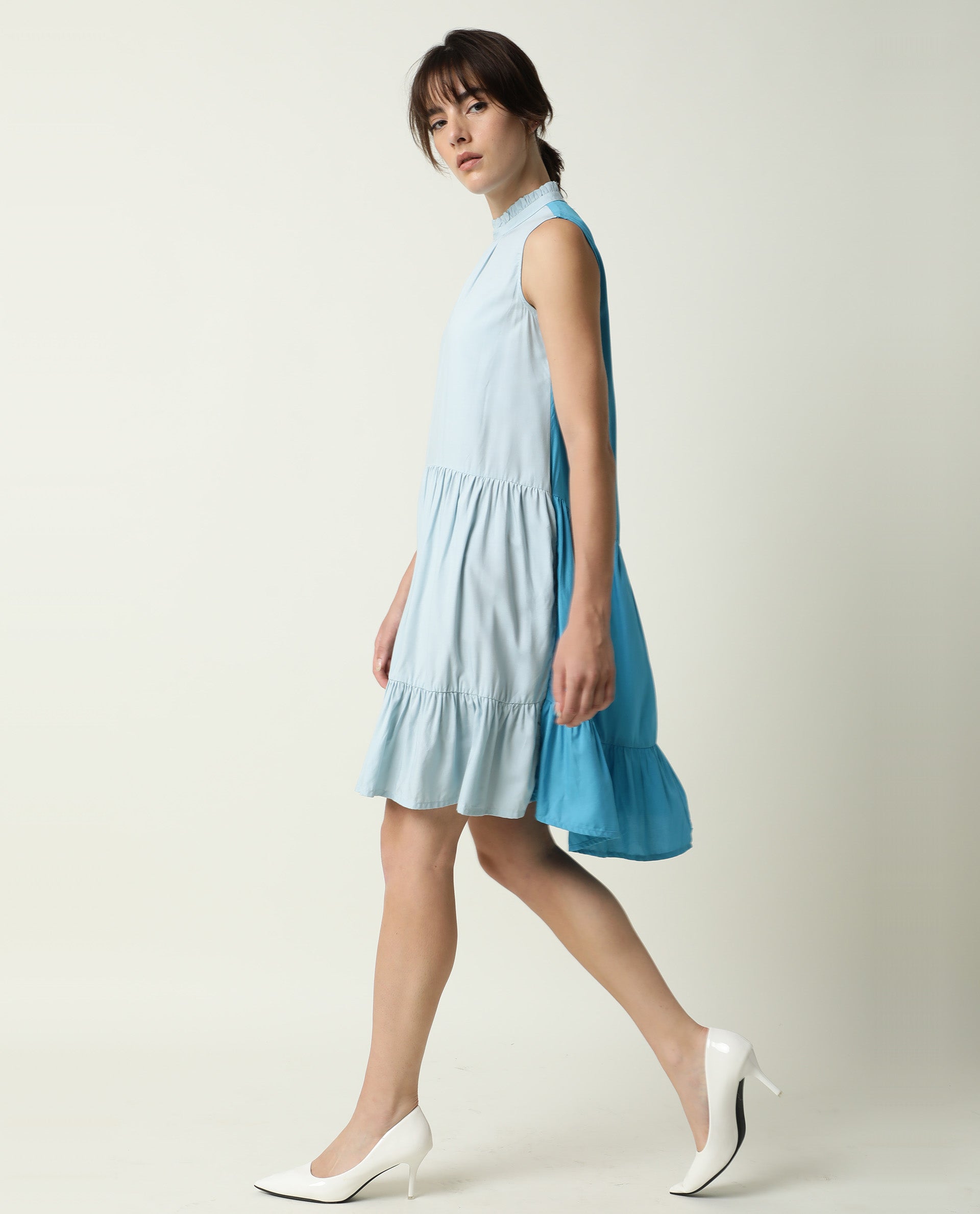 A urban style sleeveless tier dress in contrast colour blocking.