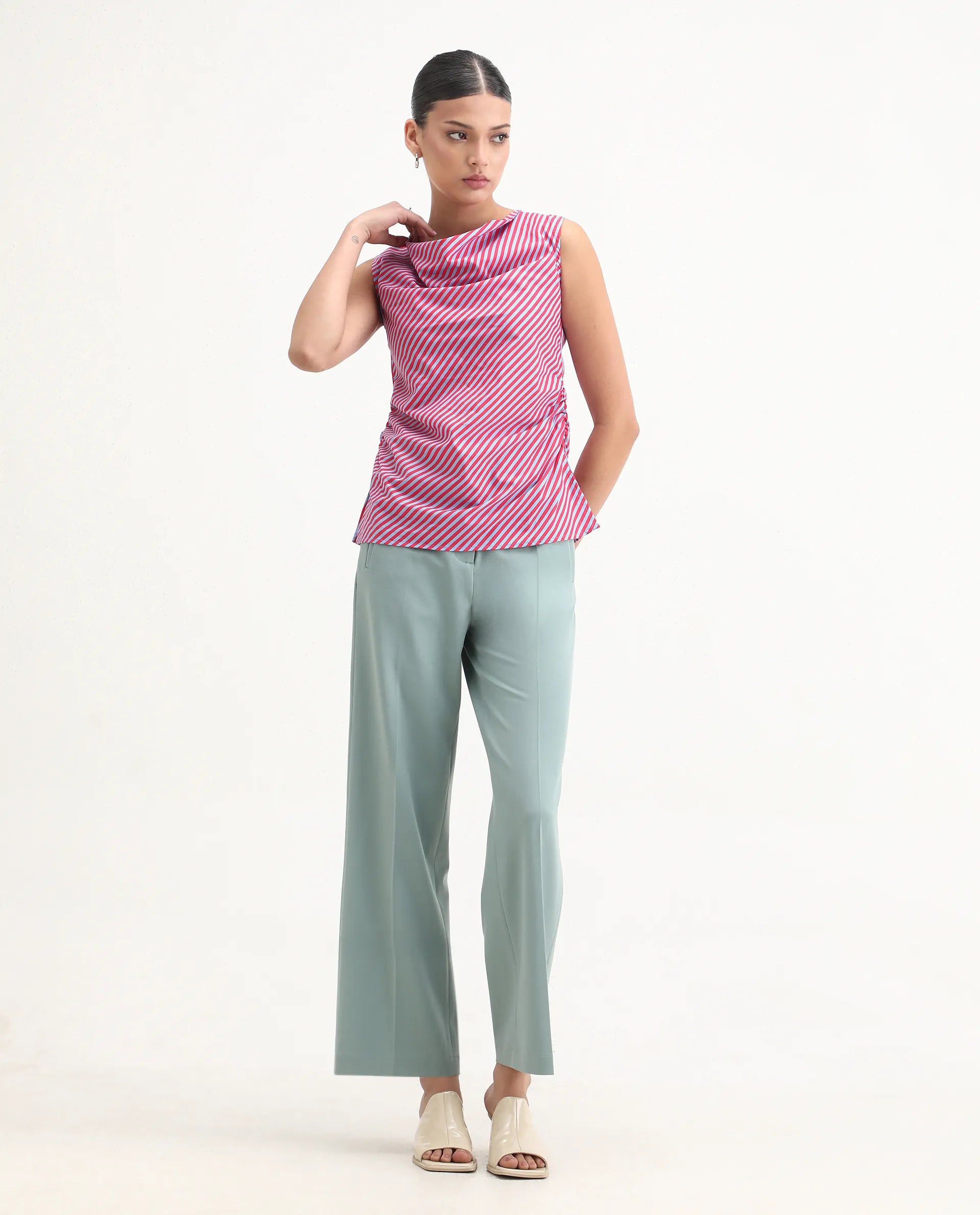 Stay effortlessly chic with our Printed Stripe Everyday Top. The cowl neck and side elastic ruching add a touch of style to your casual wardrobe. Crafted from 100% Cotton, it ensures comfort without compromising on fashion.