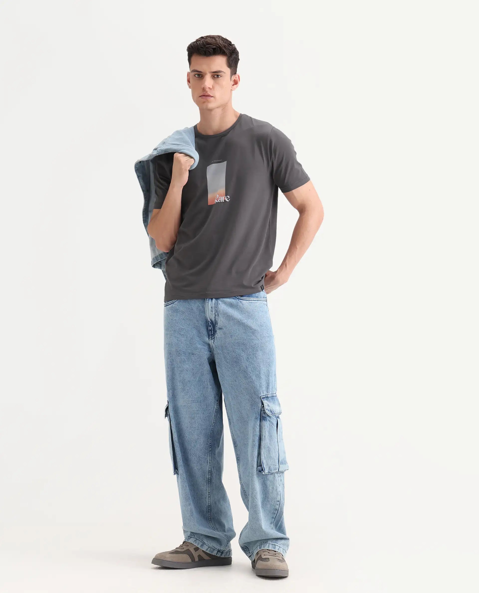 RECOR - GREY REGULAR FIT GRAPHIC PRINT T-SHIRT