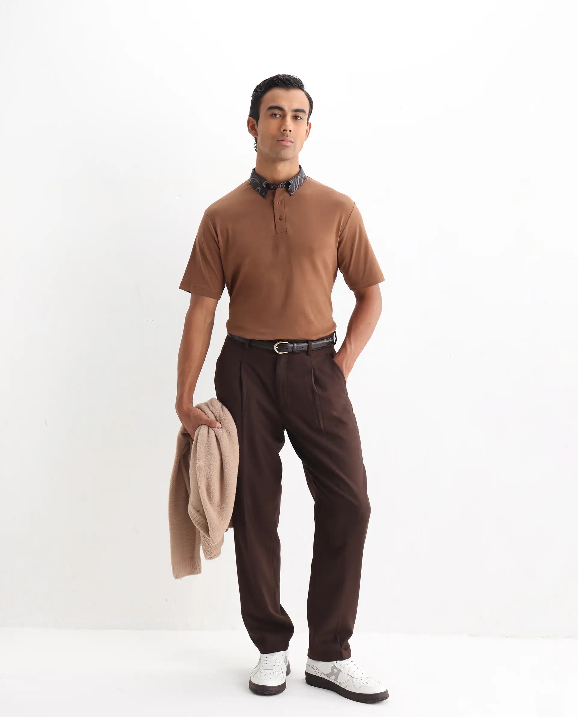 This mens polo from RARE RABBIT delivers a polished, understated look ideal for day-to-day dressing. Its smooth lines maintain a calm and collected feel. A versatile piece for those who prefer subtle styling.