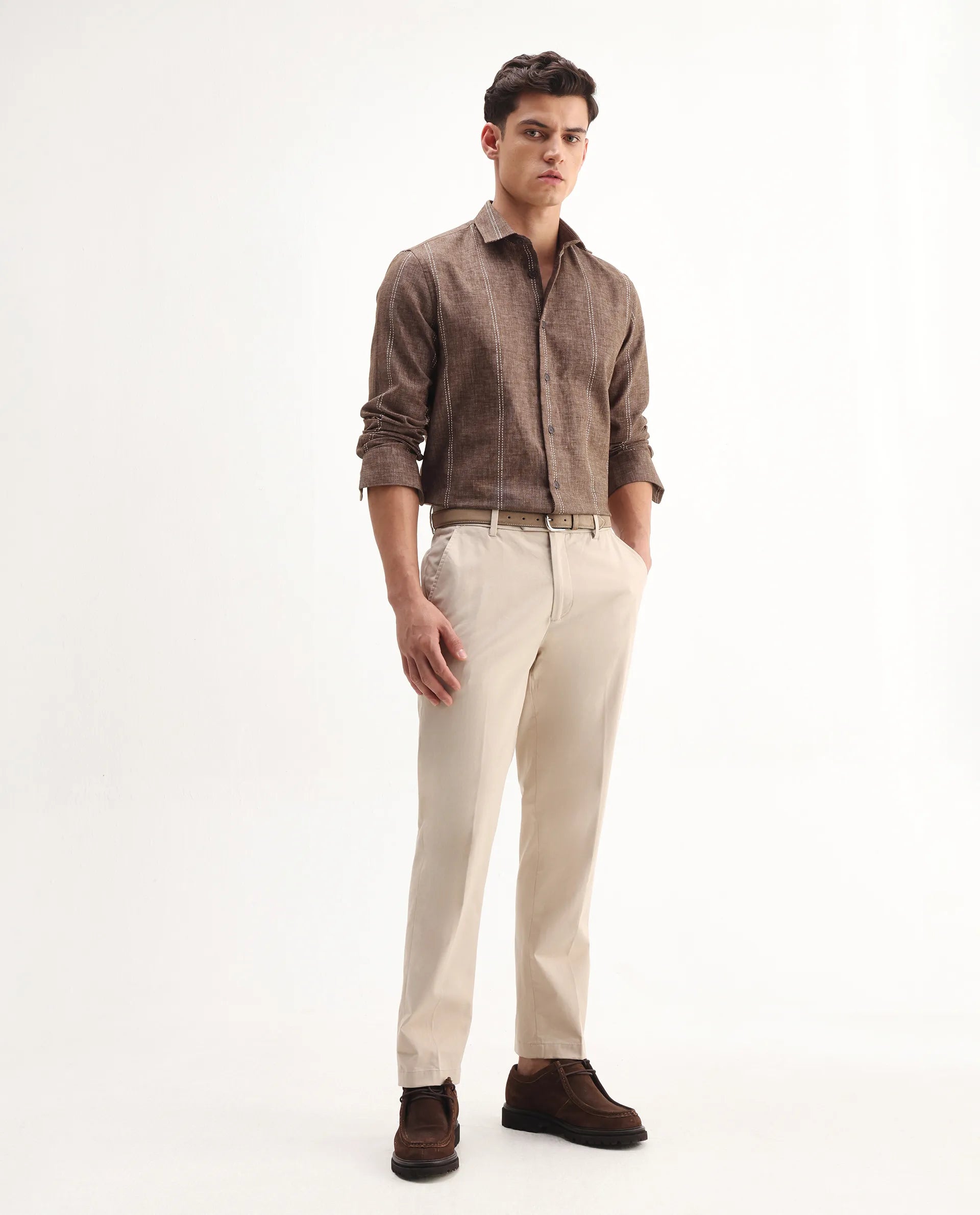This mens shirt from RARE RABBIT carries a contemporary and minimal charm. Its neat styling keeps the outfit looking fresh and composed. A reliable pick for someone who prefers a soft, modern aesthetic.