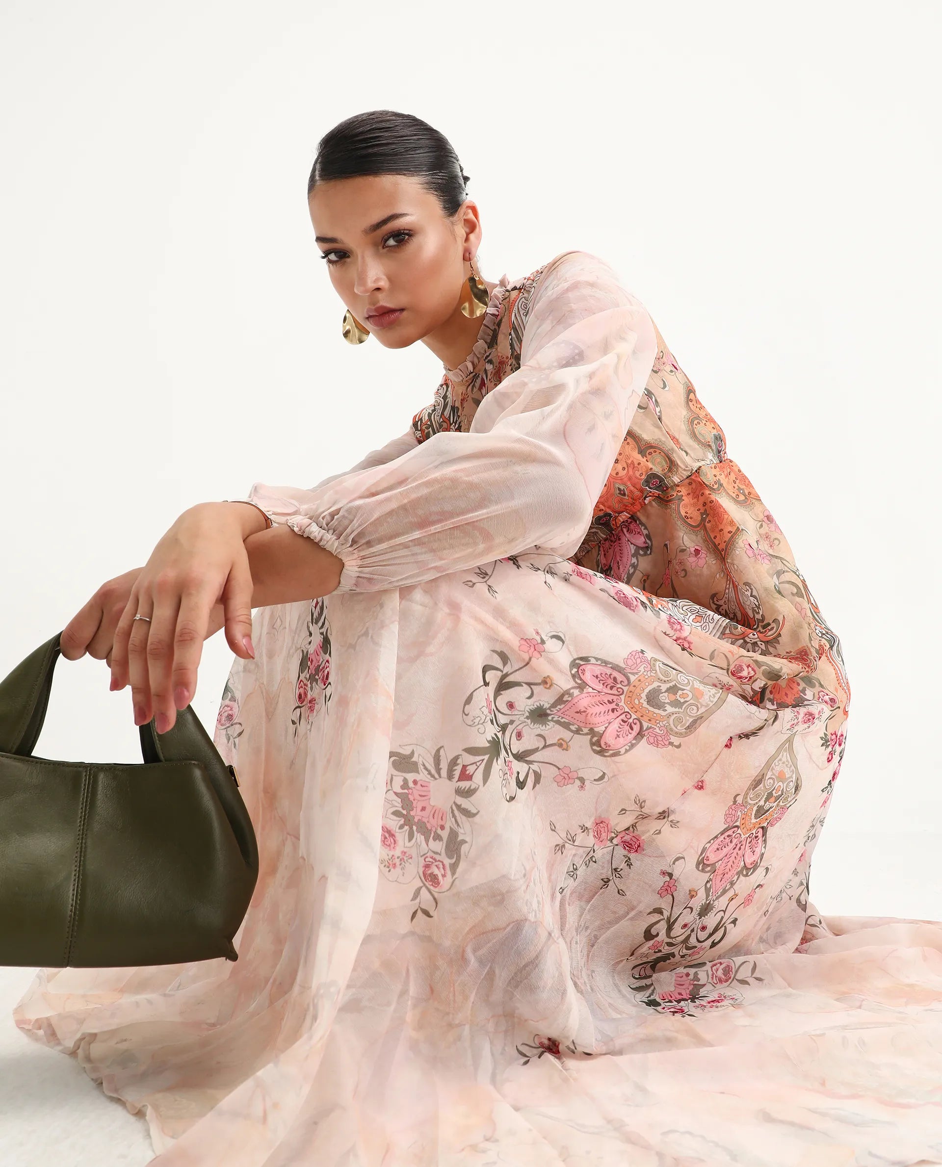 Get ready to stand out in our Rareism Women Ronav Beige Floral Print Dress! Made with soft and flowy 100% polyester fabric, this dress features bishop sleeves and a ruffled neck for a touch of femininity. The fit and flare silhouette is flattering for all body shapes, making it a must-have for any occasion. Embrace your unique sense of style with this statement-making maxi dress.