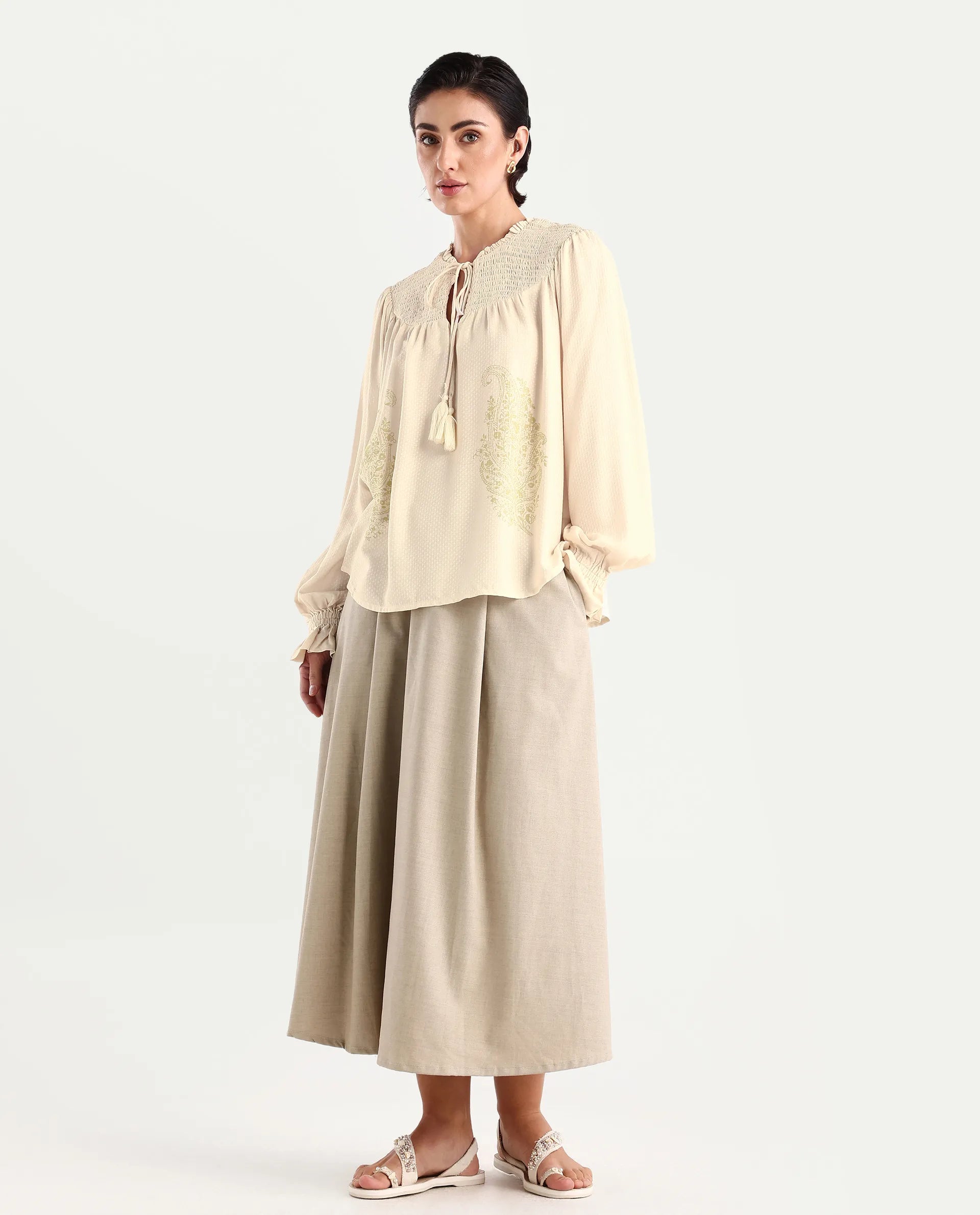This Rareism top features a 100% viscose fabric and raglan sleeves for a comfortable and lightweight fit. The ruffled neck adds a touch of elegance, while the paisley print adds a stylish and unique twist. With its relaxed fit, this top is perfect for any occasion.