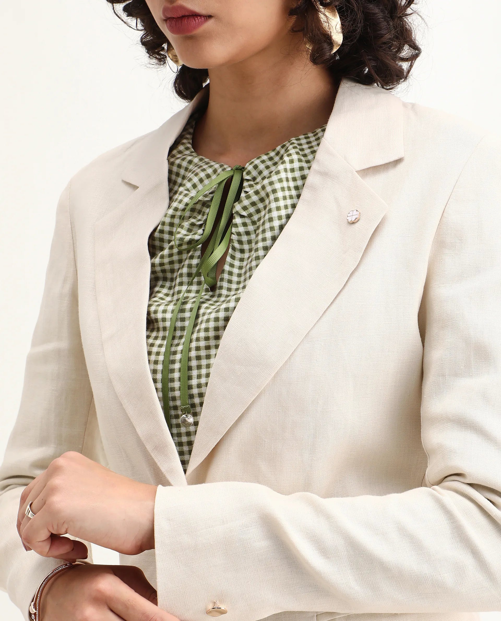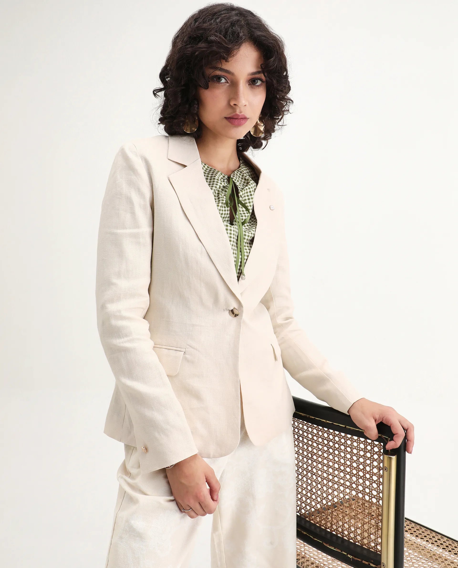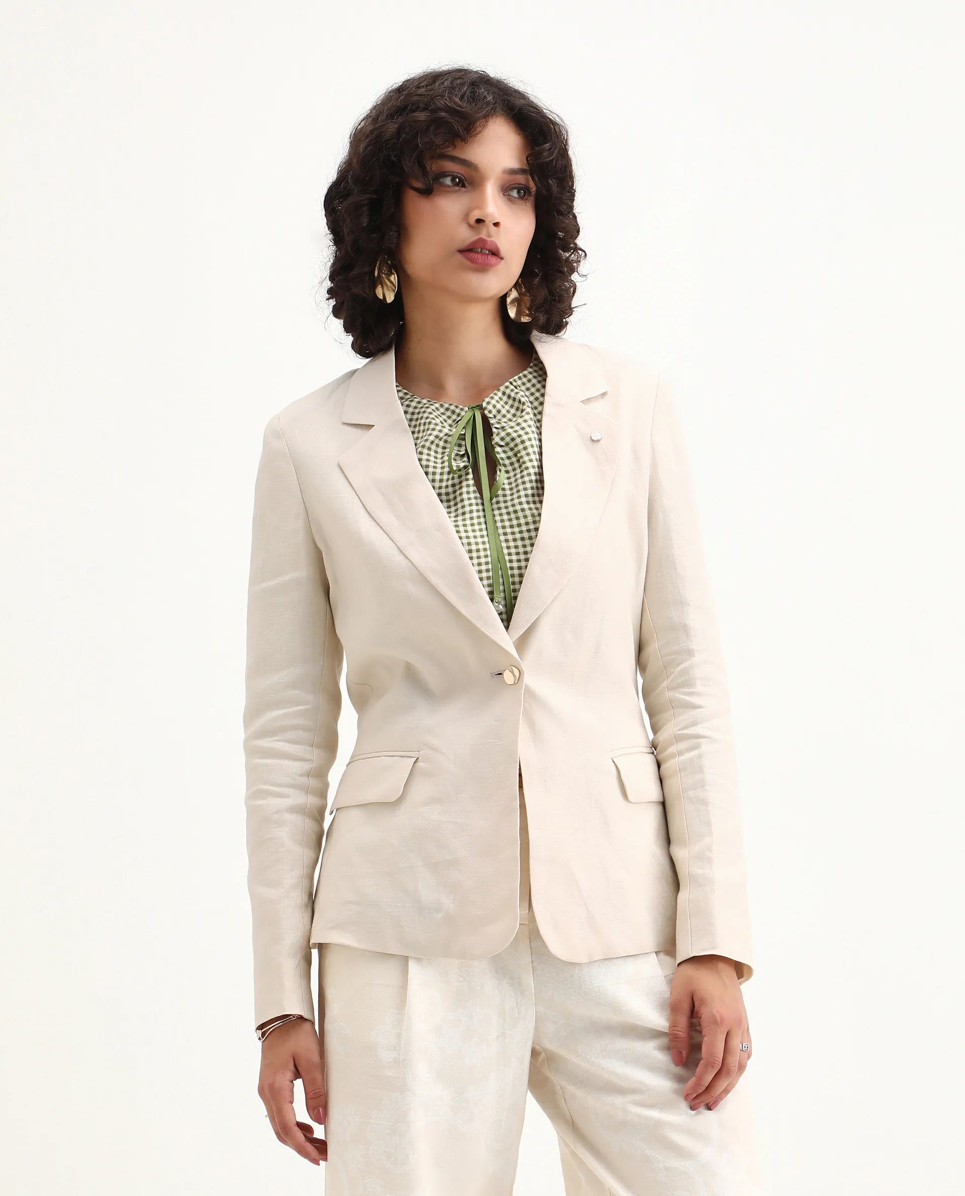 Be the queen of casual chic with the Rareism Ronbla-T Beige Linen Blazer! Made from high-quality linen fabric, this blazer features a full sleeve design and a lapel neck for a classic and sophisticated look. Perfect for those who want to add a touch of elegance to their everyday wardrobe. (No guarantees, but you may also feel like a boss babe while wearing this blazer.