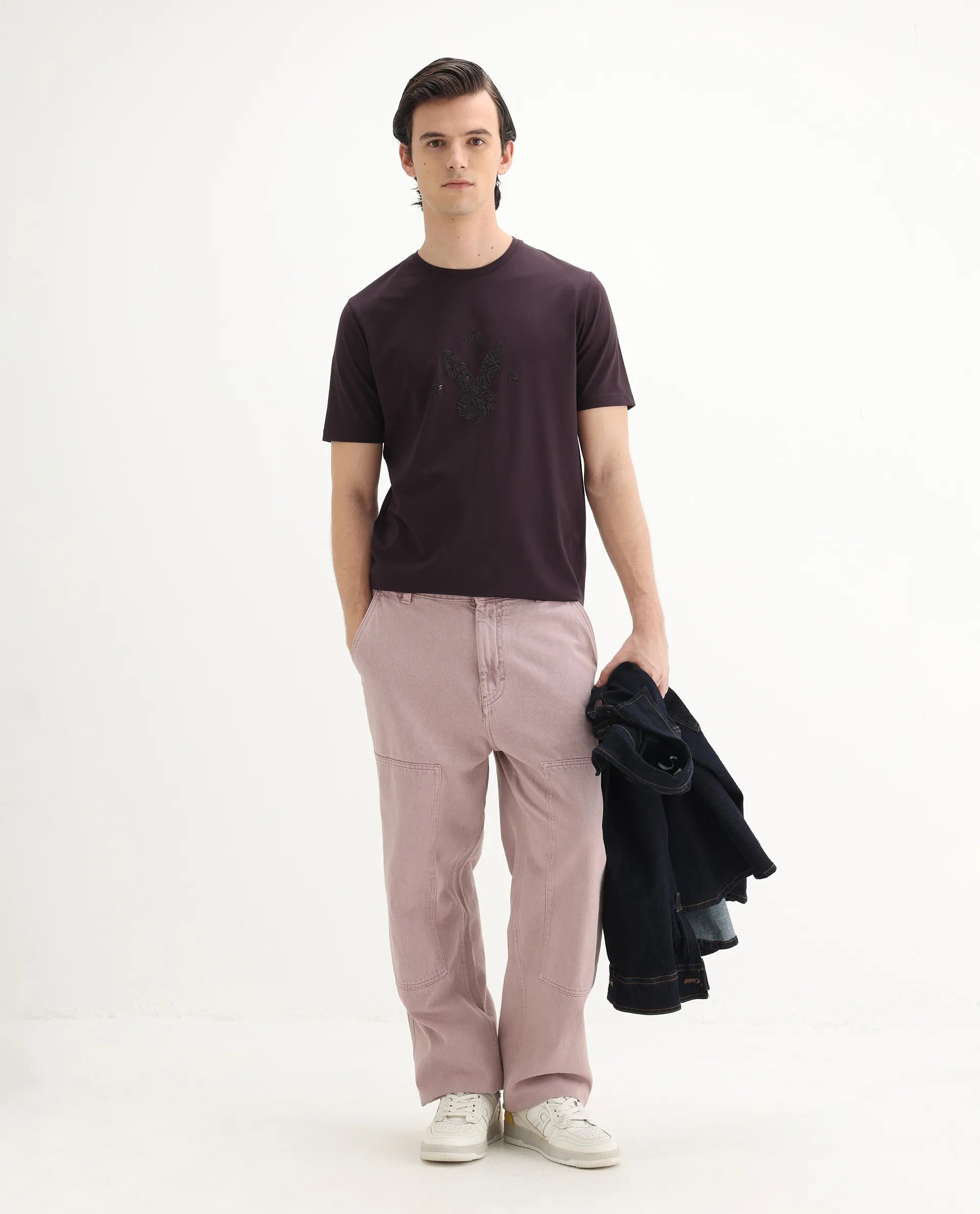 This mens t-shirt from RARE RABBIT carries a contemporary and minimal charm. Its neat styling keeps the outfit looking fresh and composed. A reliable pick for someone who prefers a soft, modern aesthetic.