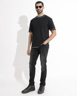 This mens t-shirt from RARE RABBIT carries a contemporary and minimal charm. Its neat styling keeps the outfit looking fresh and composed. A reliable pick for someone who prefers a soft, modern aesthetic.