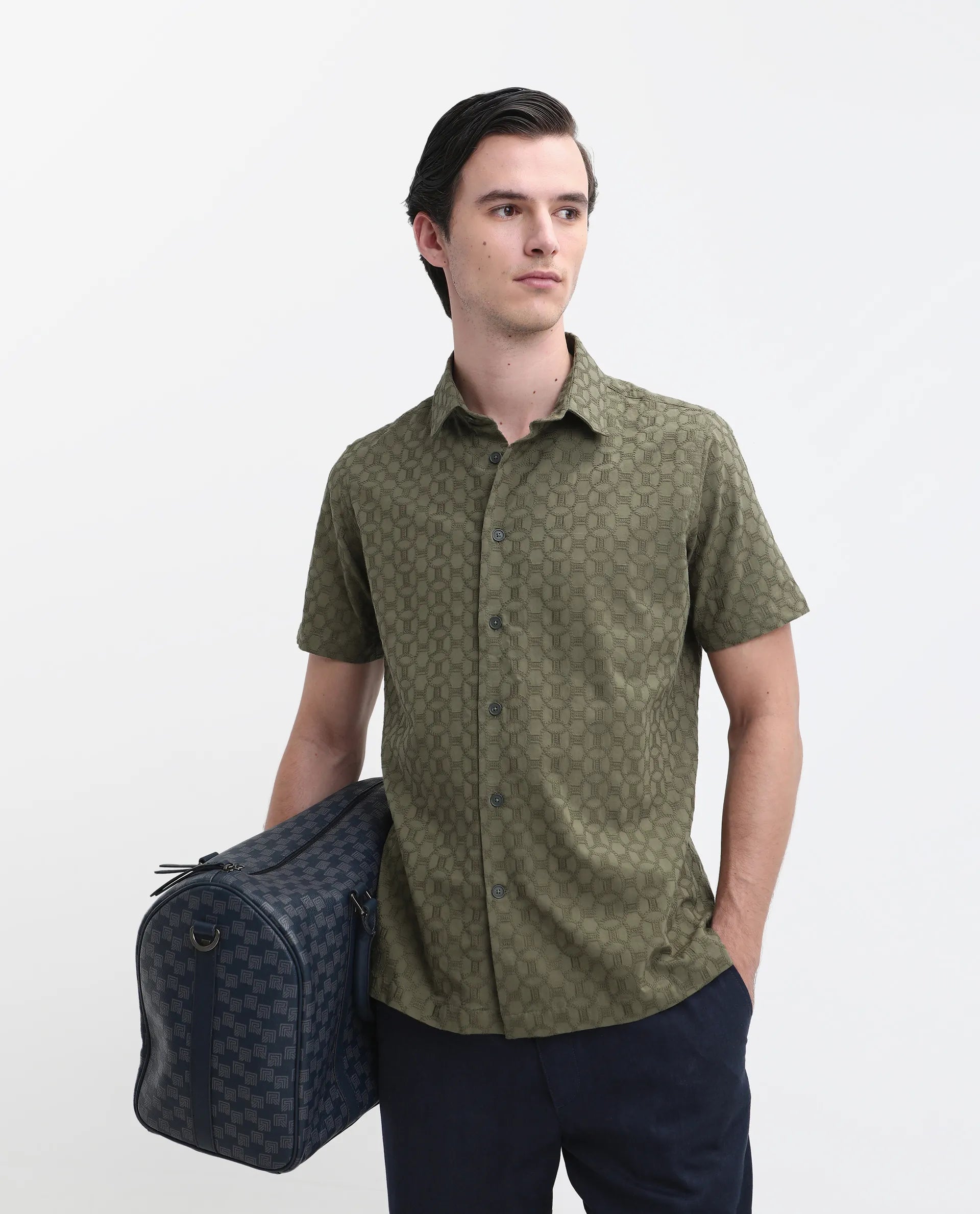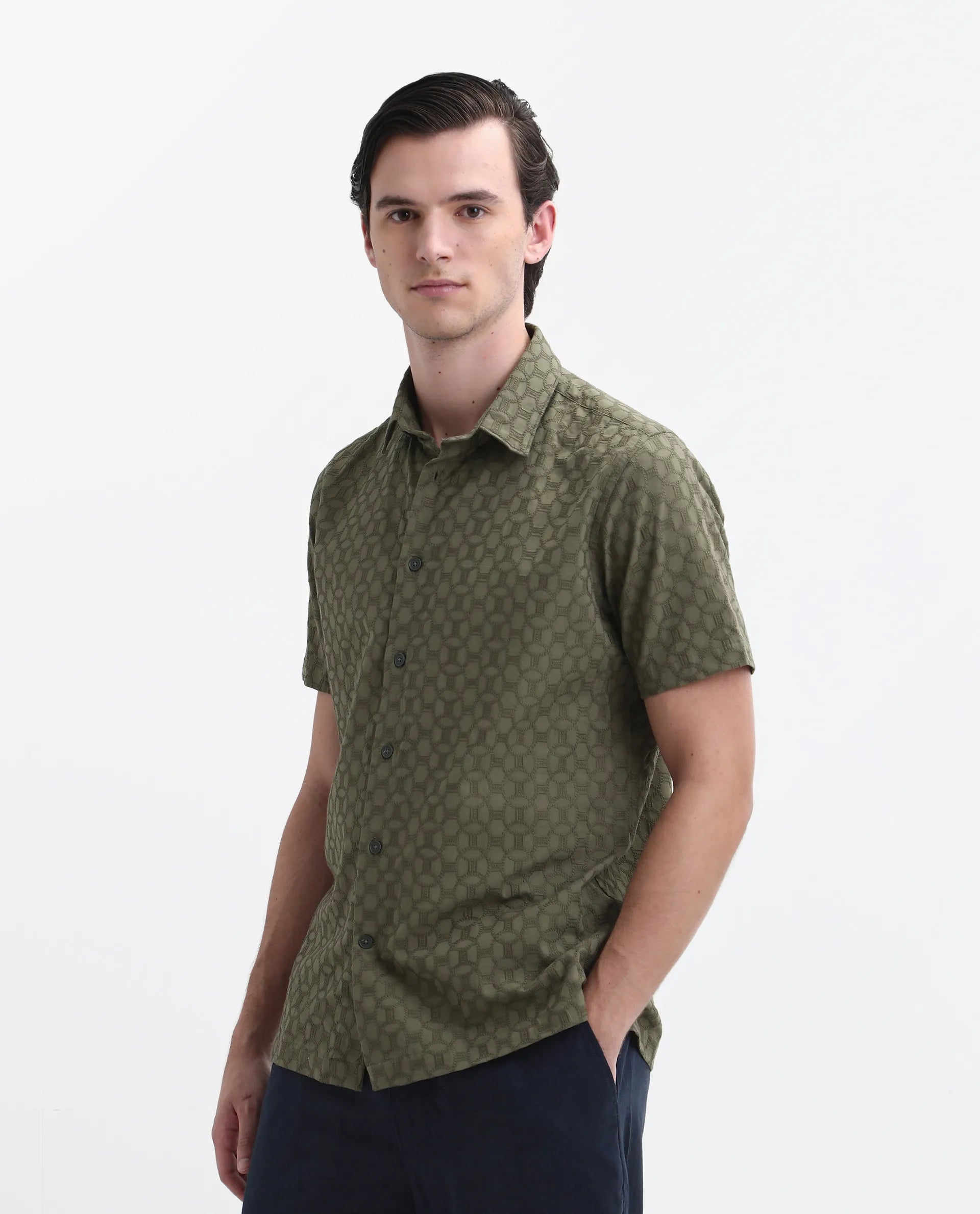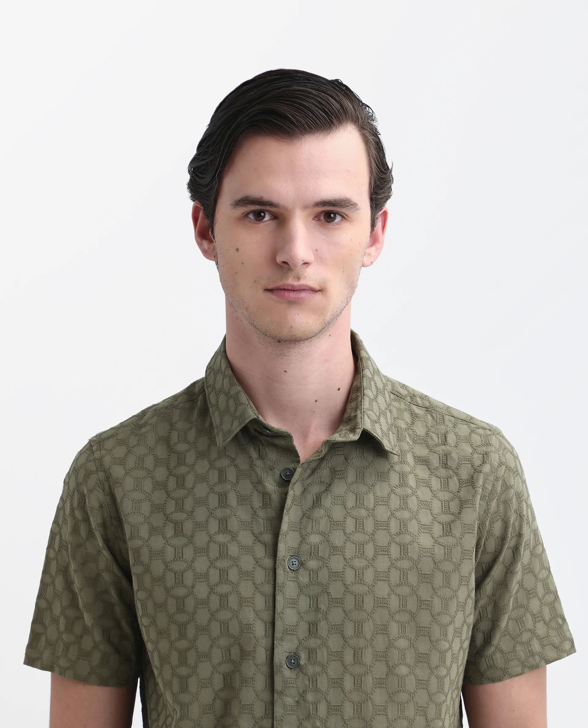 This mens shirt from RARE RABBIT carries a contemporary and minimal charm. Its neat styling keeps the outfit looking fresh and composed. A reliable pick for someone who prefers a soft, modern aesthetic.