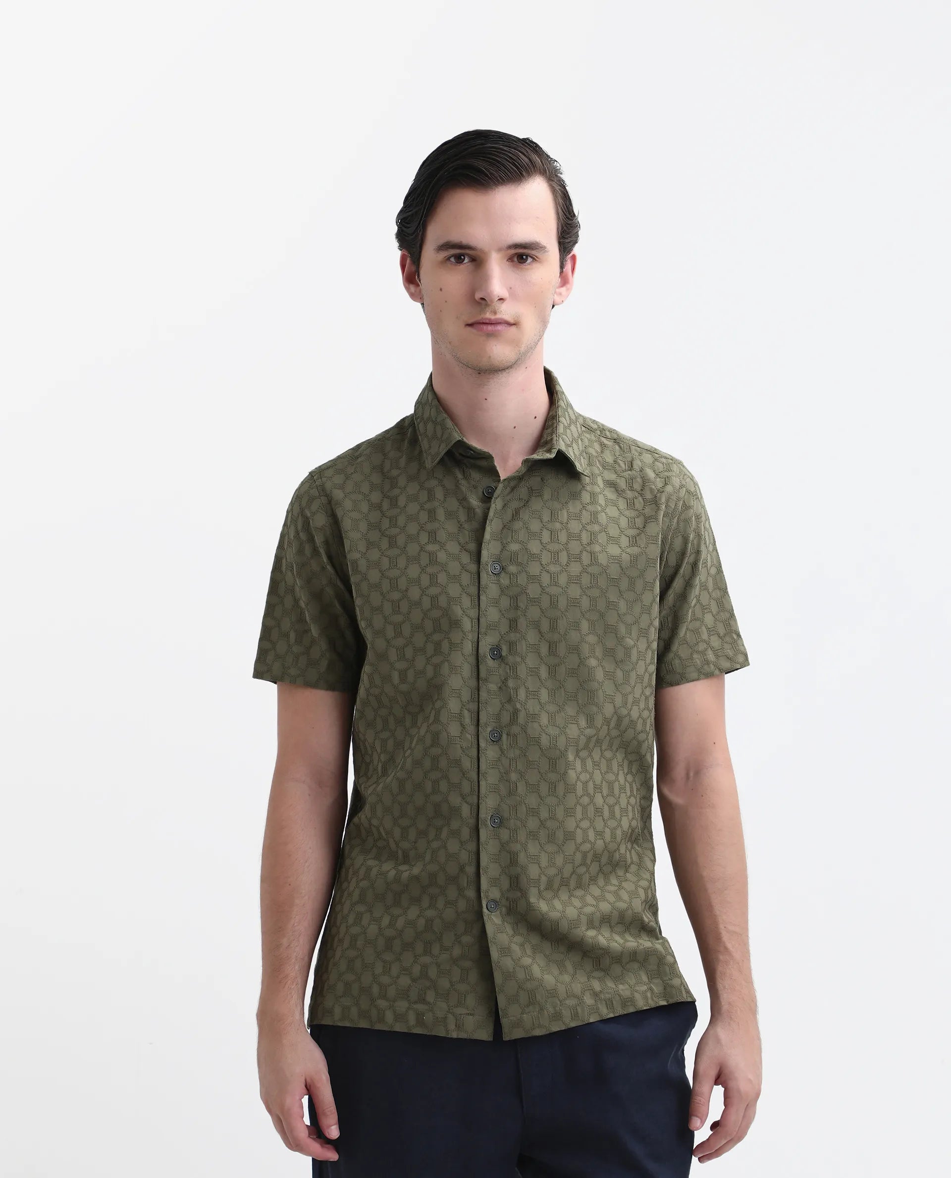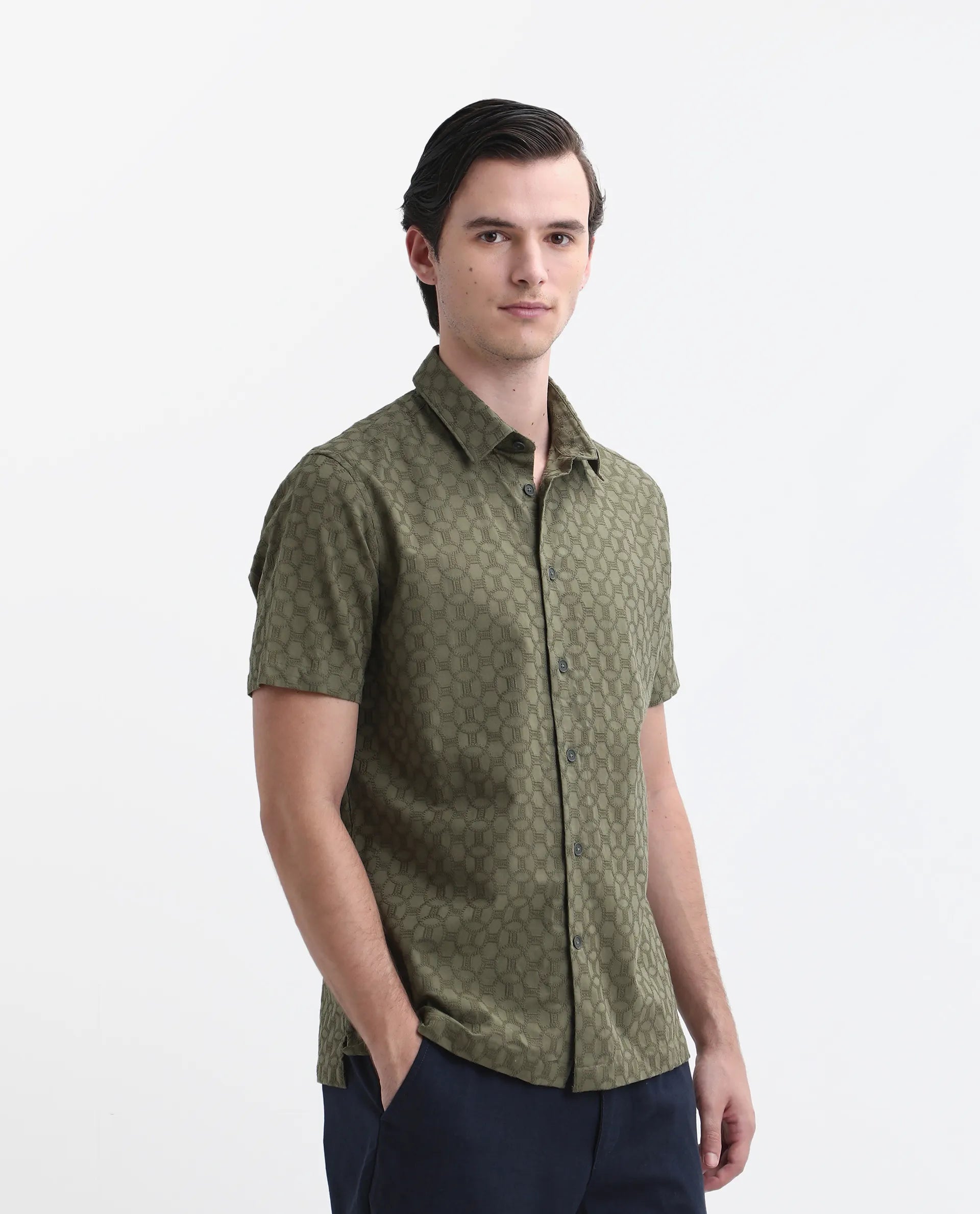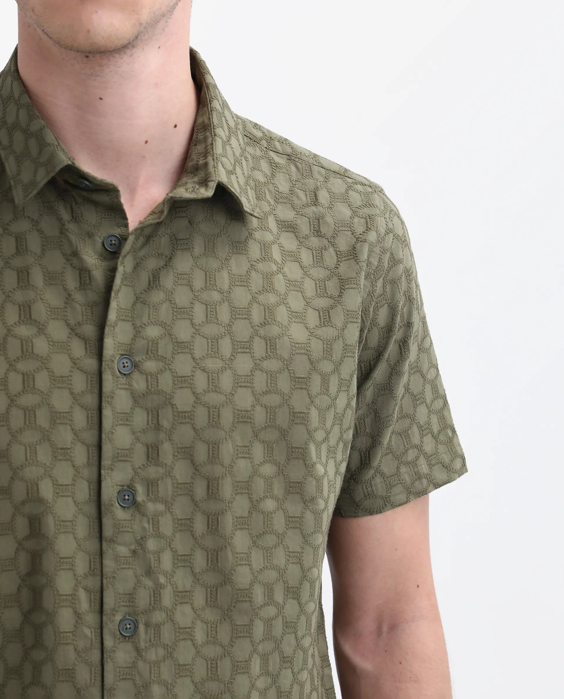 This mens shirt from RARE RABBIT carries a contemporary and minimal charm. Its neat styling keeps the outfit looking fresh and composed. A reliable pick for someone who prefers a soft, modern aesthetic.