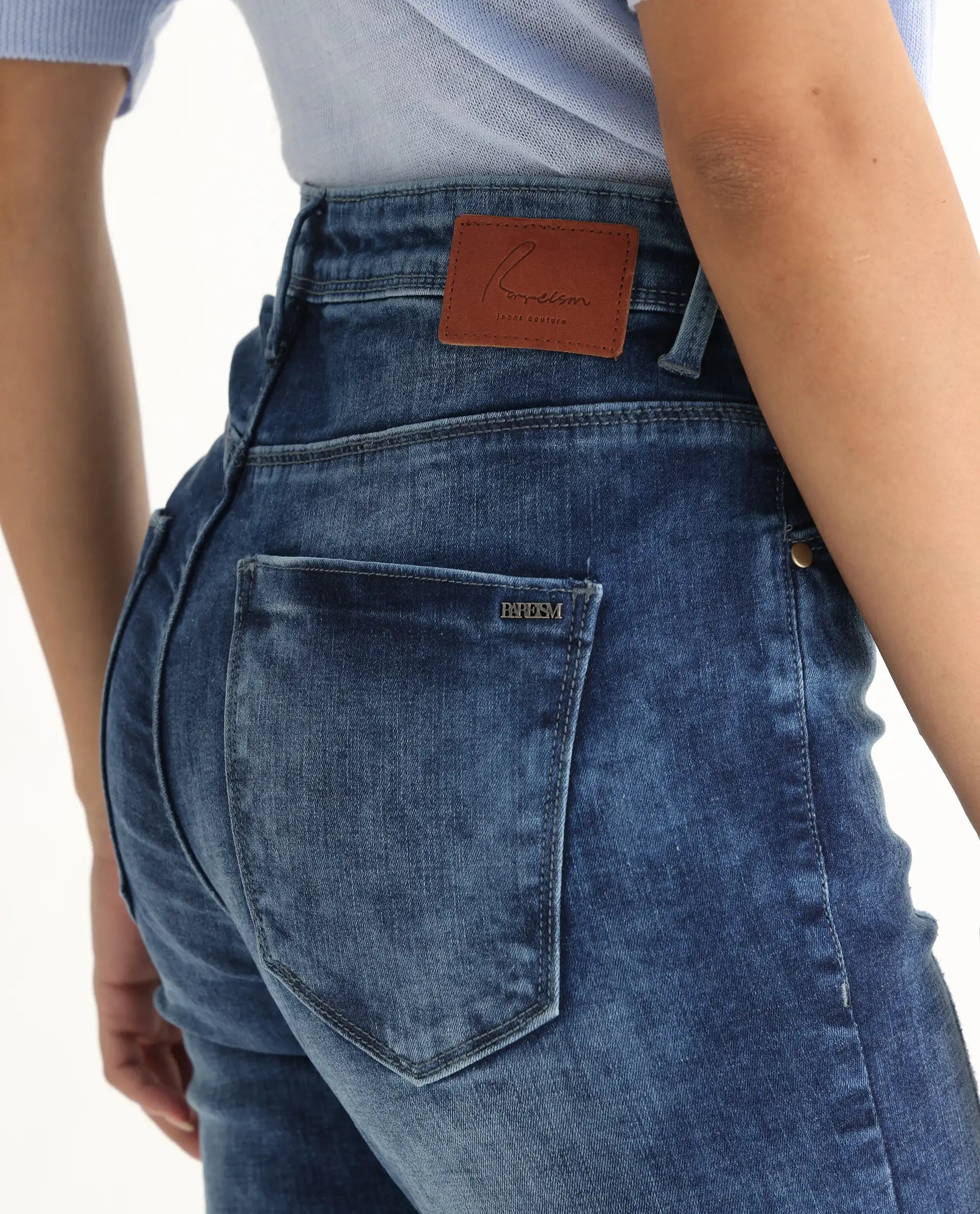 These ankle-length jeans combine comfort and style with high-rise design and a slim fit that flatters the silhouette. Crafted from a blend of cotton and Lycra, they offer flexibility and breathability for all-day wear. The solid snowtail blue color adds a clean, versatile look suitable for casual or semi-formal outfits. Ideal for those seeking modern tailoring with lasting comfort.