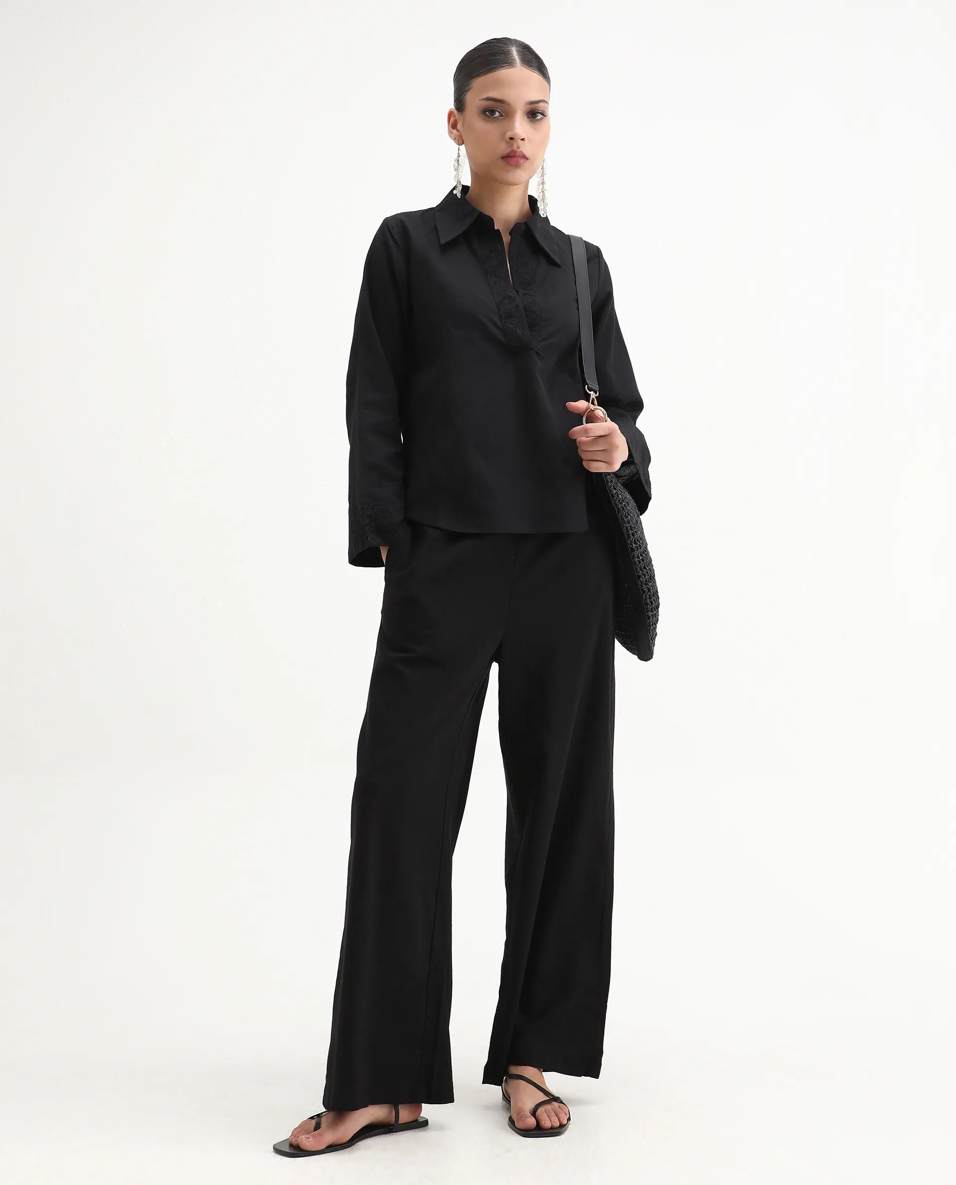 3. Elegant Embroidery Detail: Embellished with intricate embroidery detail, enhancing the overall charm and sophistication of the top.