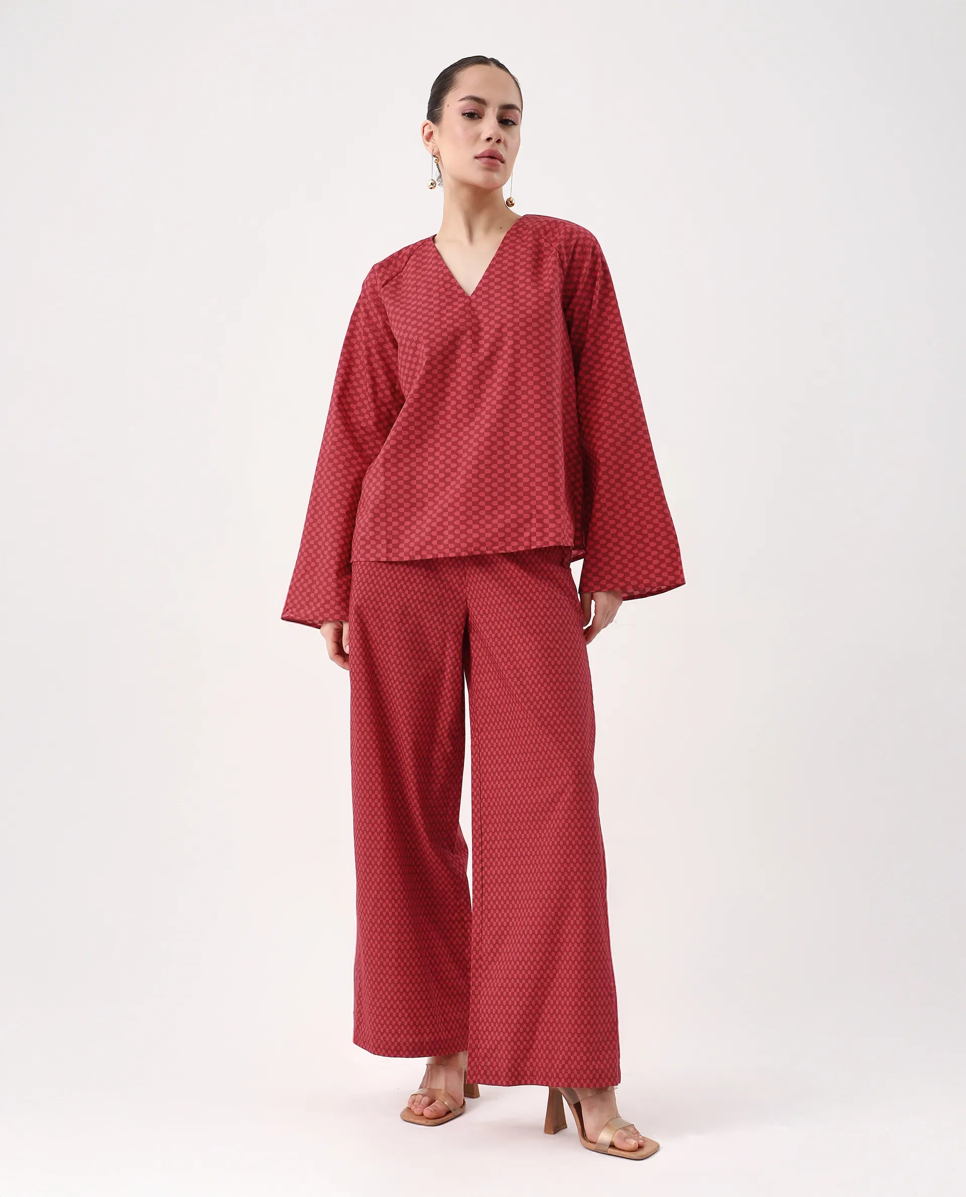 Unleash your inner fashionista with these Rareism Women Somkyu-B Red trousers. Made of soft cotton fabric, these ankle-length trousers feature a bold geometric print and a wide fit for comfort and style. Complete with a zipper closure, they're perfect for a casual day out or a night on the town.