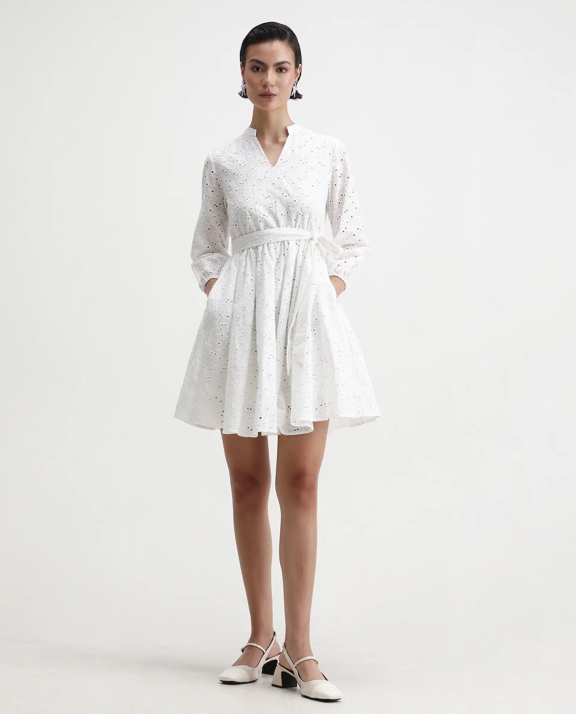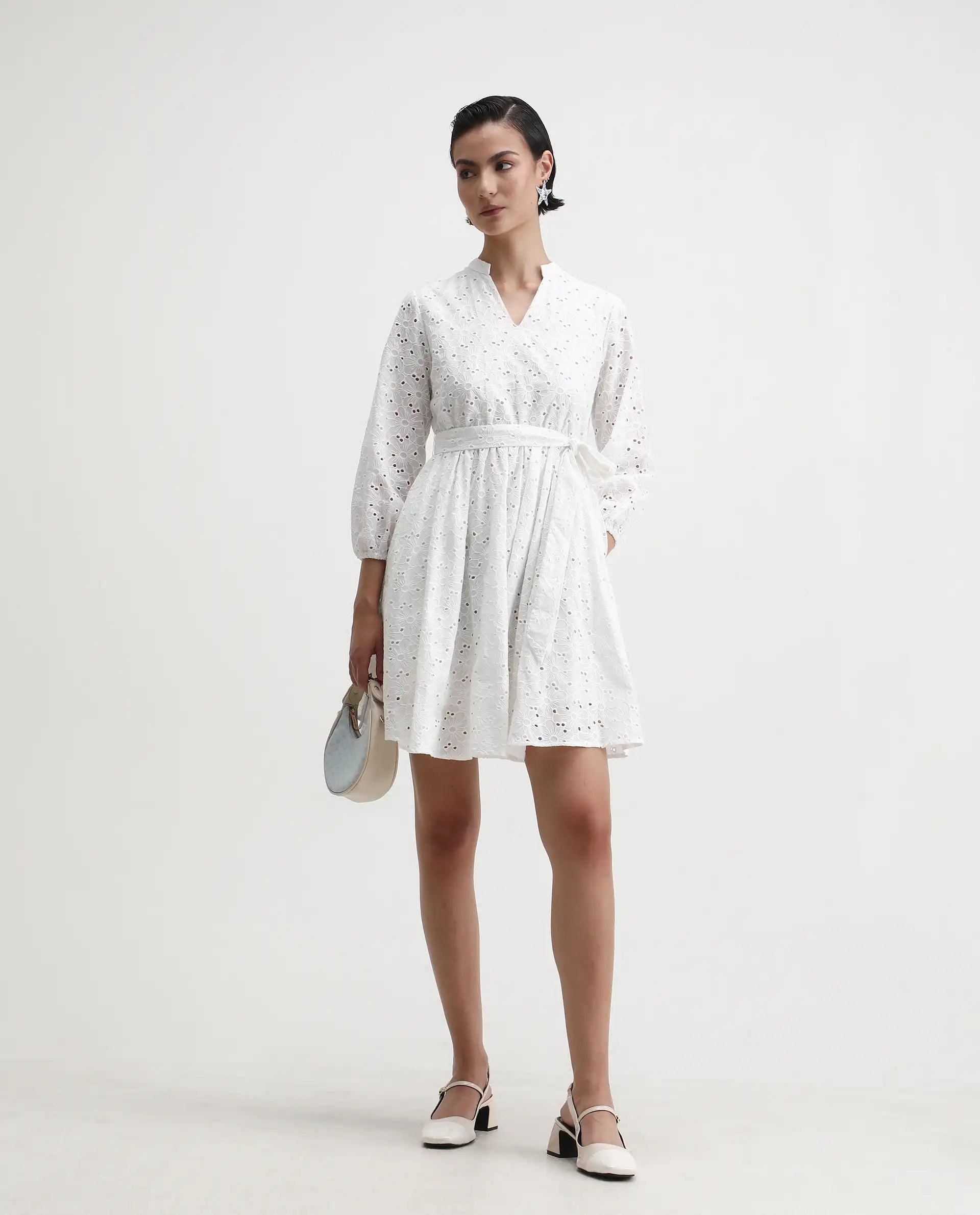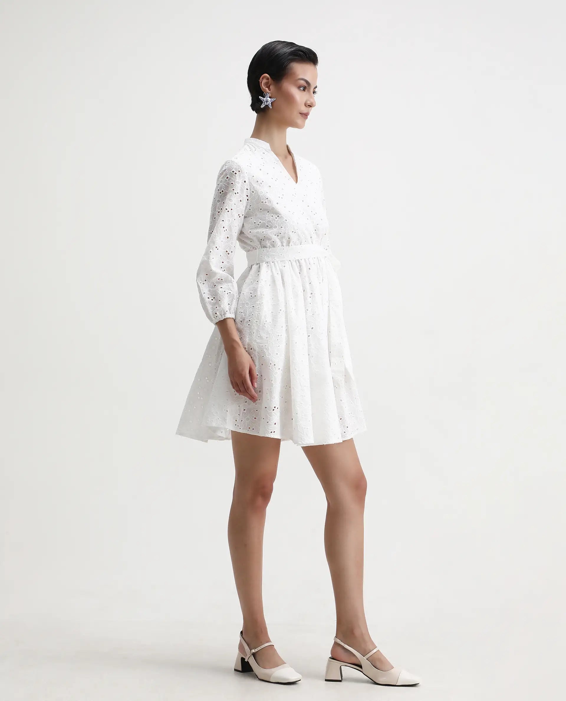 This Rareism Women Somliao dress features a breathable white cotton fabric with a flattering V-neck and convenient pull-on closure. Its flared mini silhouette offers both comfort and style, making it an ideal choice for warm weather or casual outings. Expertly designed for a versatile, effortless look.