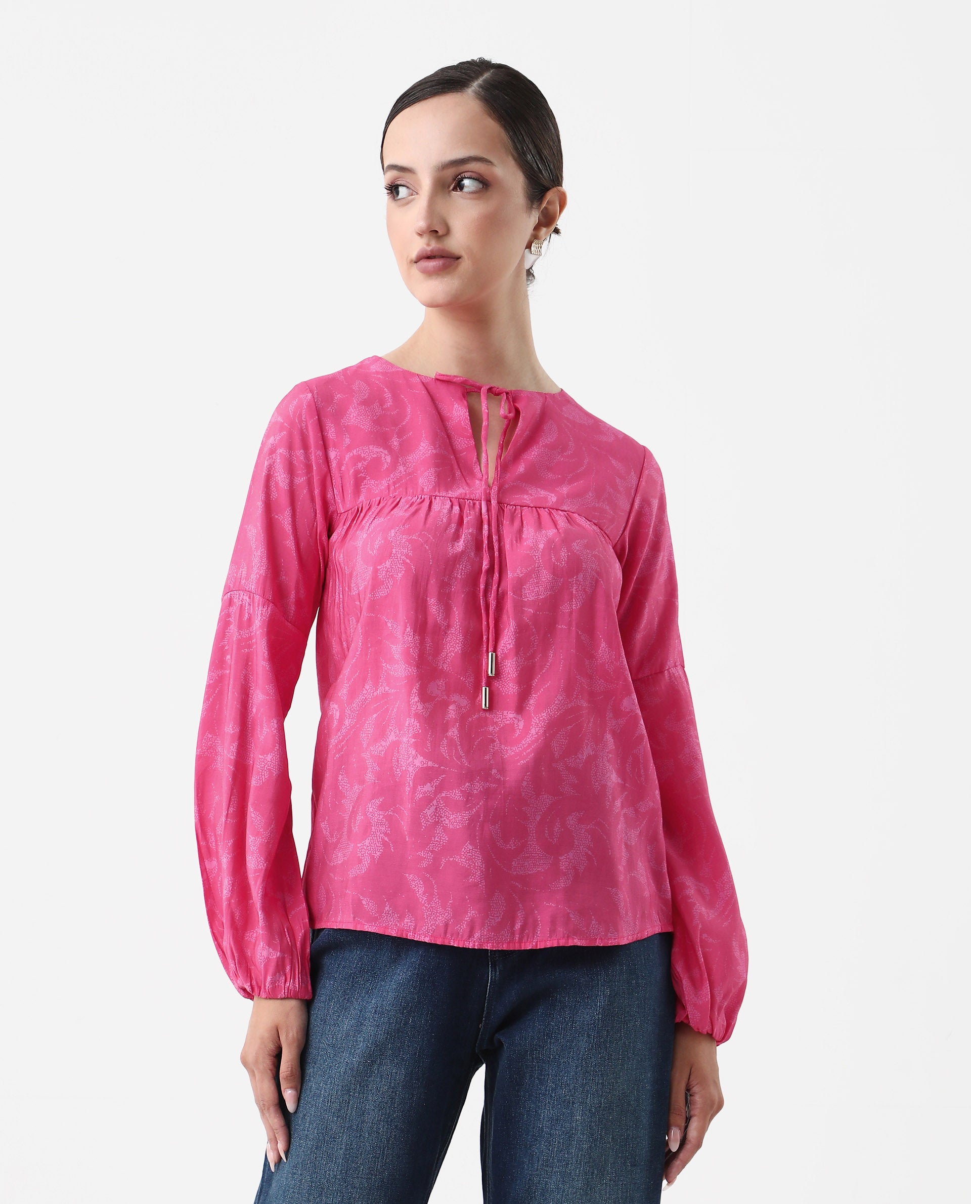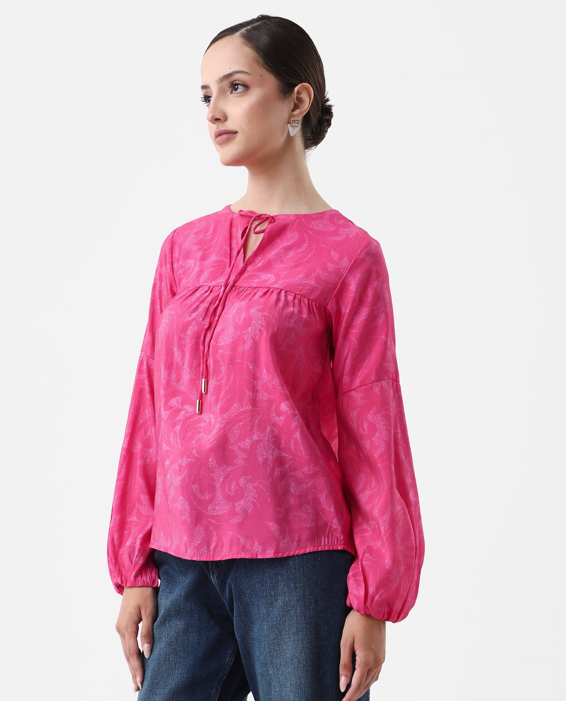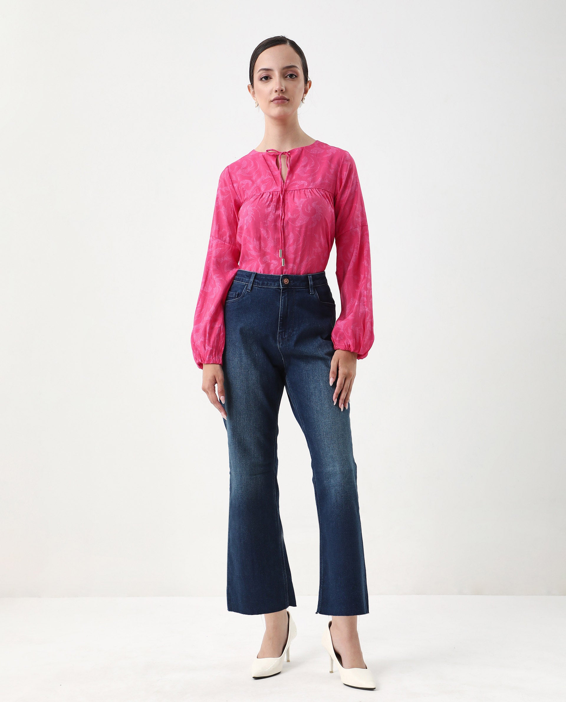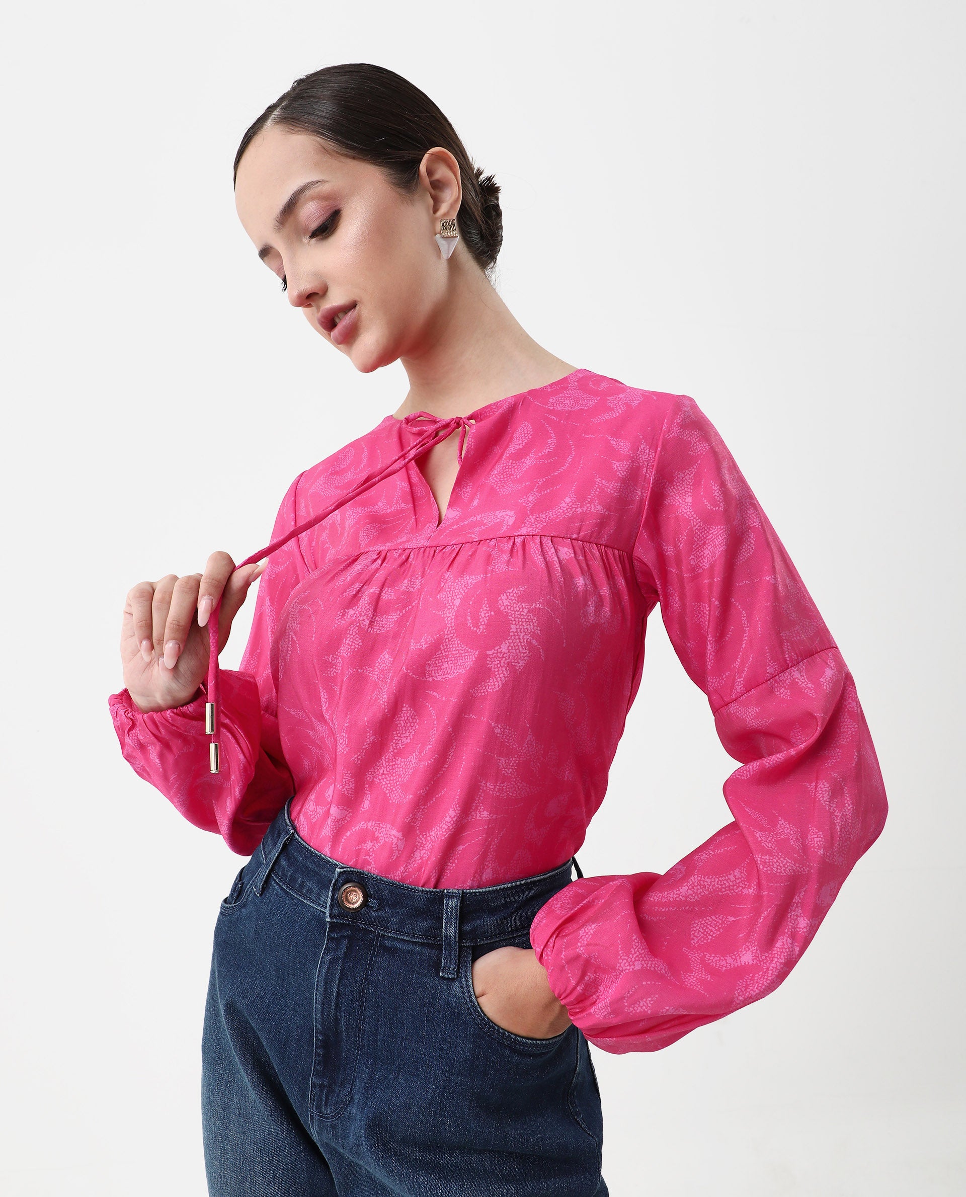 Step into summer with this vibrant Rareism top featuring a playful abstract print and unique lantern sleeves. The tie-up neck and closure provide a flattering fit, making it a must-have for any fashion-forward woman looking to add some fun to her wardrobe. Made with light viscose nylon fabric for ultimate comfort.