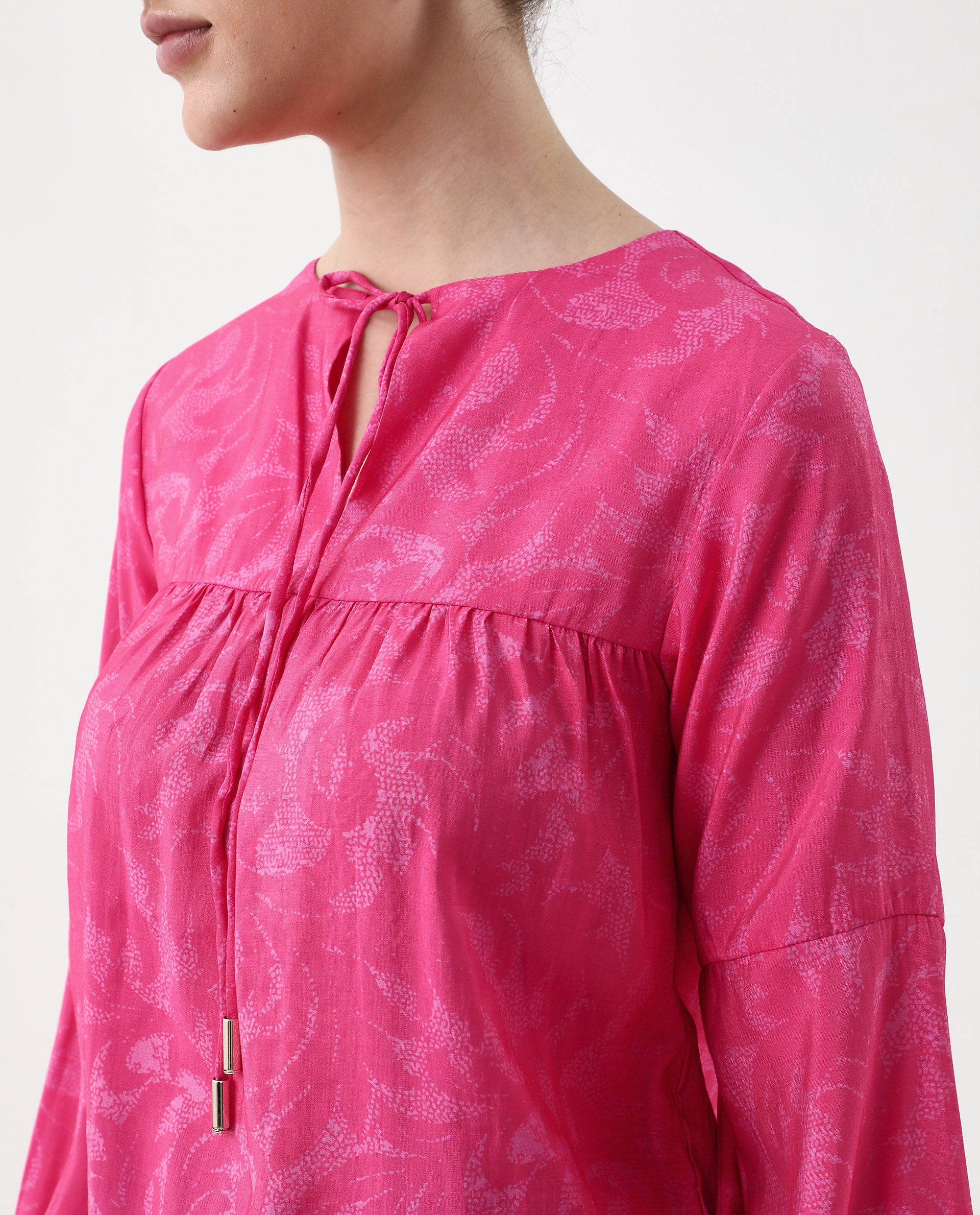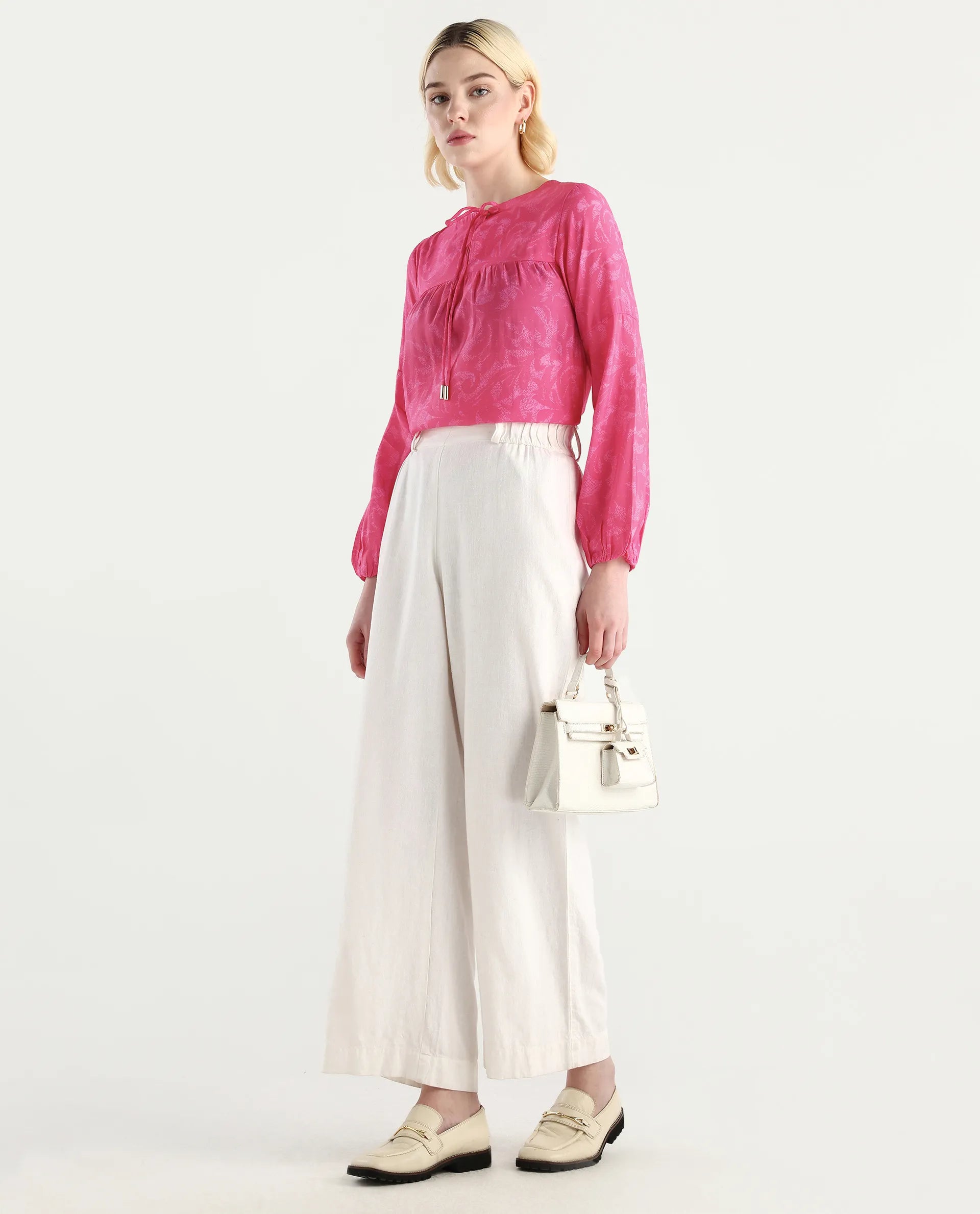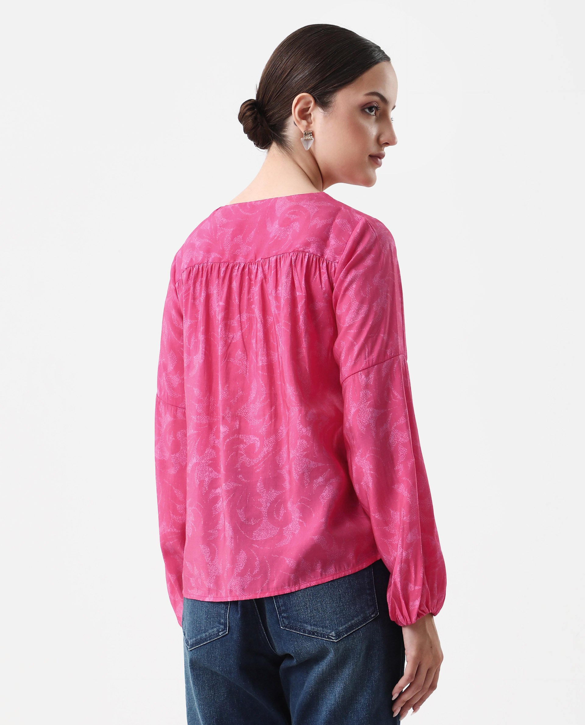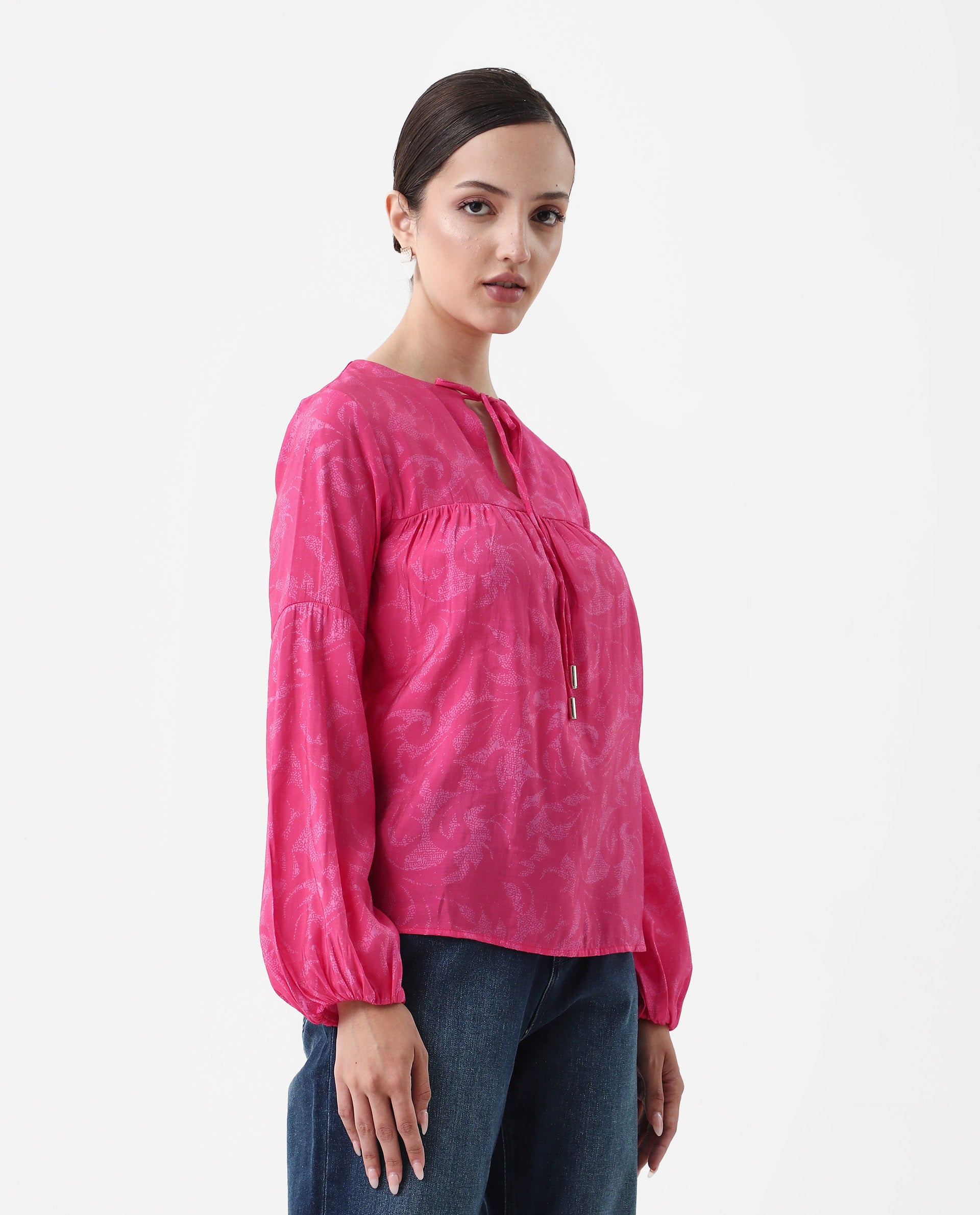Step into summer with this vibrant Rareism top featuring a playful abstract print and unique lantern sleeves. The tie-up neck and closure provide a flattering fit, making it a must-have for any fashion-forward woman looking to add some fun to her wardrobe. Made with light viscose nylon fabric for ultimate comfort.