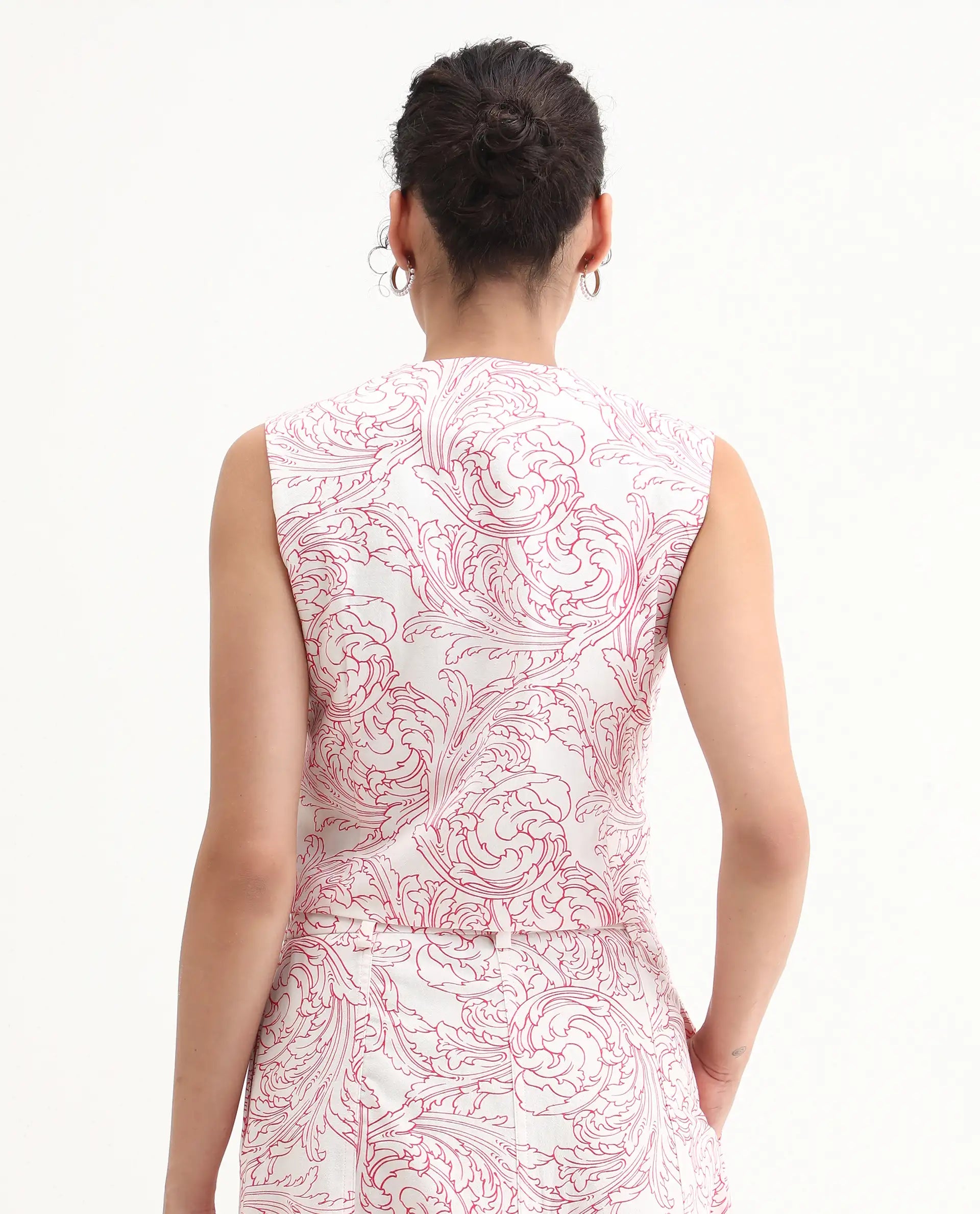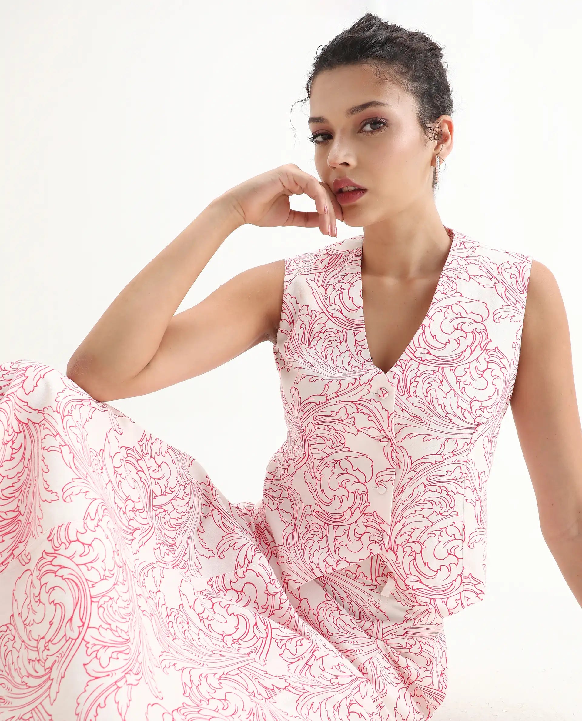 Introducing the Rareism Somnos-T, a sleeveless top with a playful V-neck and button closure. Made with soft 100% cotton fabric, this top features a unique Abstract print that will add a touch of quirkiness to your wardrobe. Perfect for the fun-loving and stylish woman.