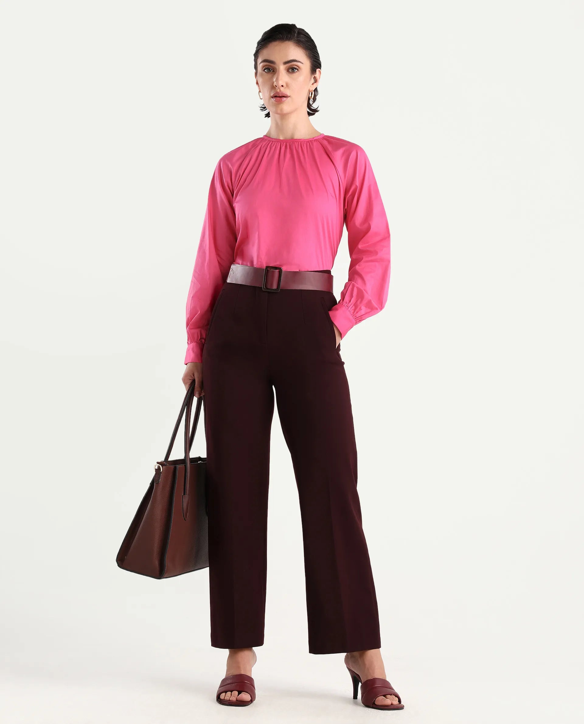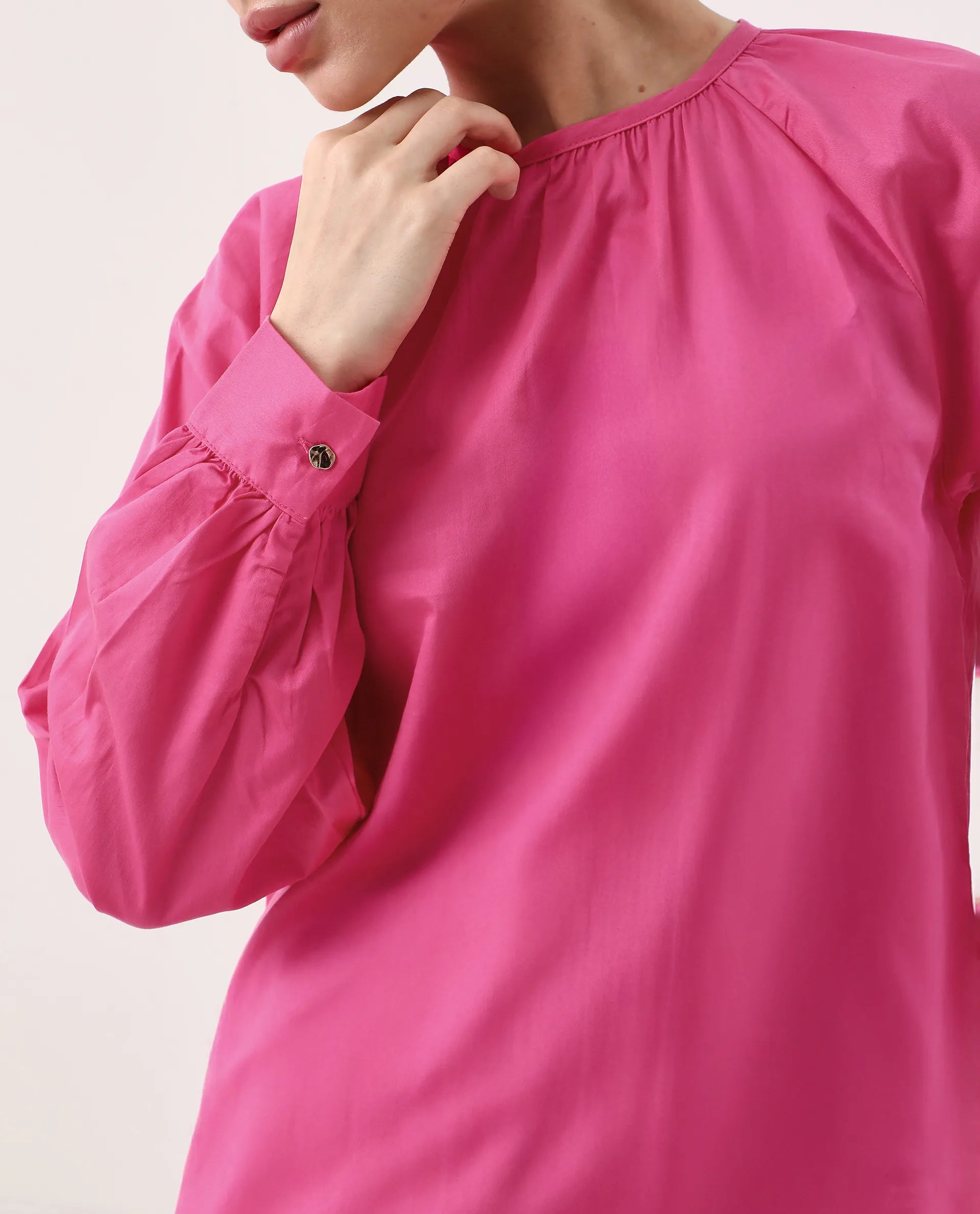 Be a rare beauty in this Rareism Women's Pink 100% Cotton Fabric Top. With a relaxed fit and cuffed sleeves, this top is perfect for any casual occasion. The button closure and round neck add a touch of elegance. Lounge in style with this playful and comfortable plain top.