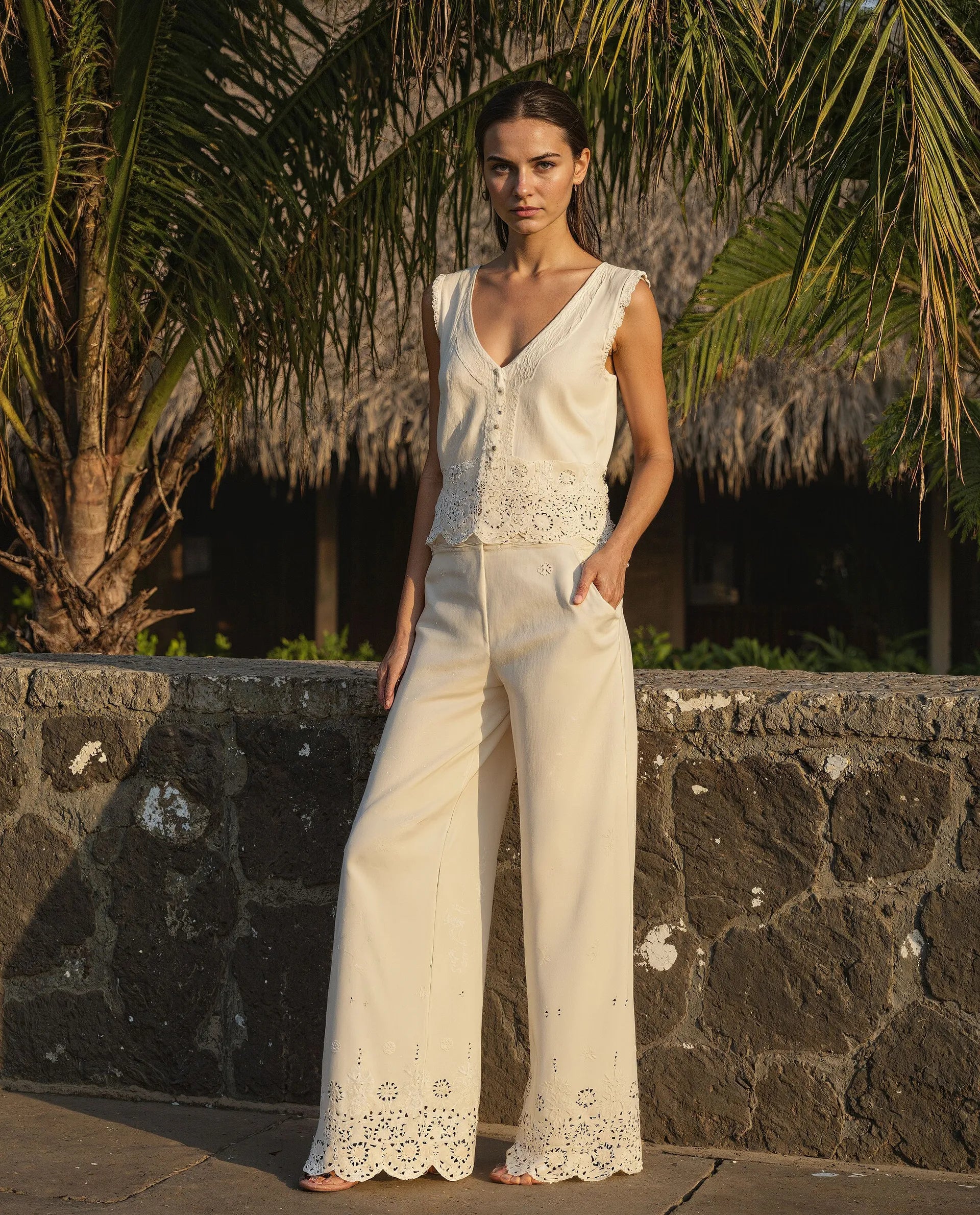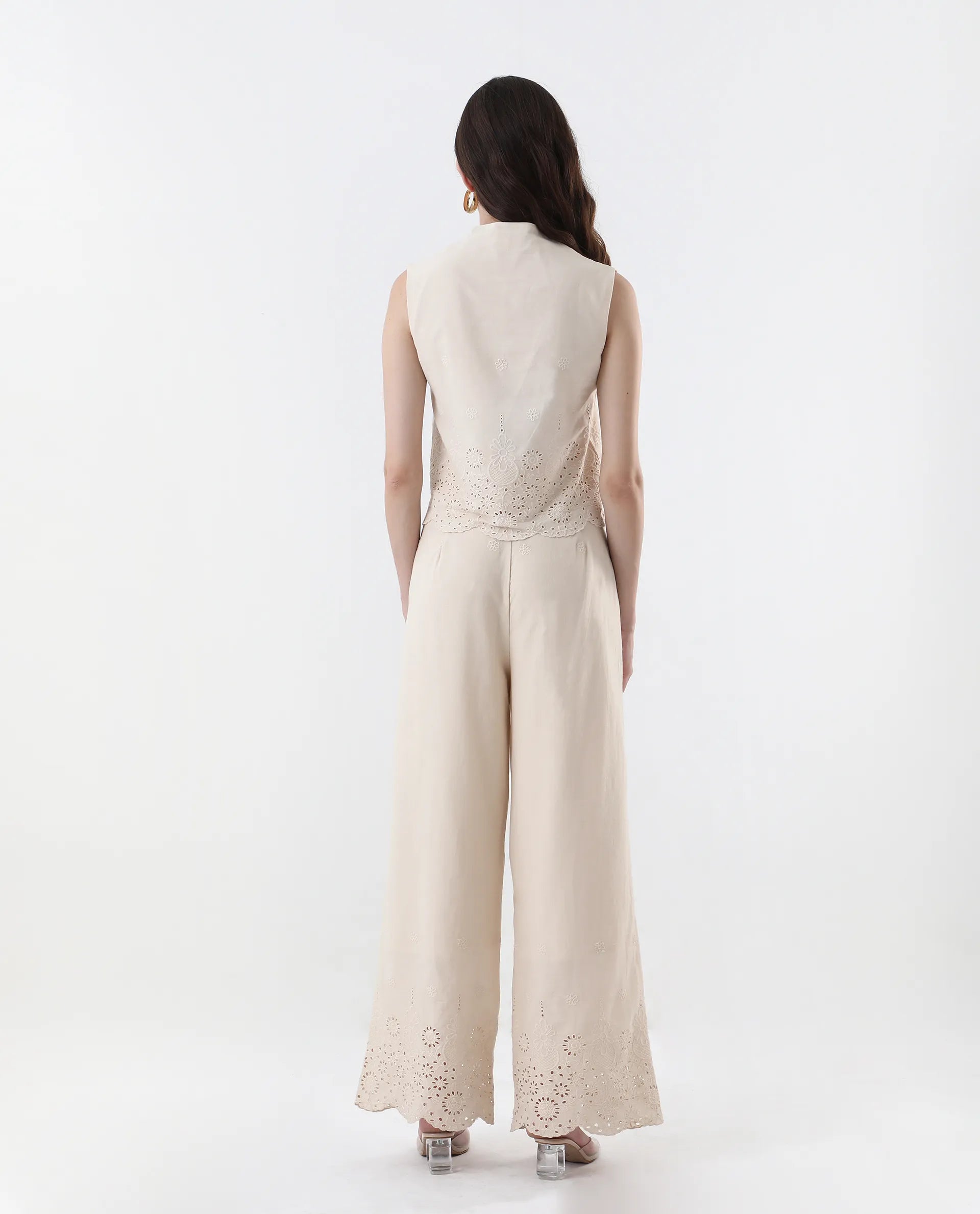 - The model (Chest-34, Waist-28, Hips-38, Height-178 cms) is wearing a size XS.