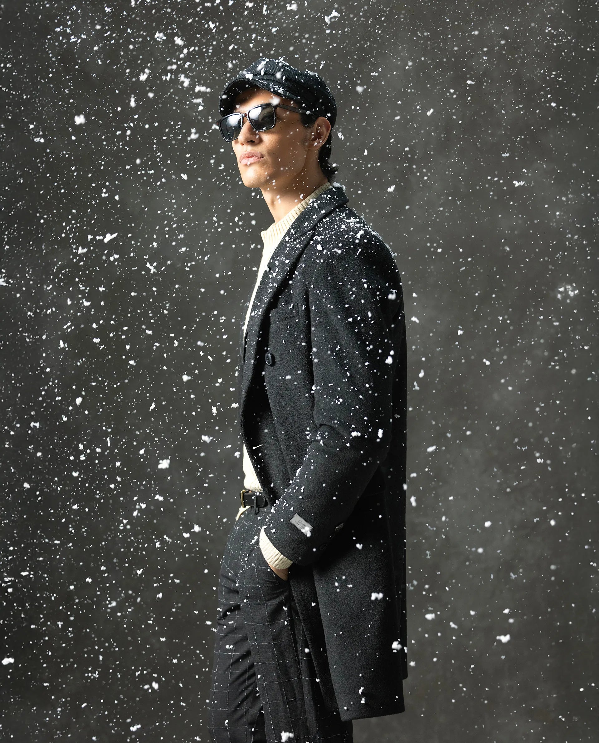 SPARTAN-25 - BLACK PREMIUM PEAK LAPEL MID LENGTH SOLID COAT