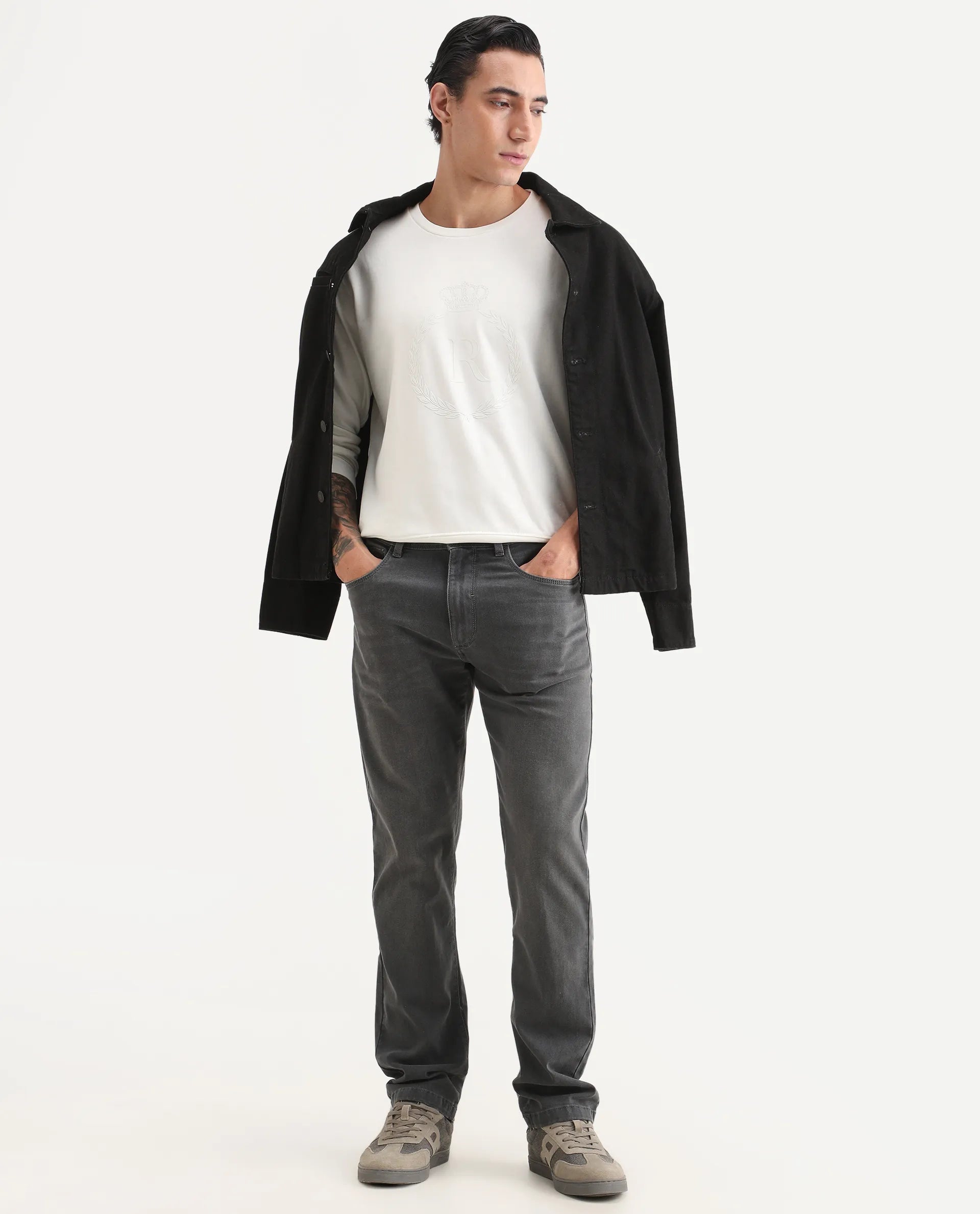 Rare Rabbit Men's Staple Off White Cotton Graphic Print Regular Fit Full Sleeve Crew Neck Sweatshirt