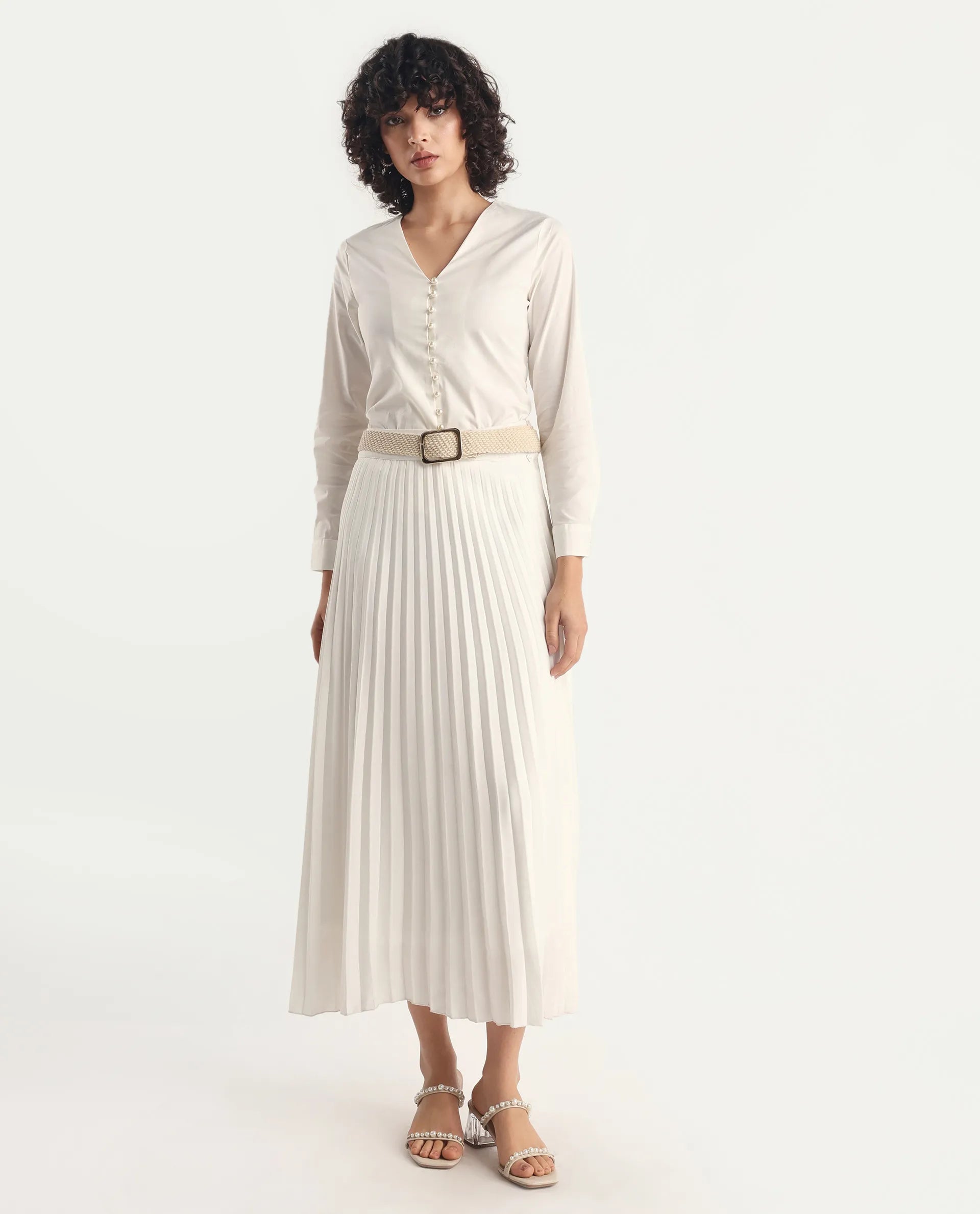 2. Features a chic V-neckline that adds a flattering touch to your look.