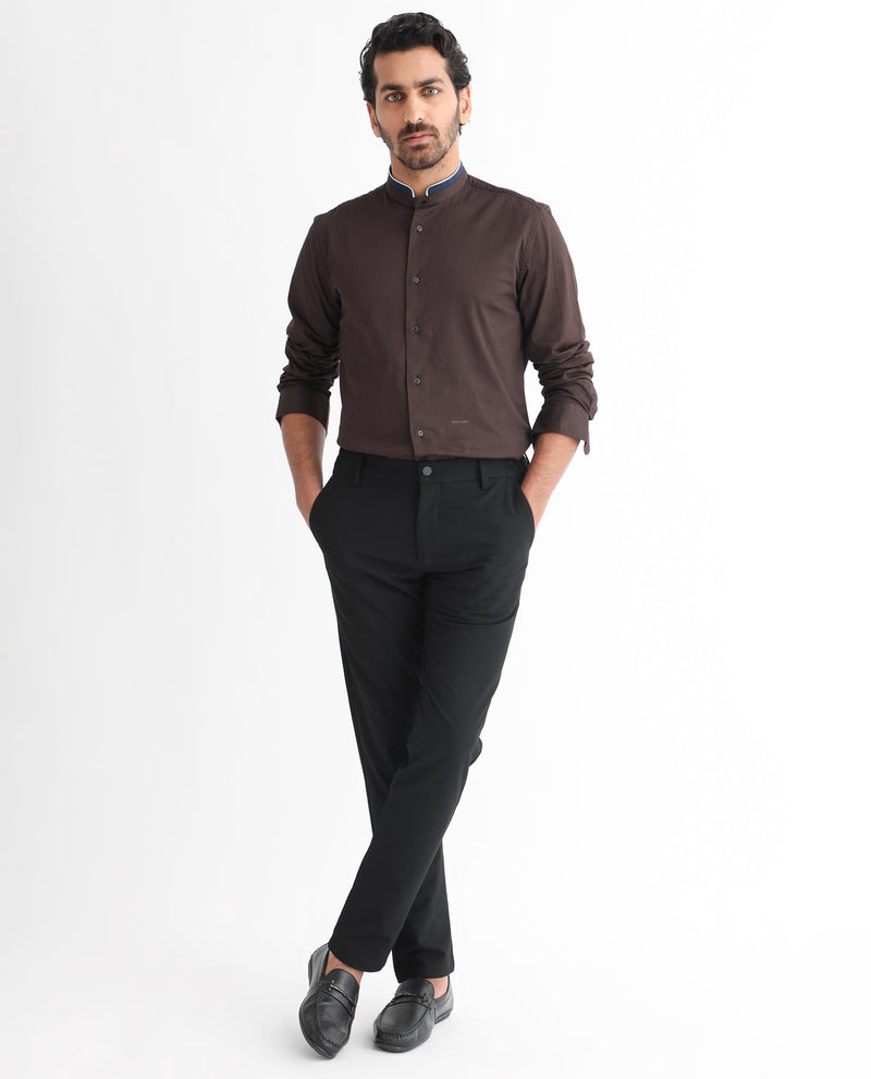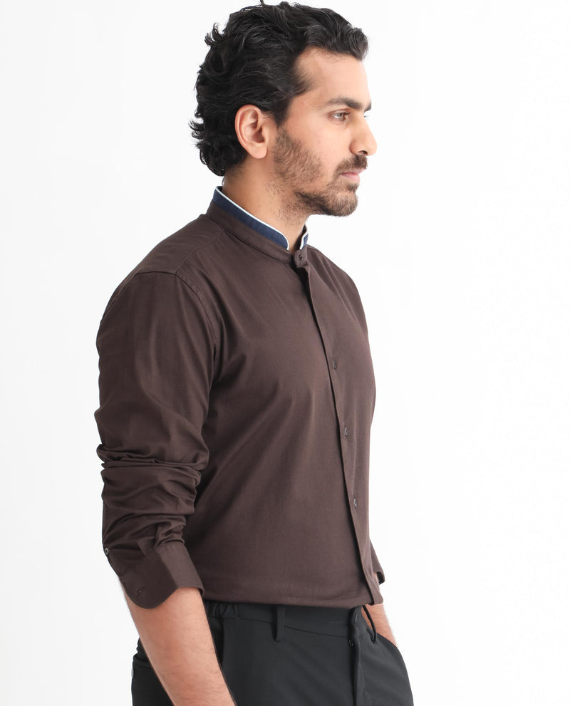 Discover the perfect blend of style and comfort with our contrast mandarin collar shirt. Crafted from premium cotton, this regular fit shirt offers a sleek, casual look ideal for any occasion. Featuring a button closure and full sleeves, it provides a timeless appeal with its plain, woven design. The unique mandarin collar adds a touch of sophistication, making it a versatile addition to your wardrobe. Whether you're dressing up for a night out or keeping it casual, this shirt ensures you stay stylish and comfortable. Elevate your fashion game with this must-have piece. Shop now for a wardrobe essential that combines quality and elegance effortlessly.