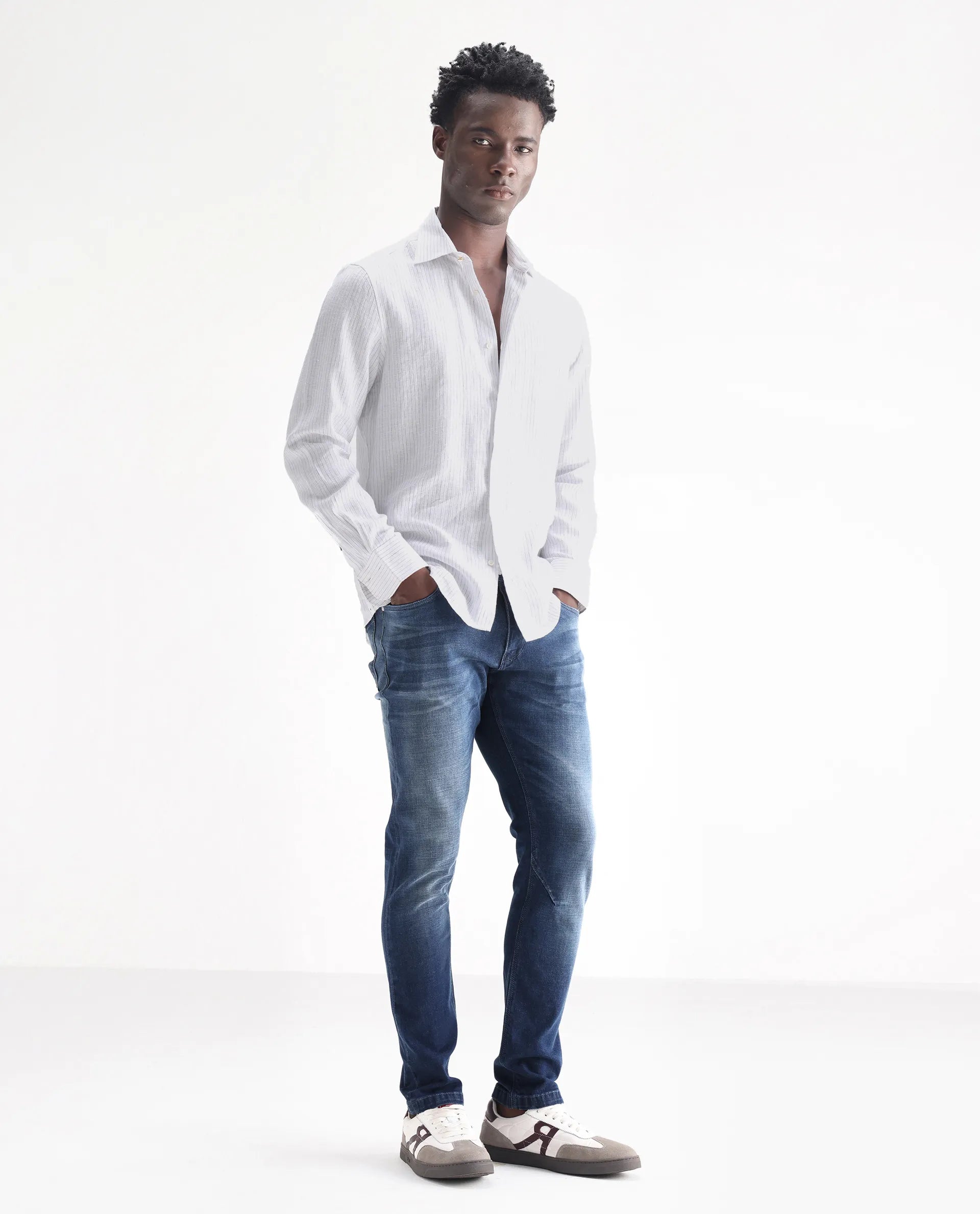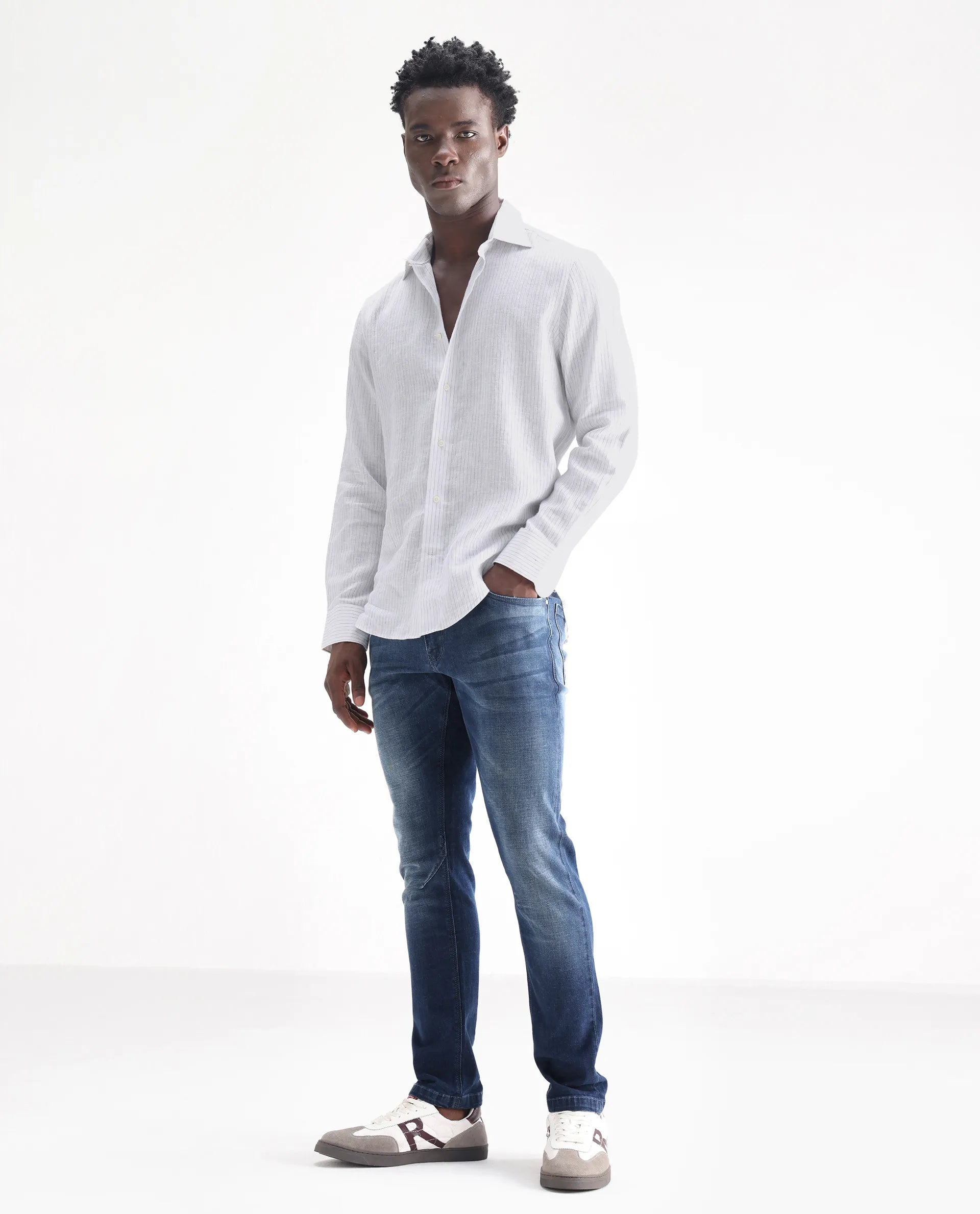 RARE RABBIT presents this mens jeans with an emphasis on elegant simplicity. The minimal look stays fresh and versatile, offering a composed visual feel. A thoughtful piece for creating a refined everyday style.