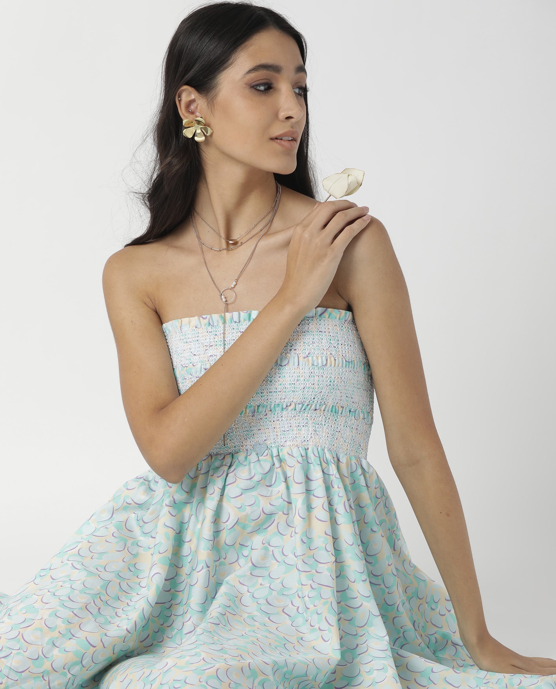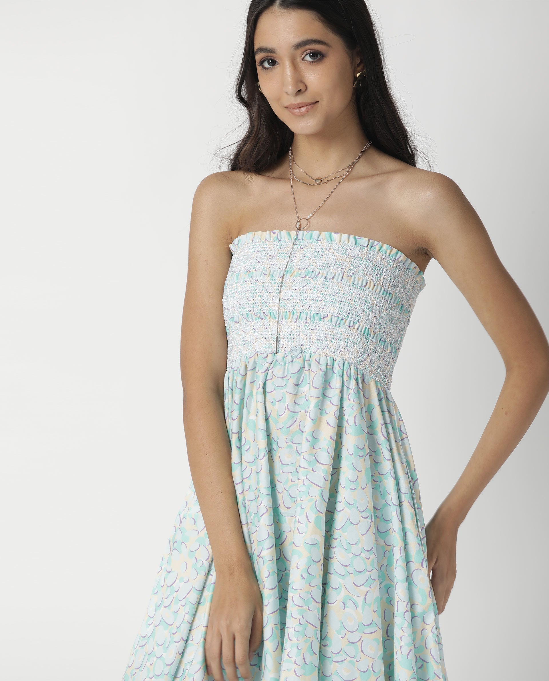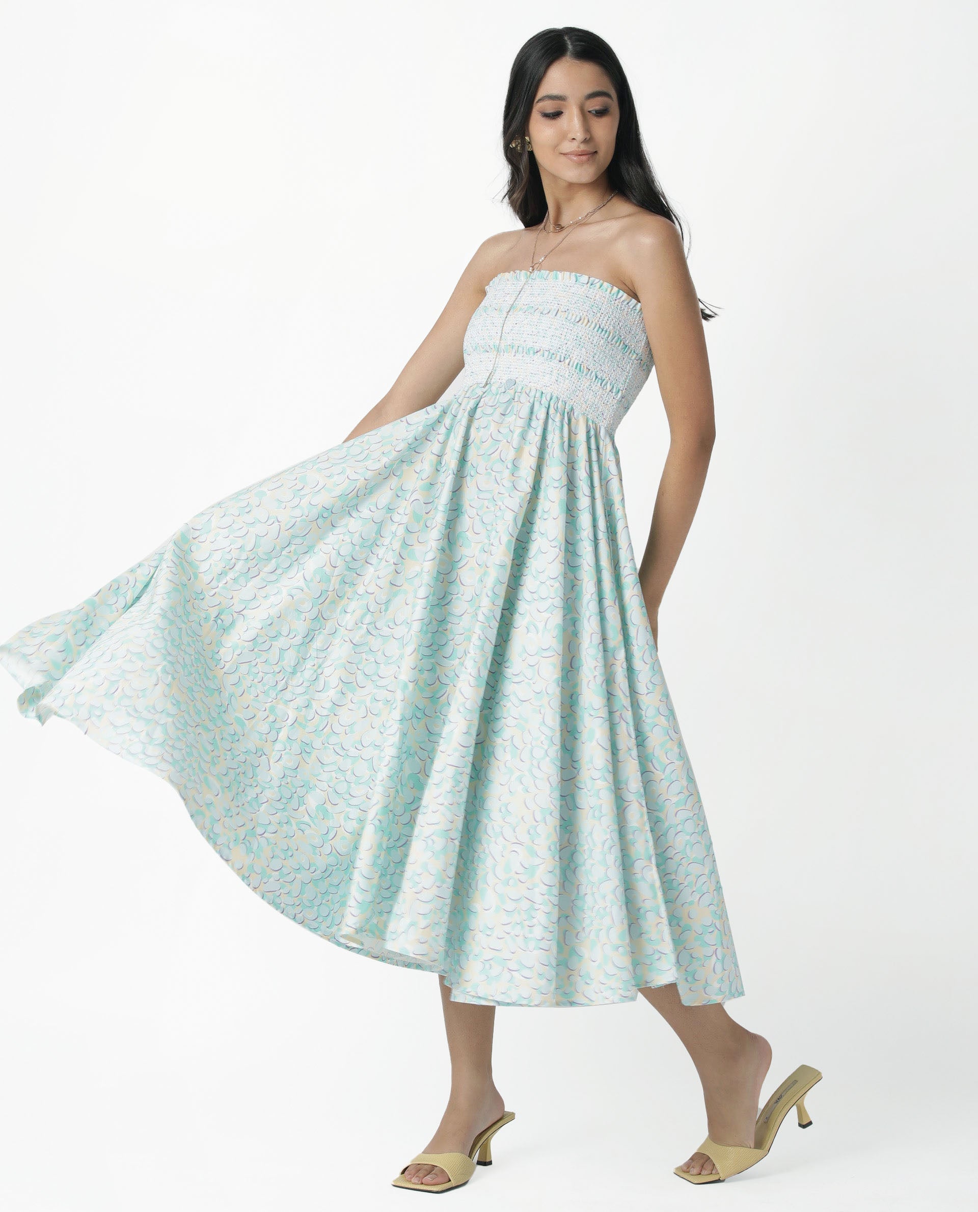 -With intricate smocking at the chest, and full circular flare and detachable straps in new pastel print. -Best worn with minimalist accessories for dates and dinners -Cotton Satin