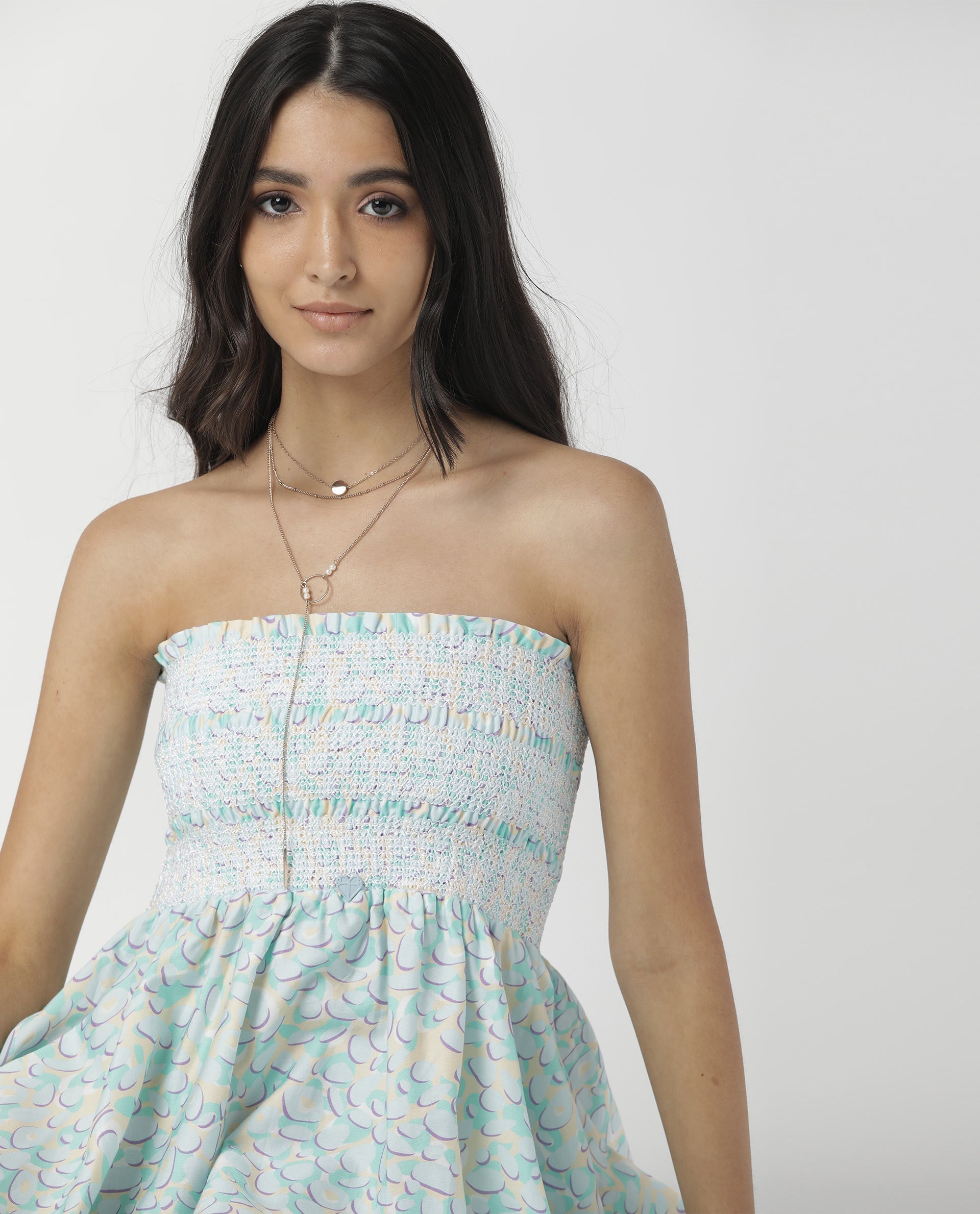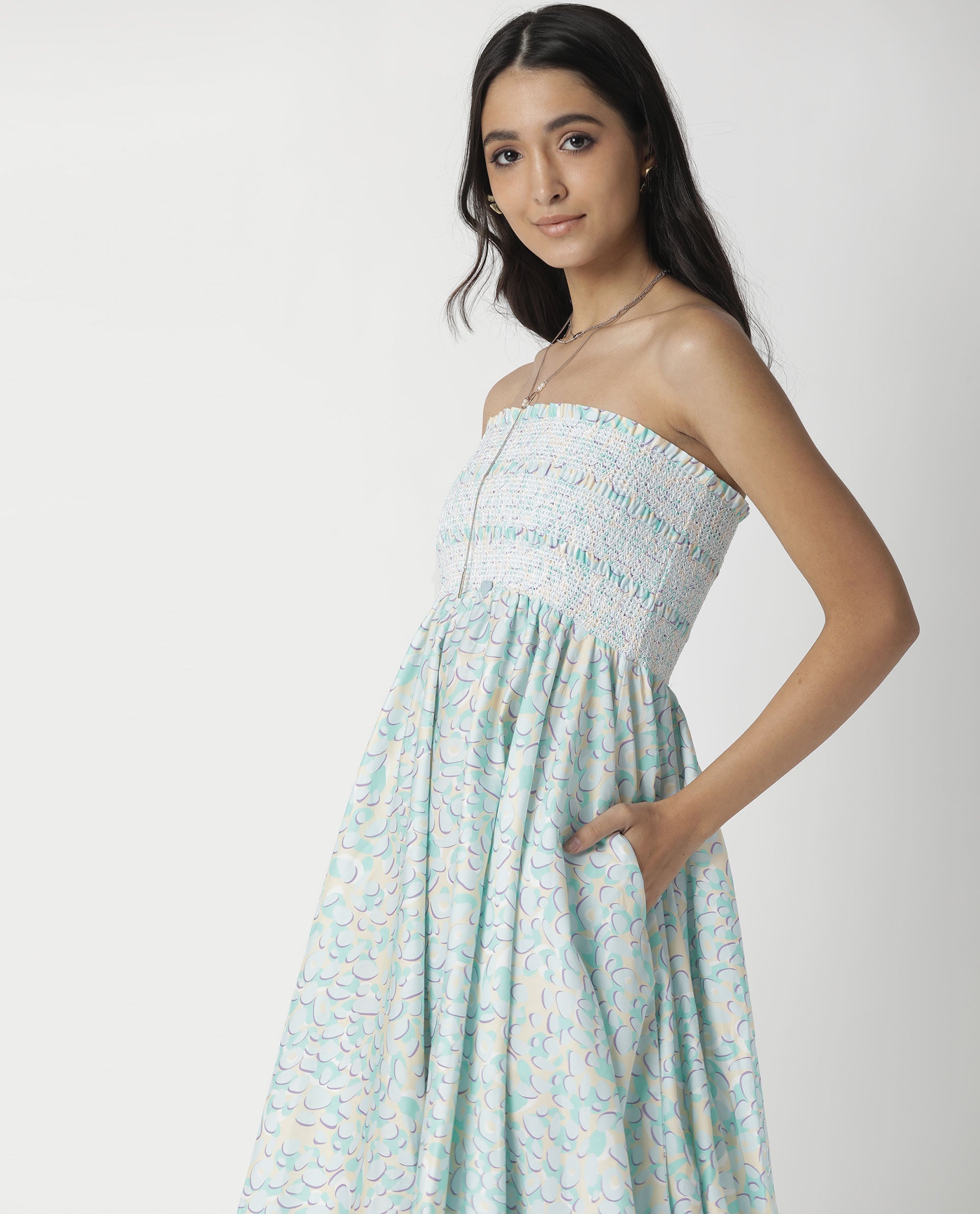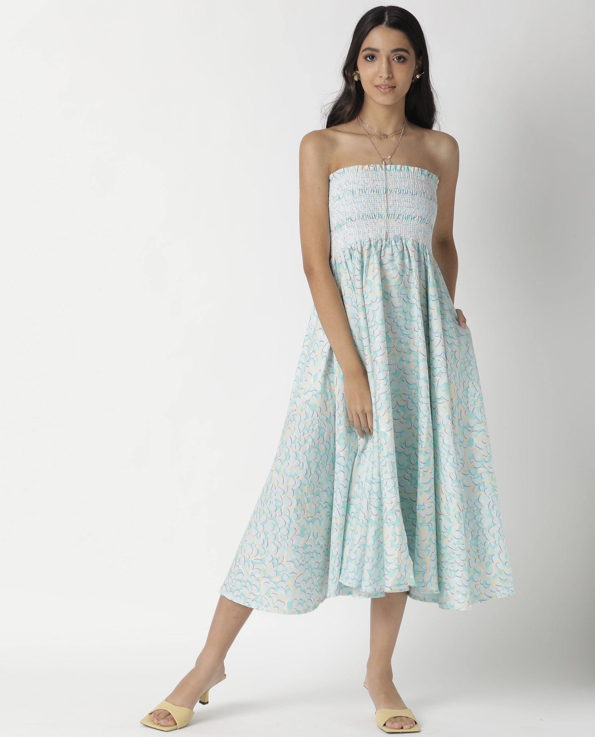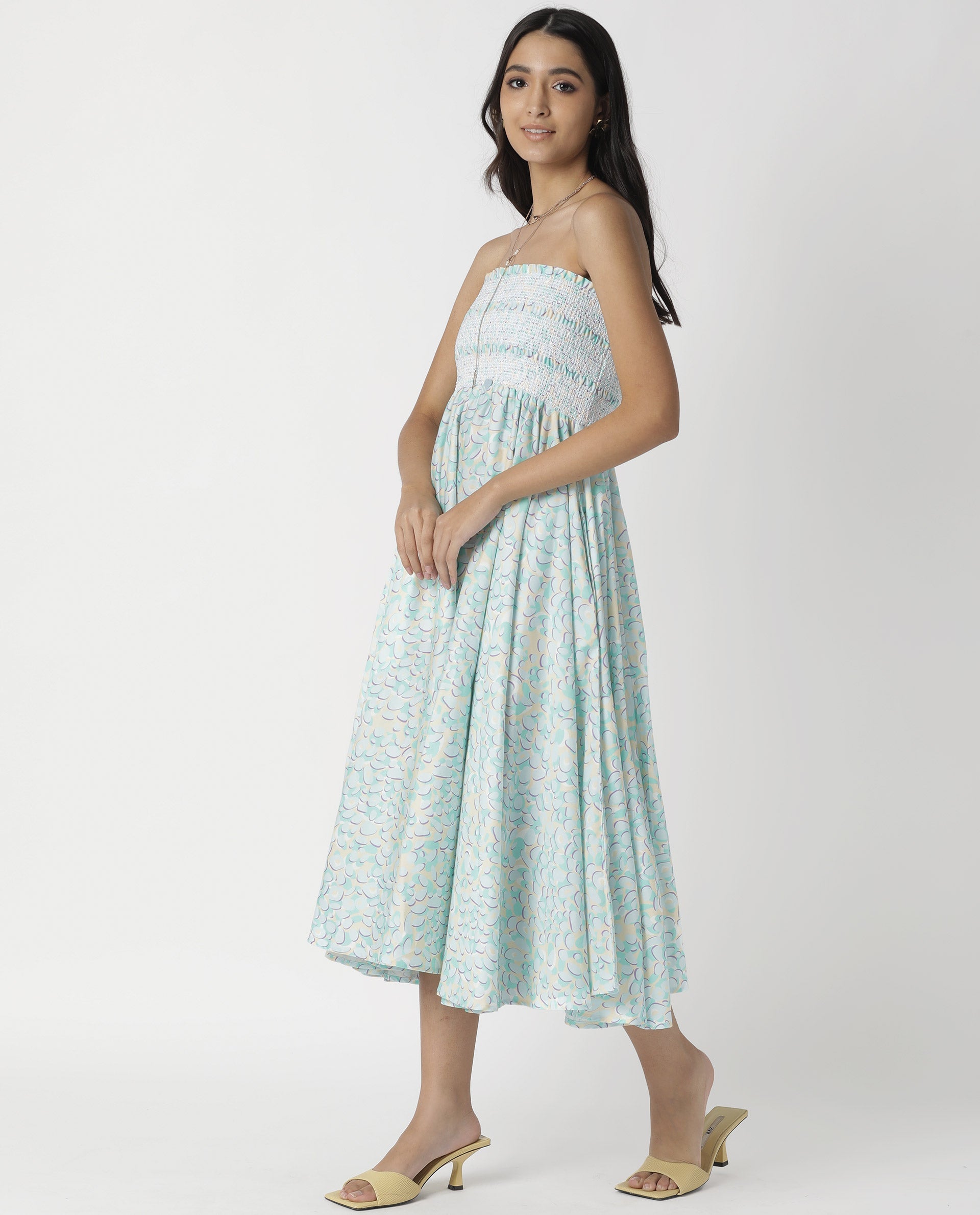 -With intricate smocking at the chest, and full circular flare and detachable straps in new pastel print. -Best worn with minimalist accessories for dates and dinners -Cotton Satin