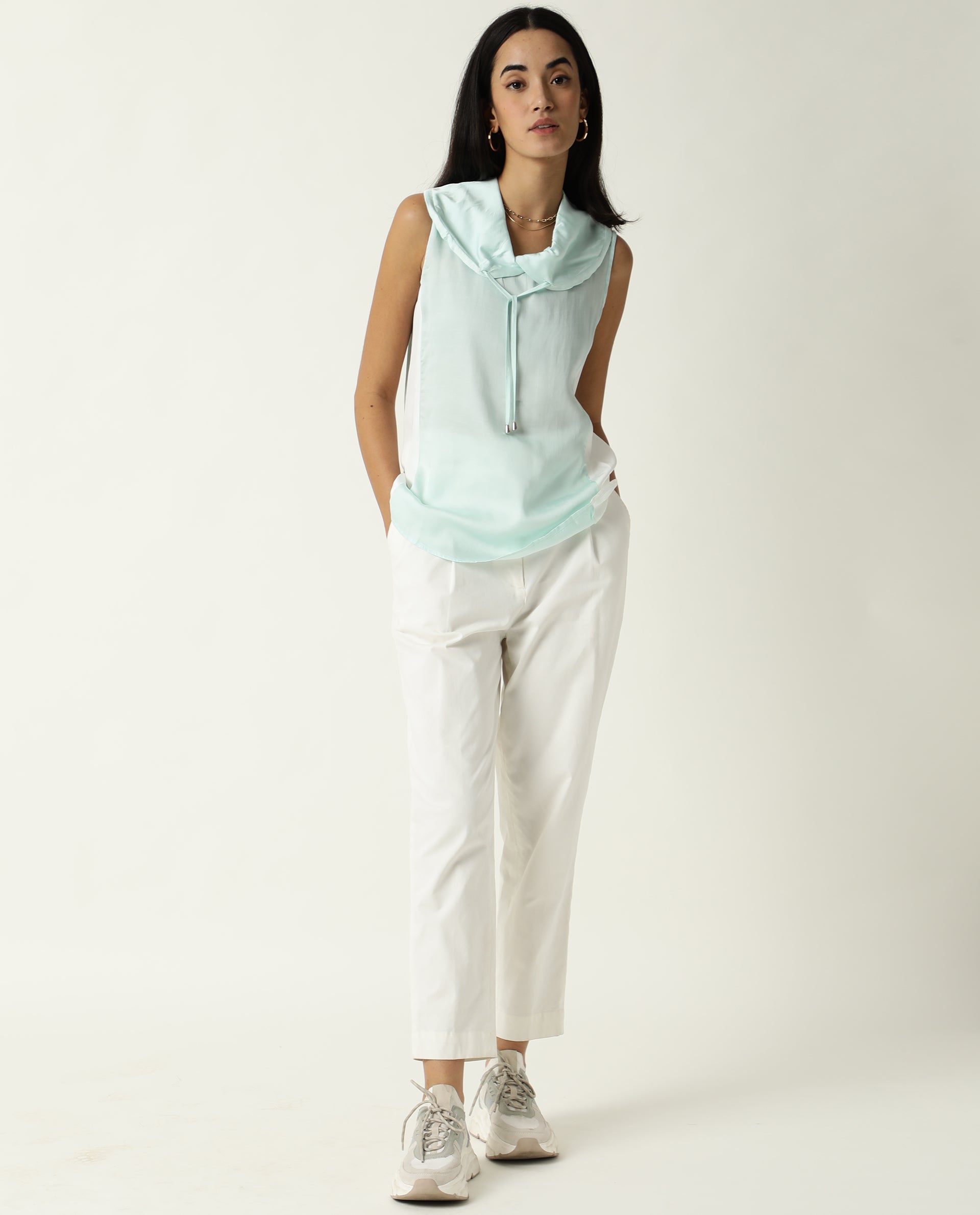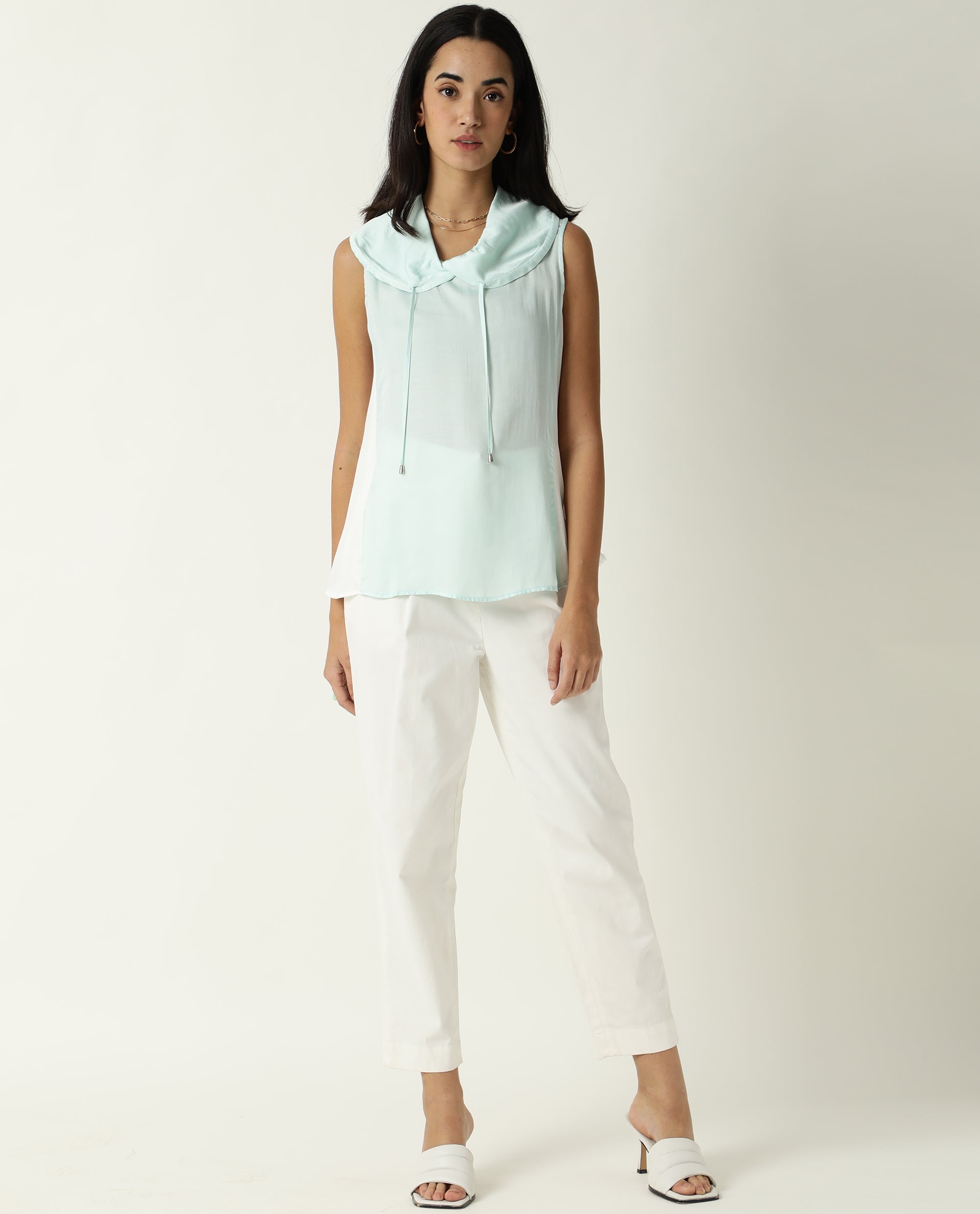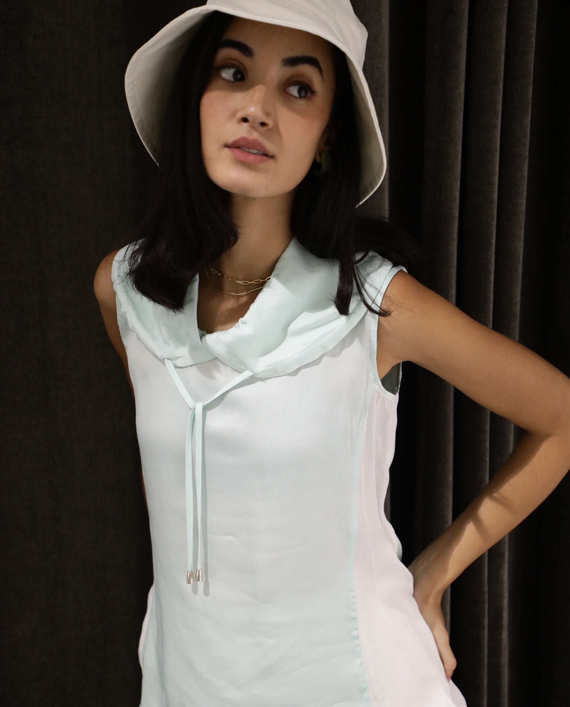 SATIN DRAWCORD DETAIL COLOUR BLOCKED TOP