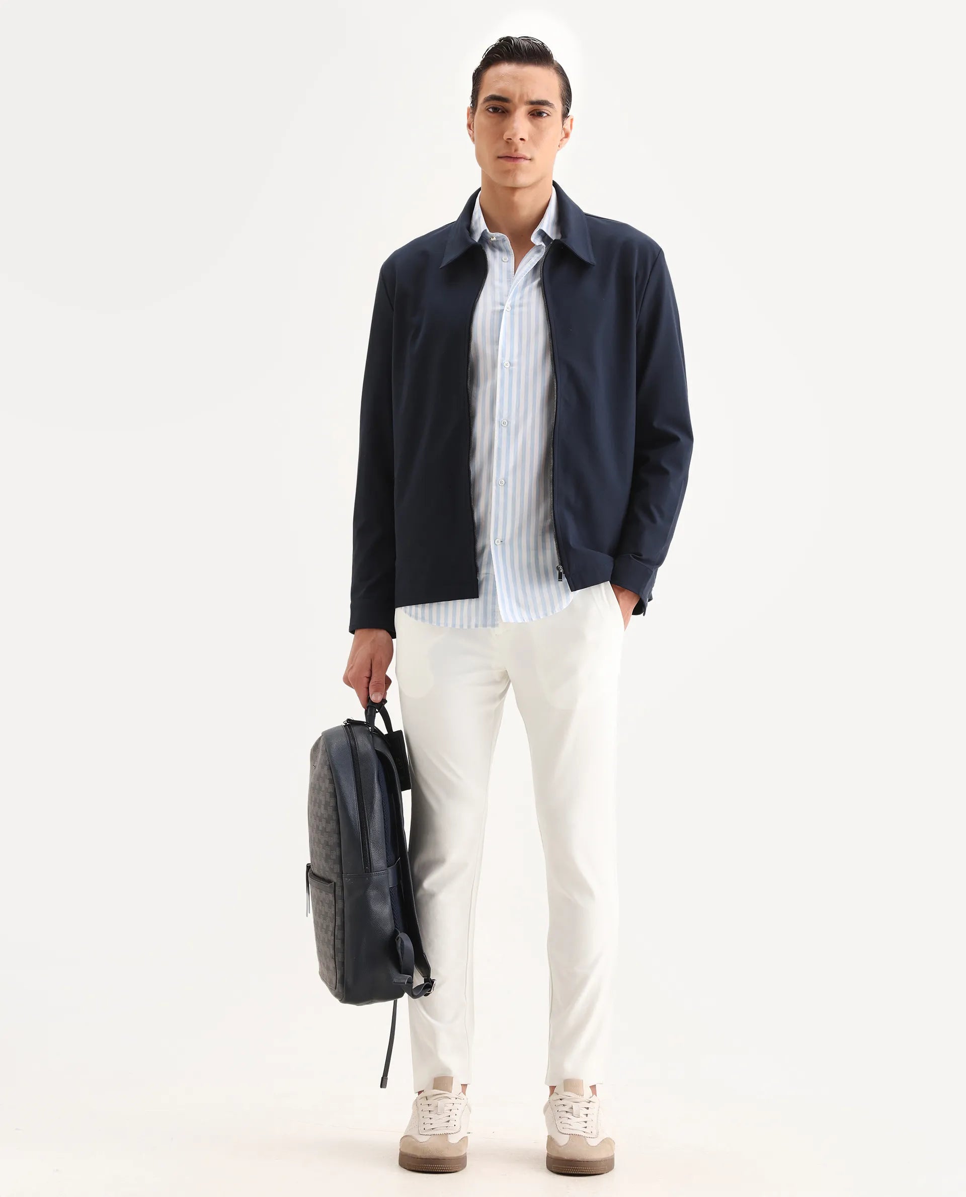 A premium Solid 4 Way stretch trouser with an Elastic on waist side patches.