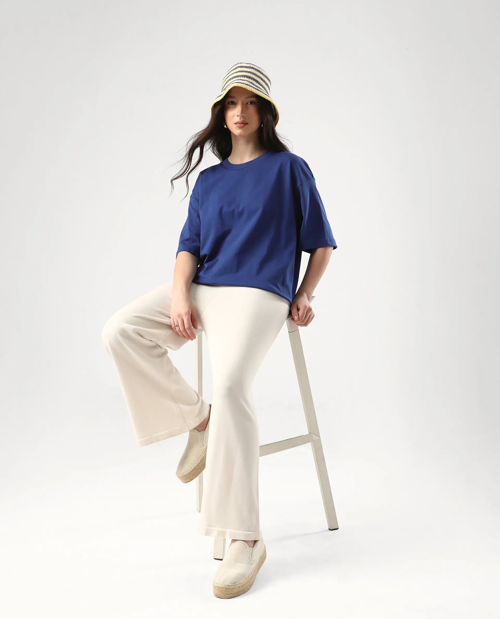 This Rareism Women Trebel Blue T-Shirt is the perfect addition to your wardrobe. Made with a comfortable pull on closure and soft cotton material, it features an oversized fit and eye-catching graphic print. Stay trendy and comfortable at the same time with this must-have tee.