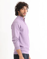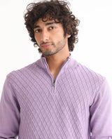 Rare Rabbit Mens Troyo Pastel Purple Sweater Cotton Fabric High Neck Knitted Full Sleeves Zipper Closure Regular Fit