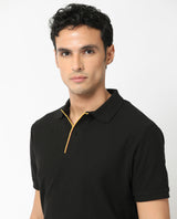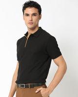Rare Rabbit Men's Turino Black Cotton Plain Regular Fit Half Sleeve Polo
