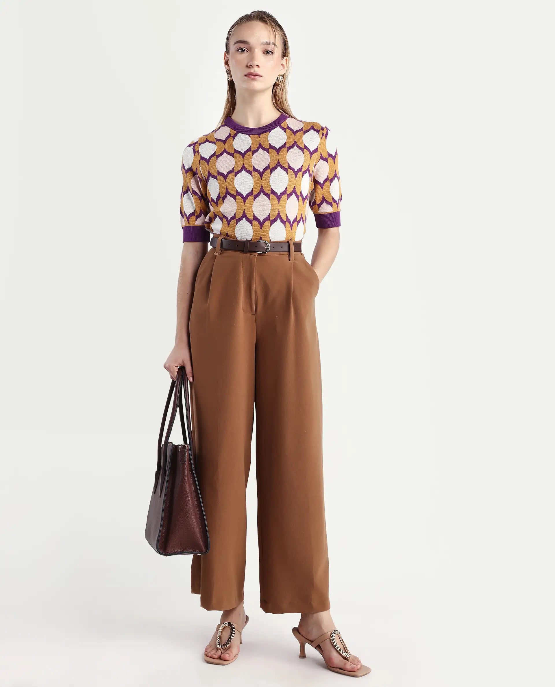 2. Features a stylish geometric jacquard print, adding a modern touch to your look.