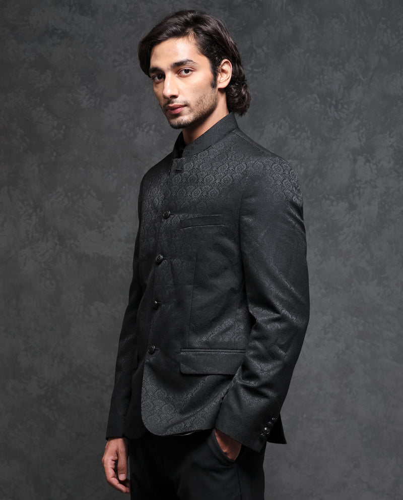 MANDARIN COLLAR JACQUARD BANDHGALA