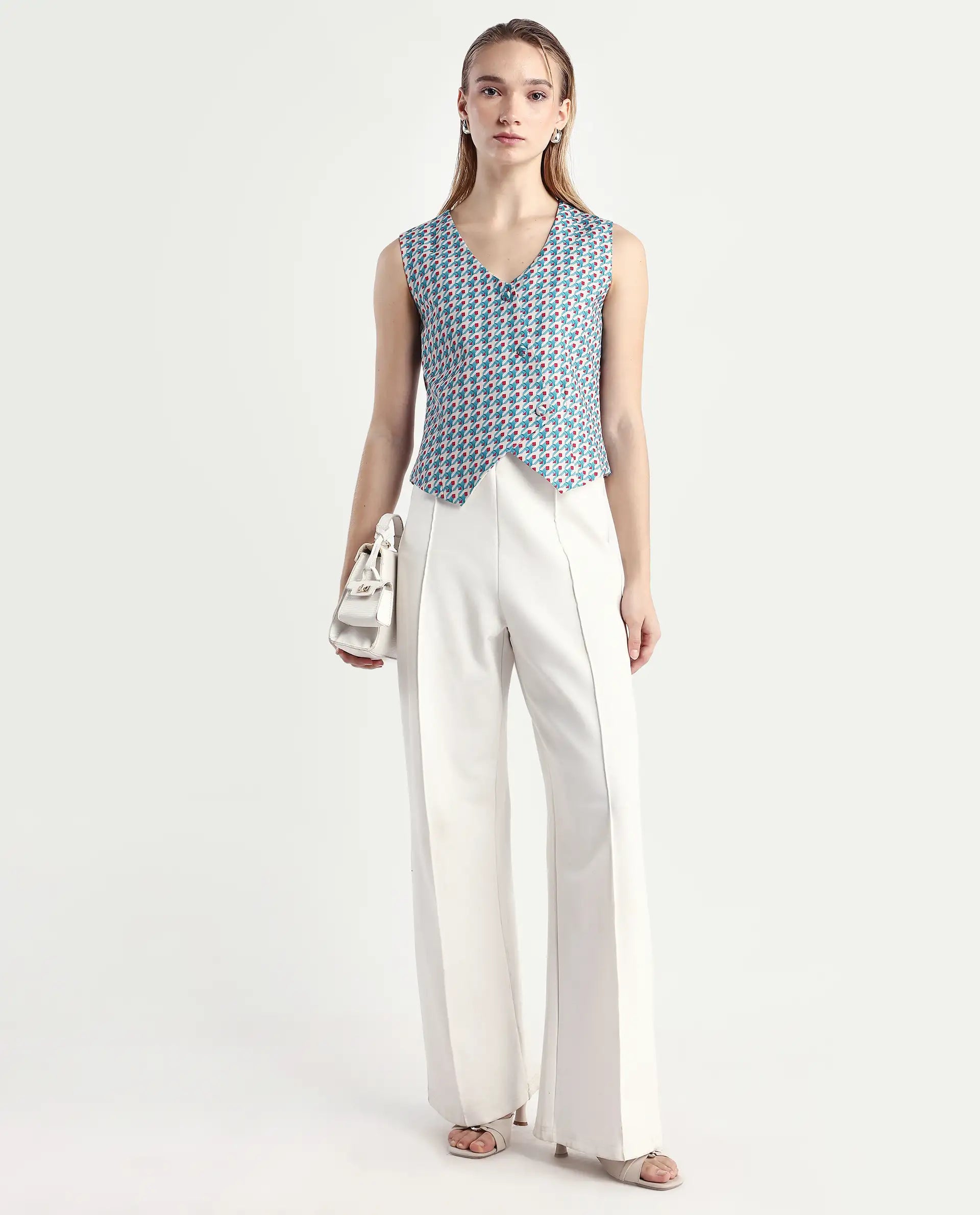 Go bold with our Rareism Women Utkil top! This playful piece features a stylish cropped houndstooth design, perfect for those who don't take themselves too seriously. Made from durable polyester fabric, this sleeveless top boasts a flattering v-neck and button closure for a regular fit that will turn heads.
