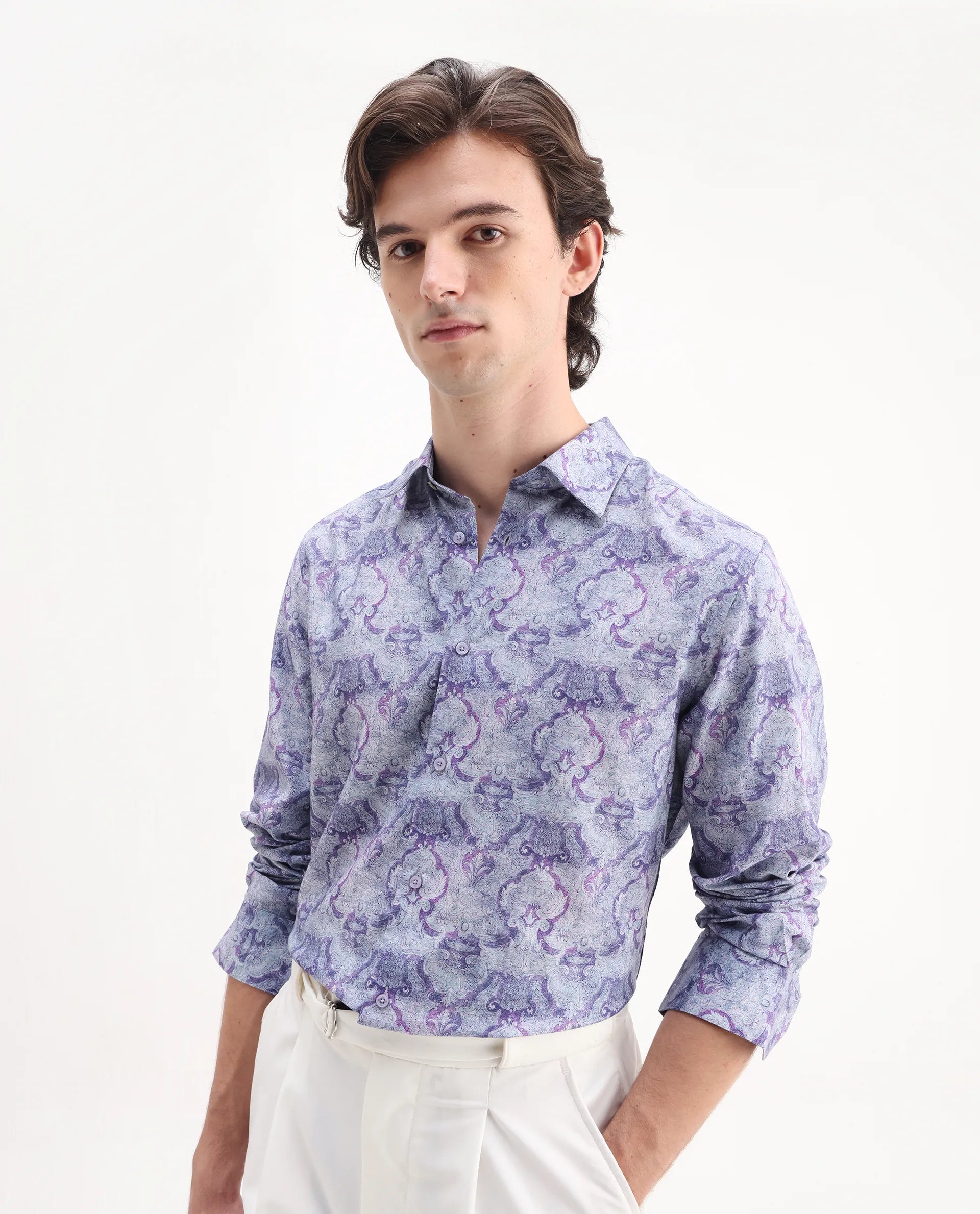 This mens shirt from RARE RABBIT carries a contemporary and minimal charm. Its neat styling keeps the outfit looking fresh and composed. A reliable pick for someone who prefers a soft, modern aesthetic.
