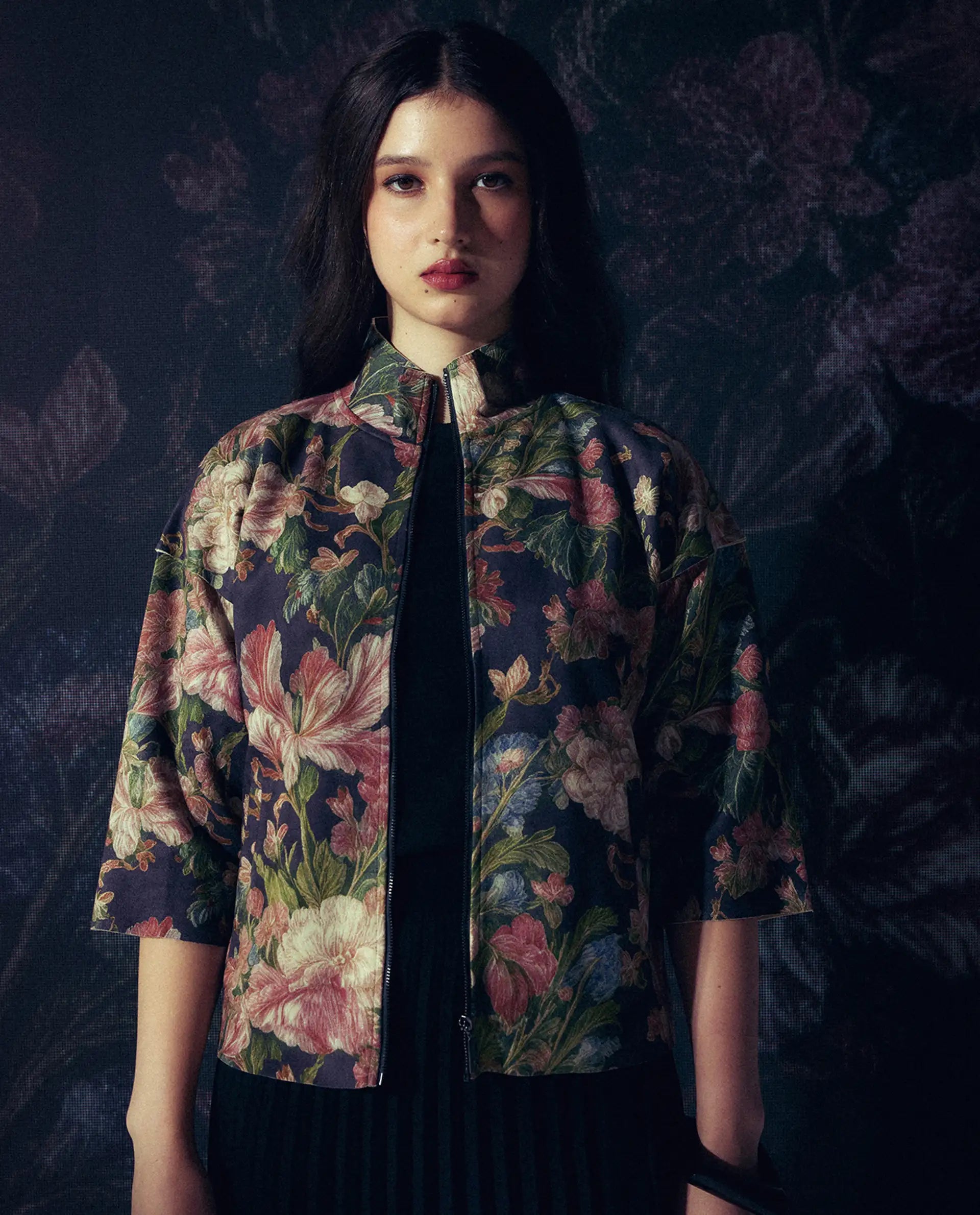 - The model (Chest-34, Waist-28, Hips-38, Height-178 cms) is wearing a size XS.