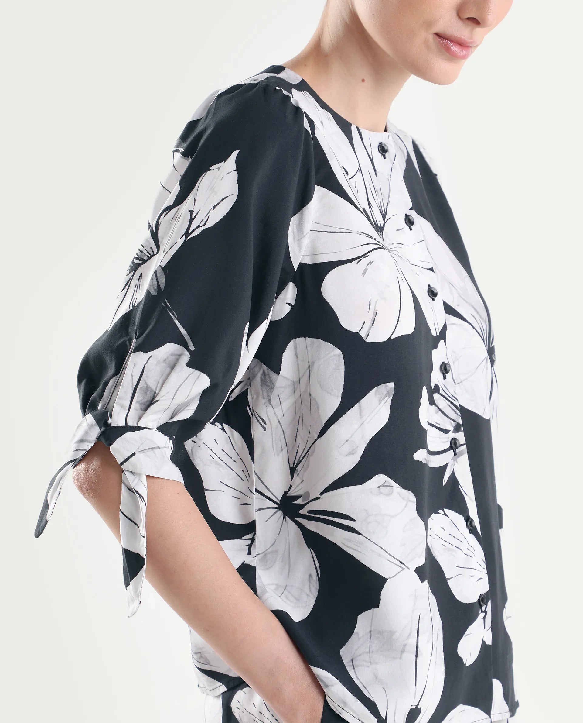 VASHA-T - BLACK FLORAL PRINT BUTTON DOWN TOP
