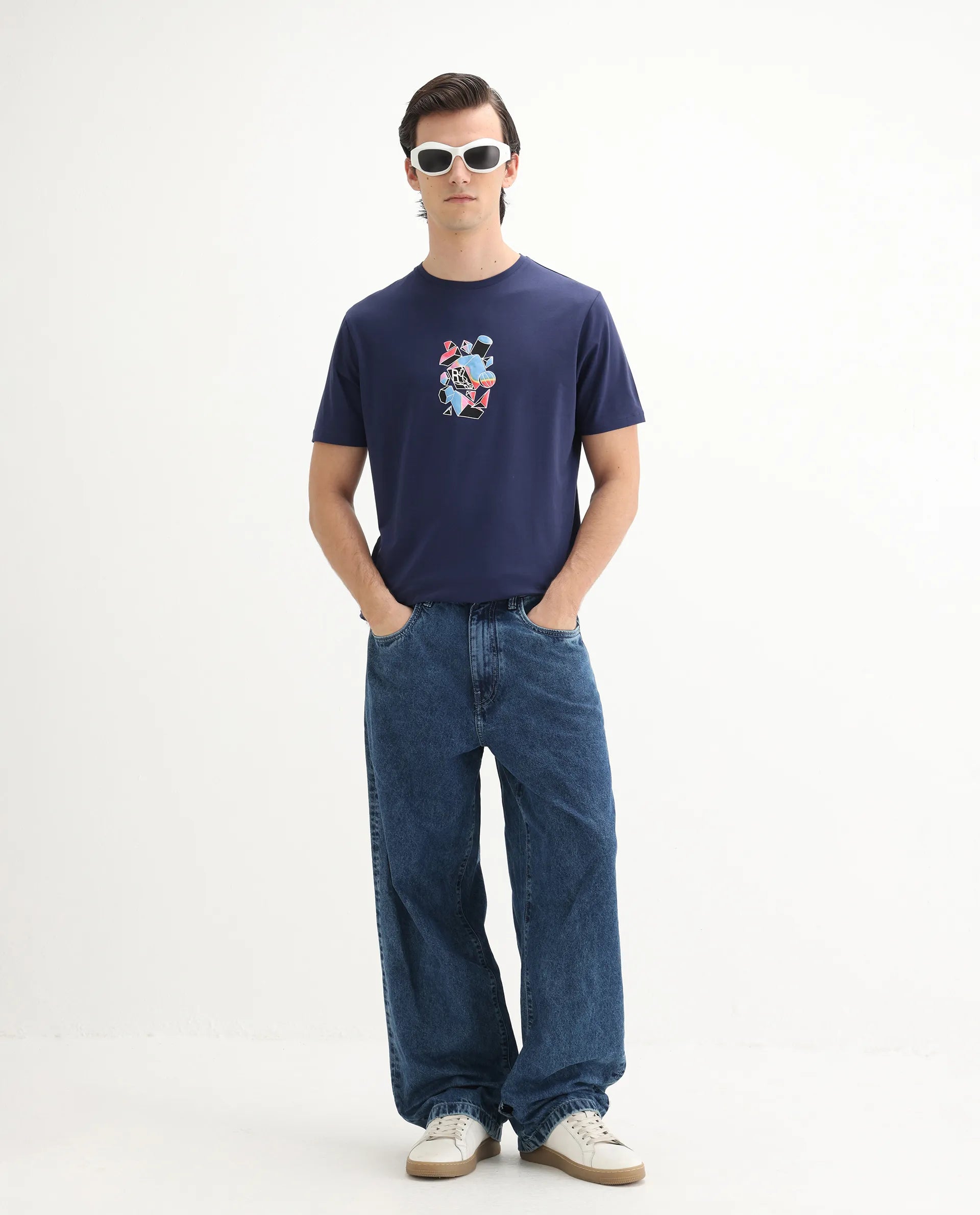 This mens t-shirt from RARE RABBIT carries a contemporary and minimal charm. Its neat styling keeps the outfit looking fresh and composed. A reliable pick for someone who prefers a soft, modern aesthetic.