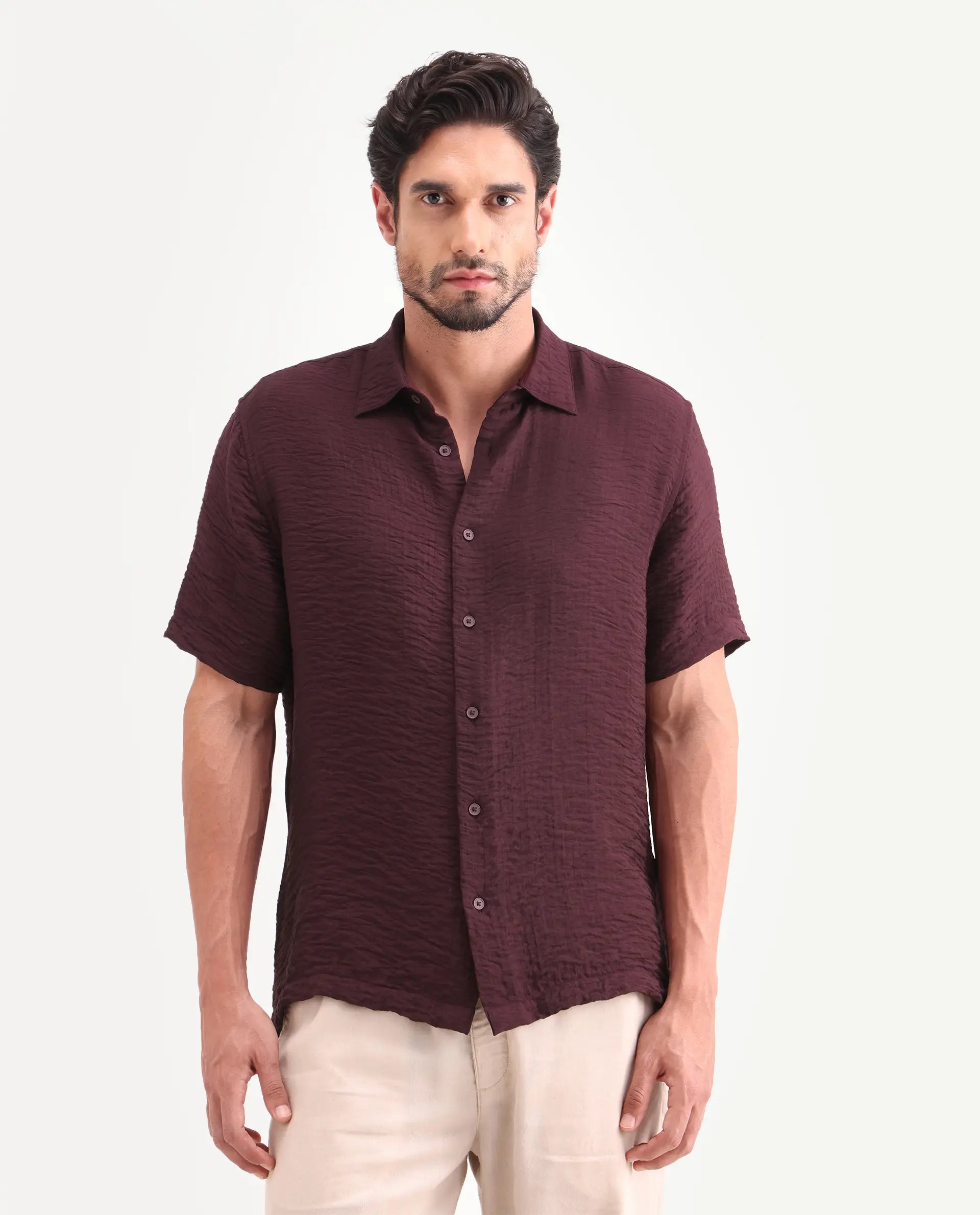 Elevate your everyday wardrobe with this sophisticated half-sleeve shirt from Rare Rabbit. Crafted from a premium viscose blend fabric, it delivers exceptional breathability and a refined drape that flatters the silhouette. The spread collar and regular fit create a versatile foundation for both casual and semi-formal occasions. The understated colorway ensures effortless styling versatility, pairing seamlessly with tailored trousers, chinos, or denim. Perfect for the discerning man who values quality construction and timeless design.