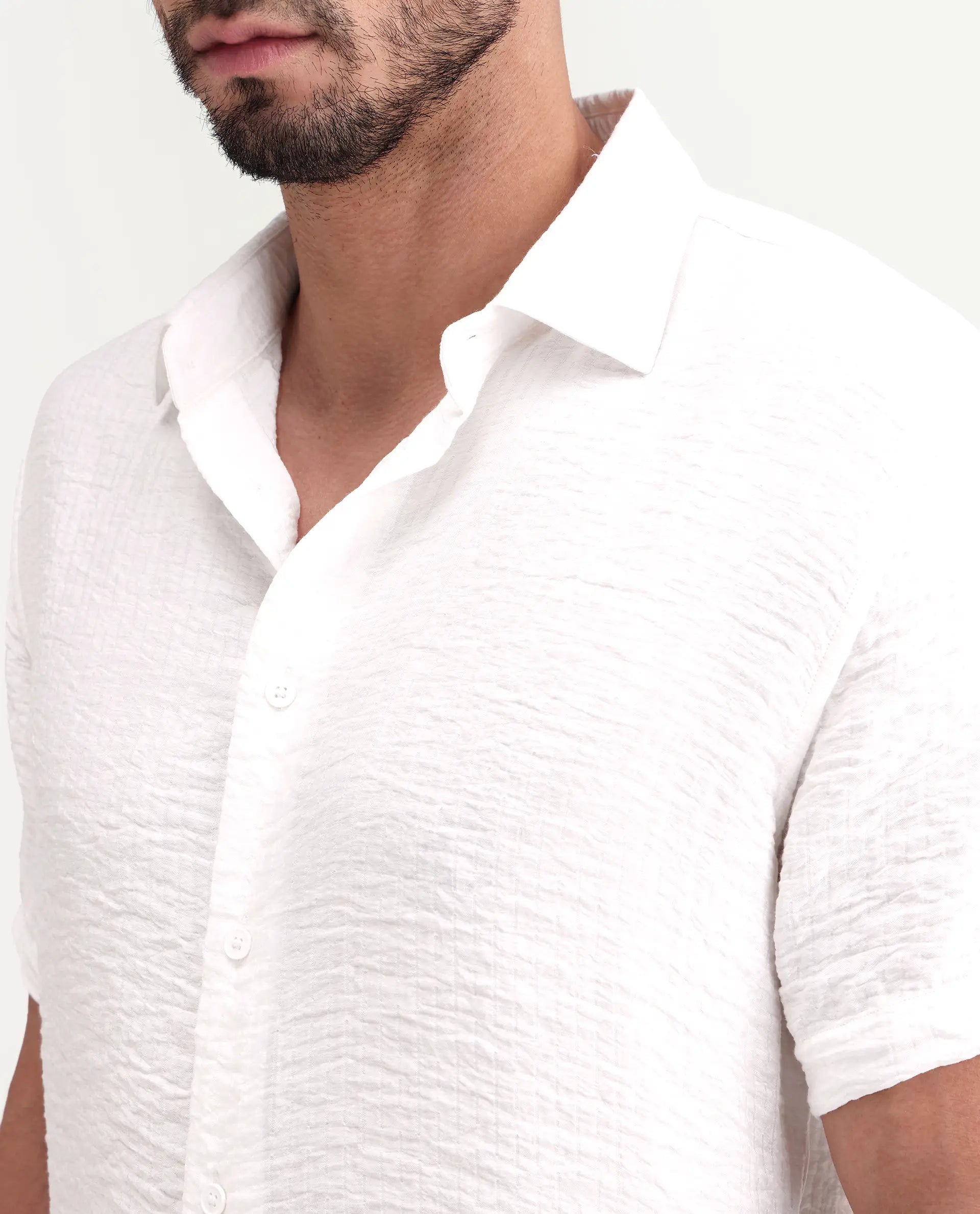 VEON-SS - OFF WHITE REGULAR FIT SOLID SHORT SLEEVE SHIRT