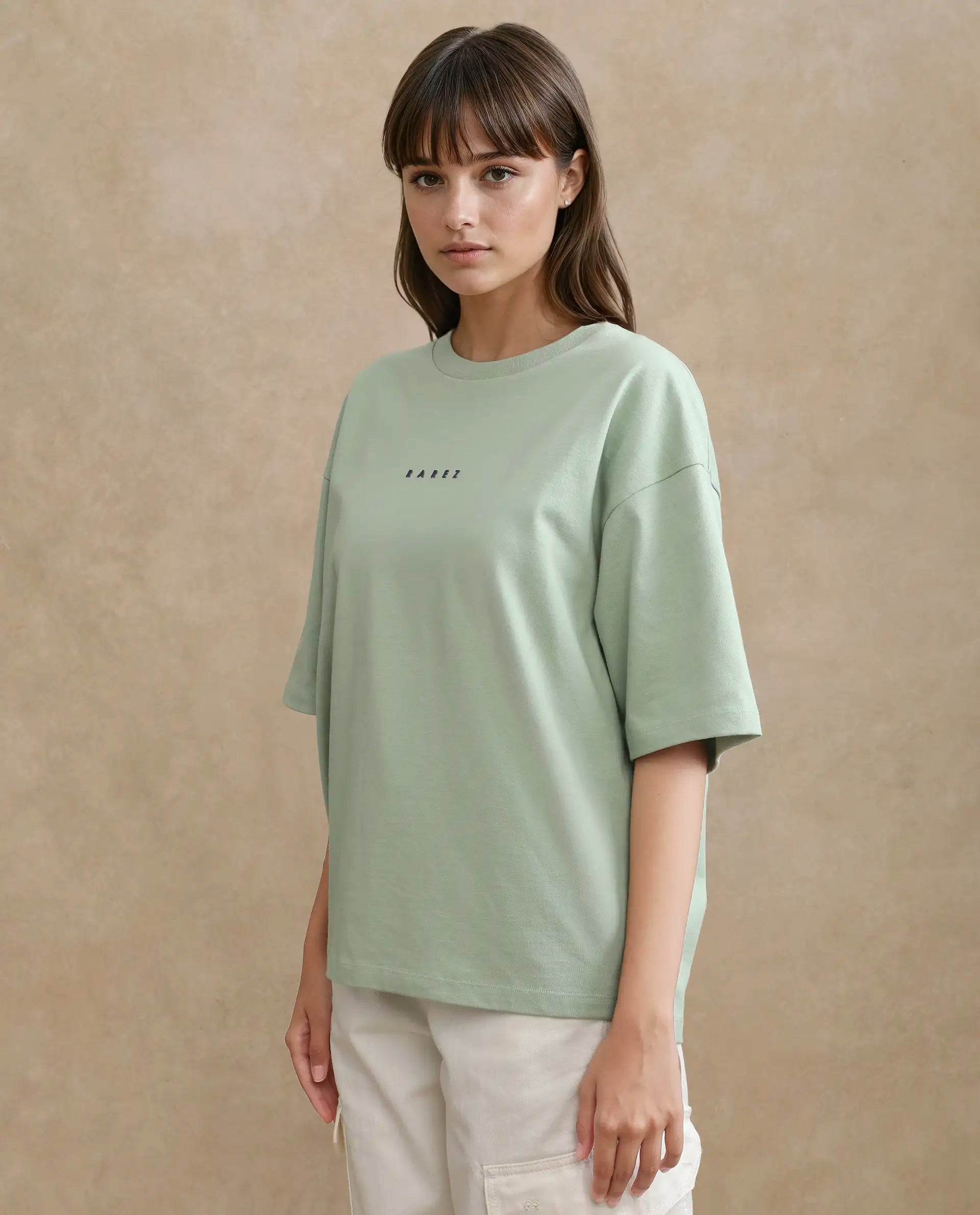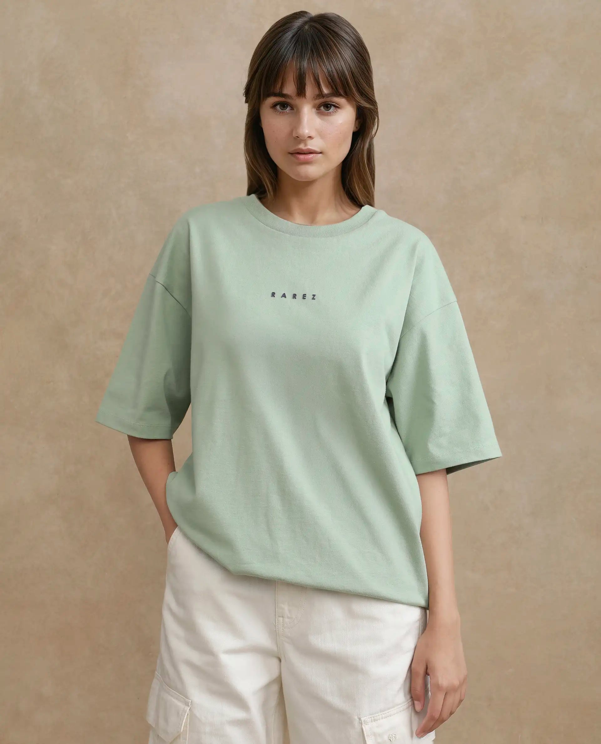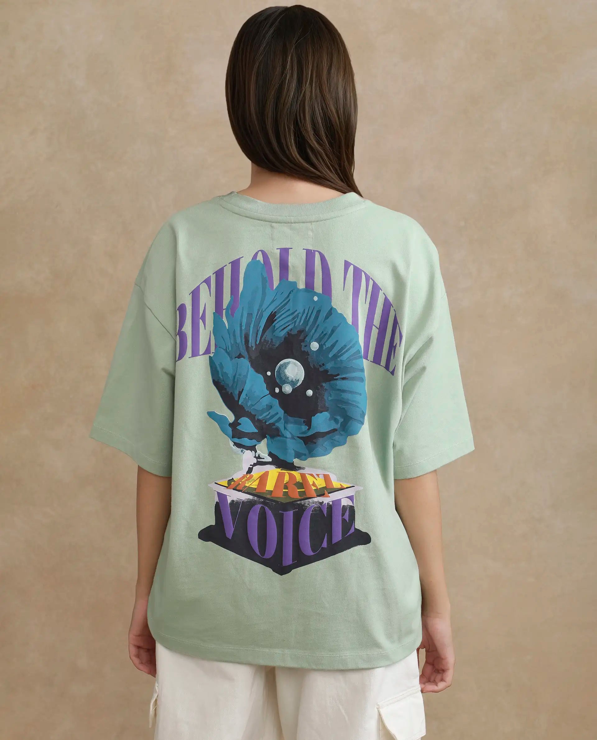 Rareism Women's Voltz Green Cotton Graphic Print Oversized T-Shirt