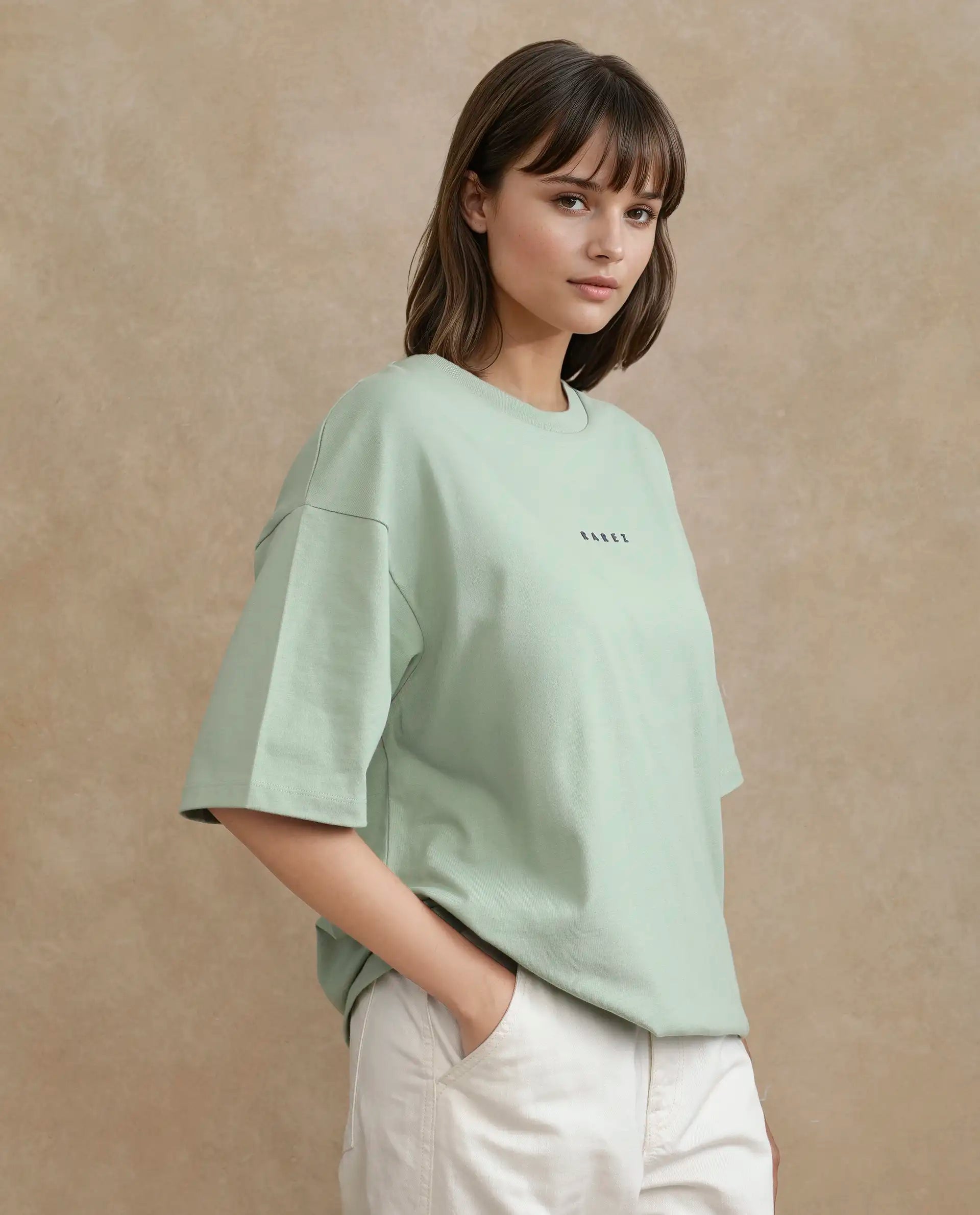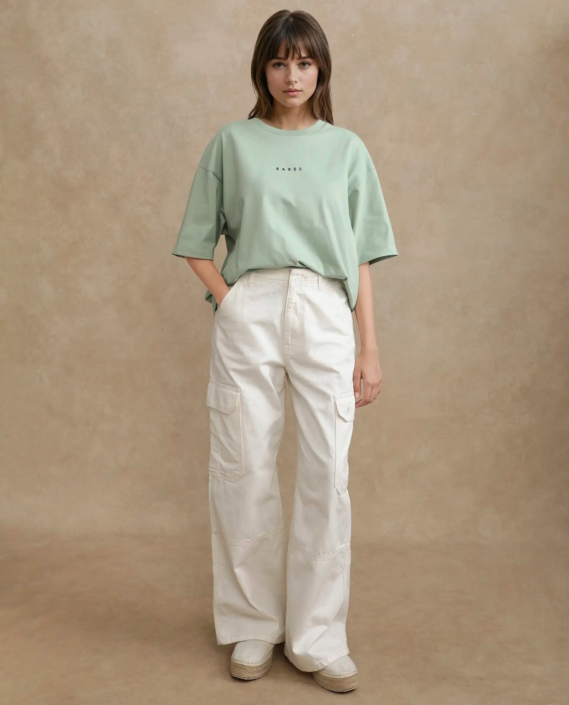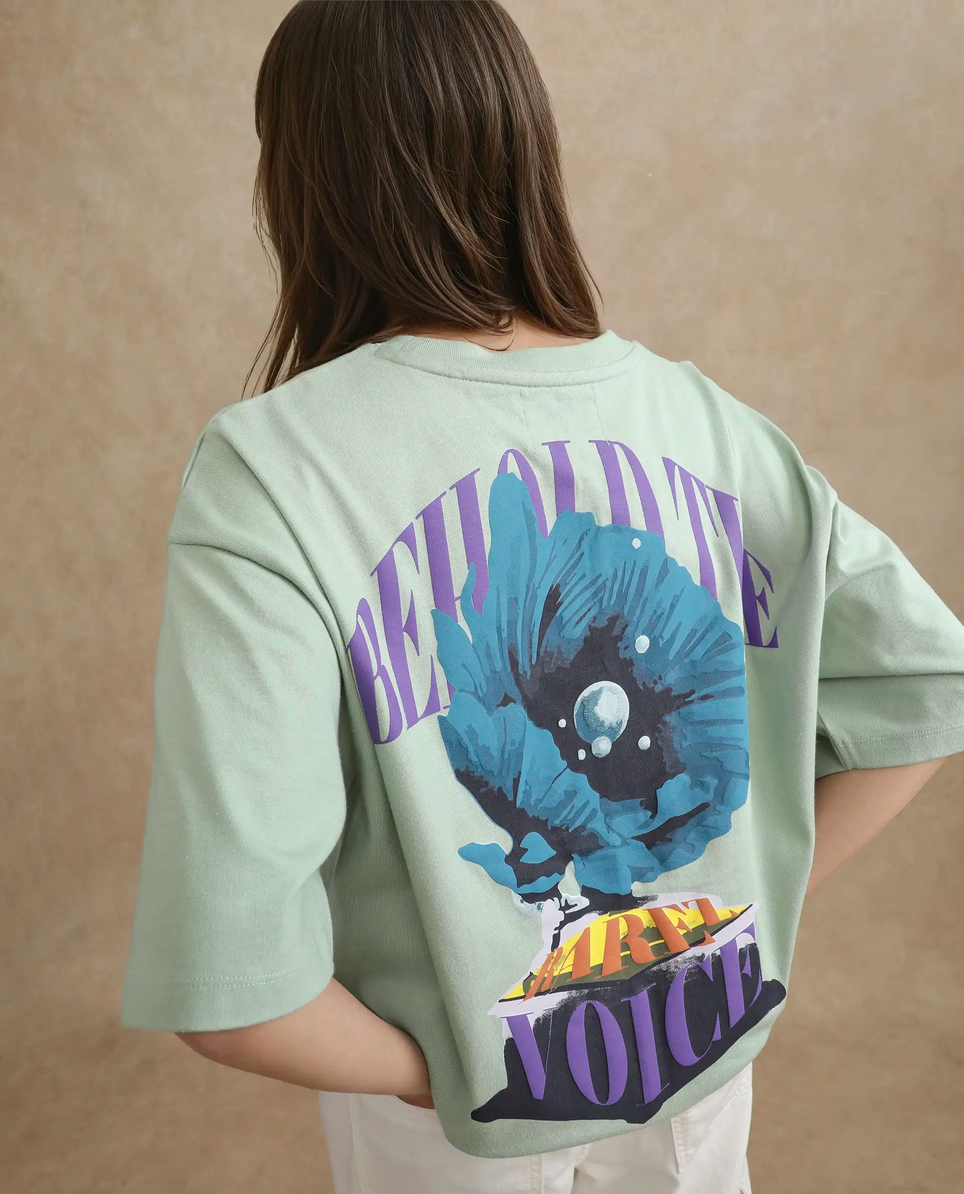 Rareism Women's Voltz Green Cotton Graphic Print Oversized T-Shirt
