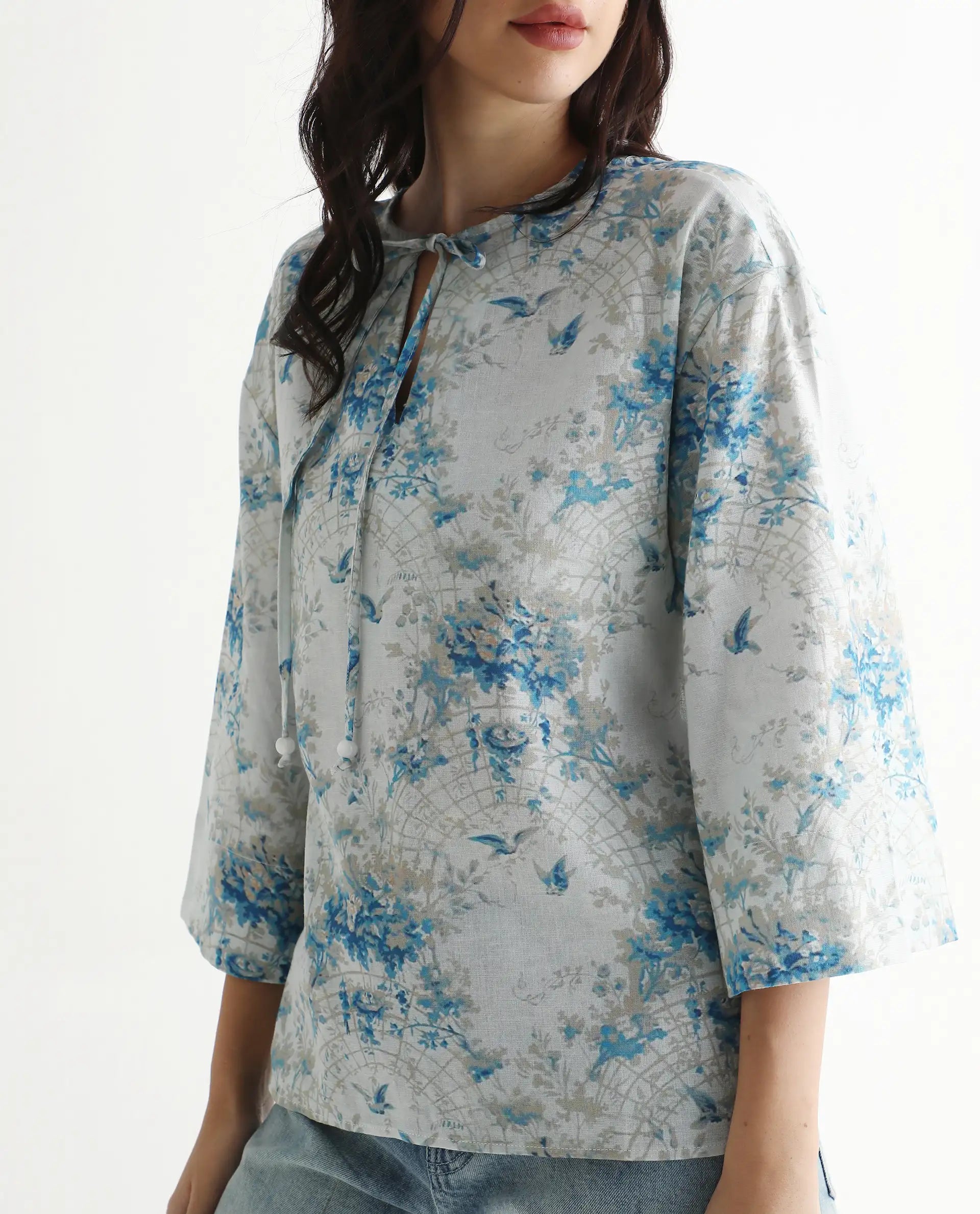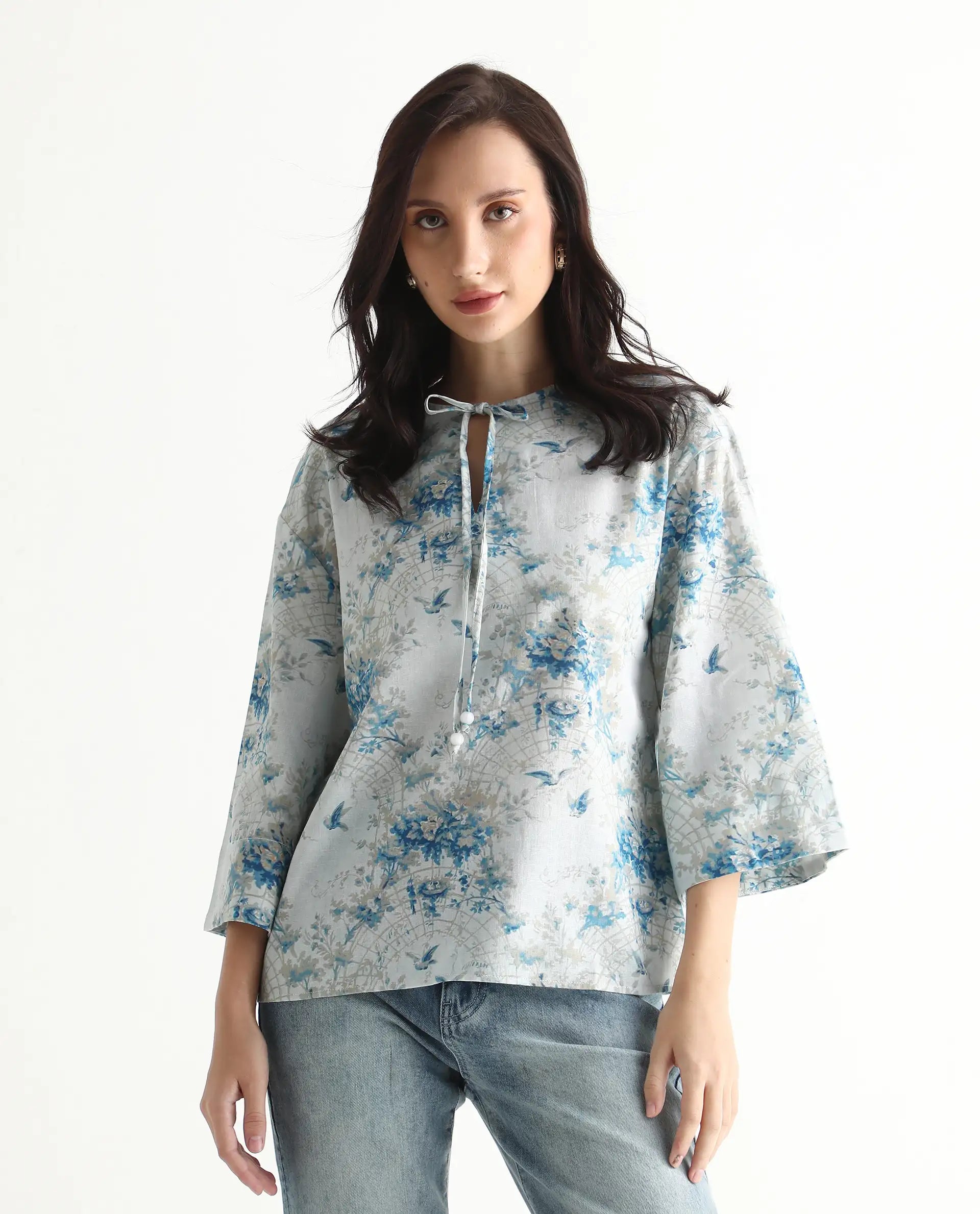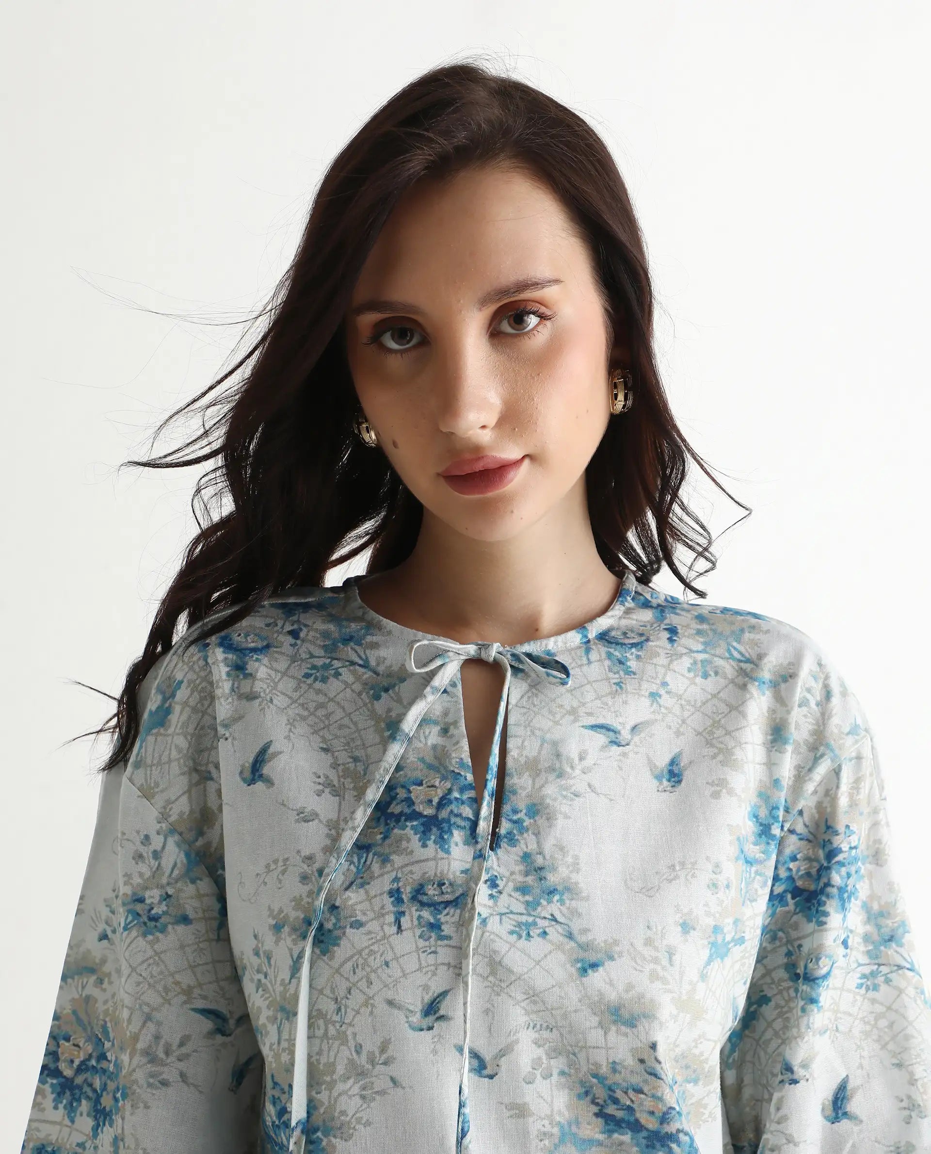 1. Tie-Up Neck: The tie-up neck detail adds a charming, feminine touch, giving the top a relaxed and stylish vibe.