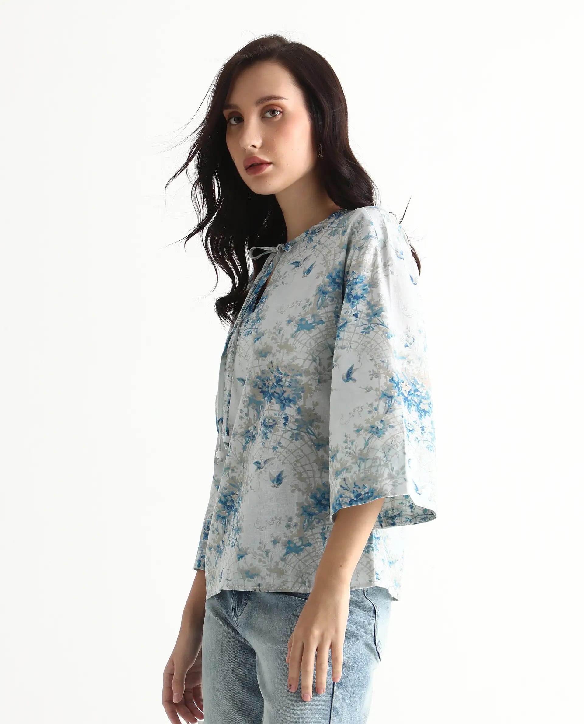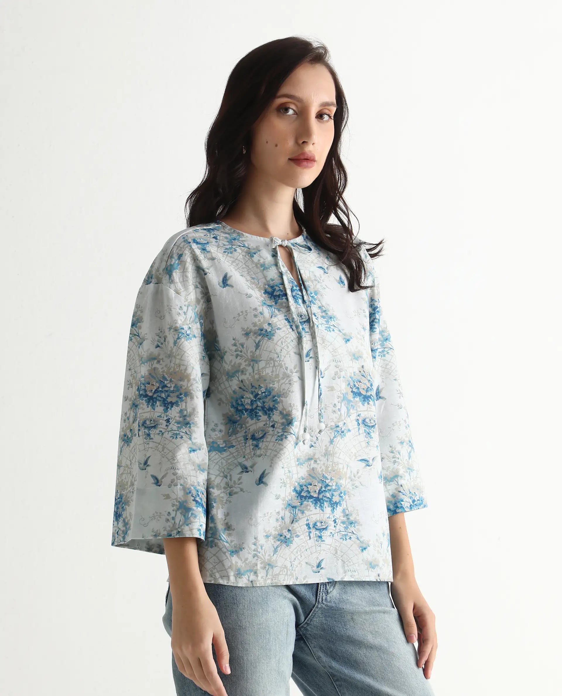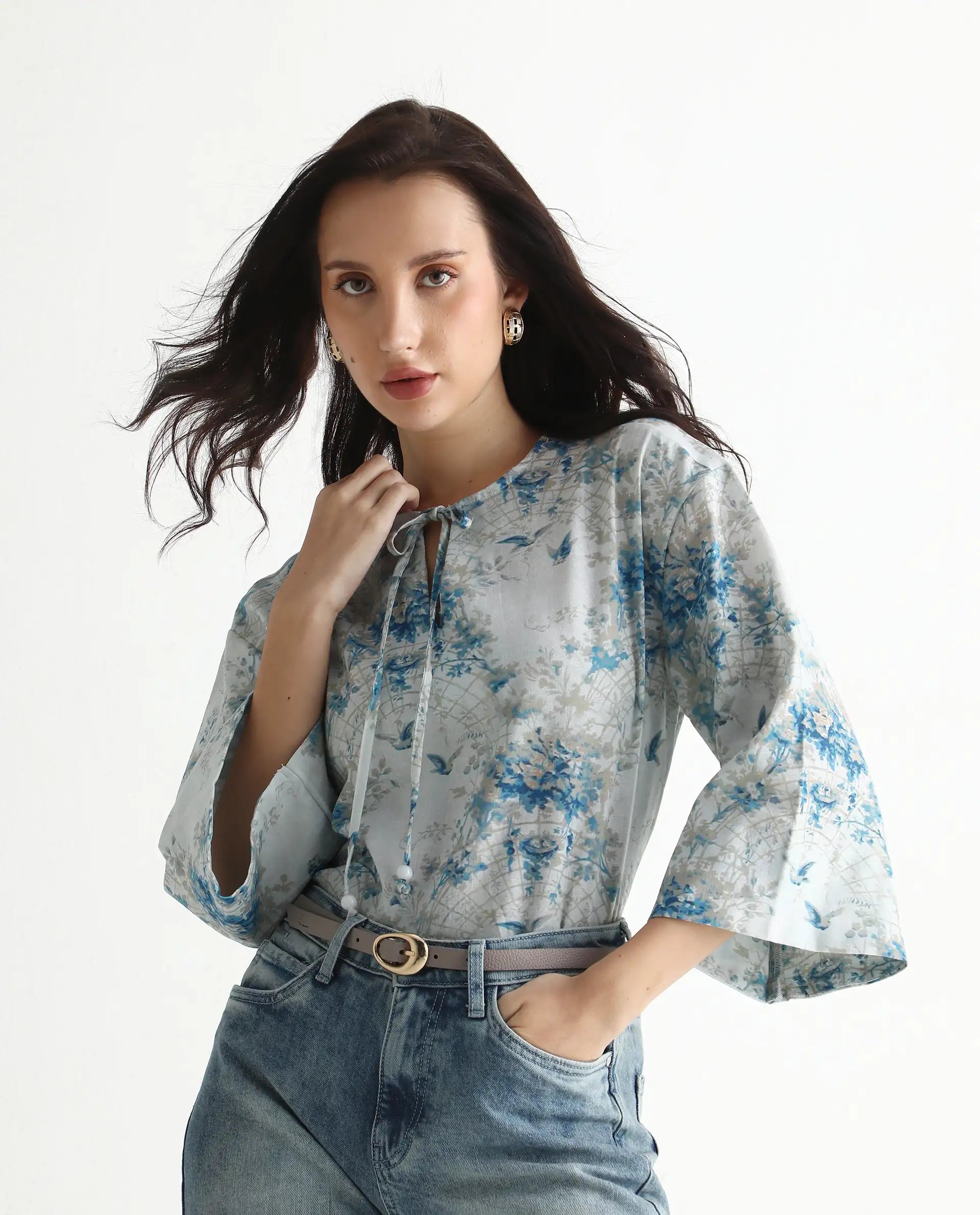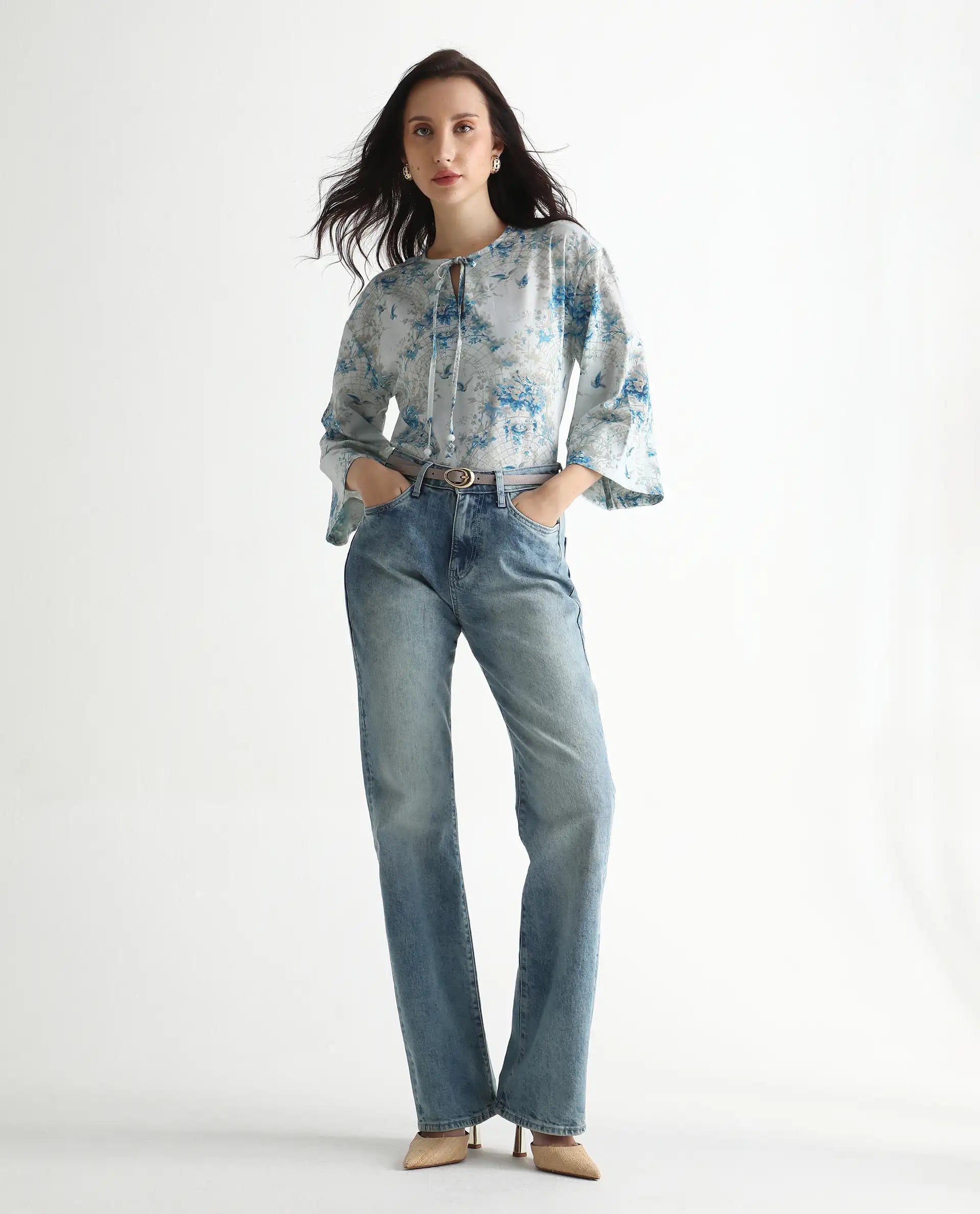 1. Tie-Up Neck: The tie-up neck detail adds a charming, feminine touch, giving the top a relaxed and stylish vibe.