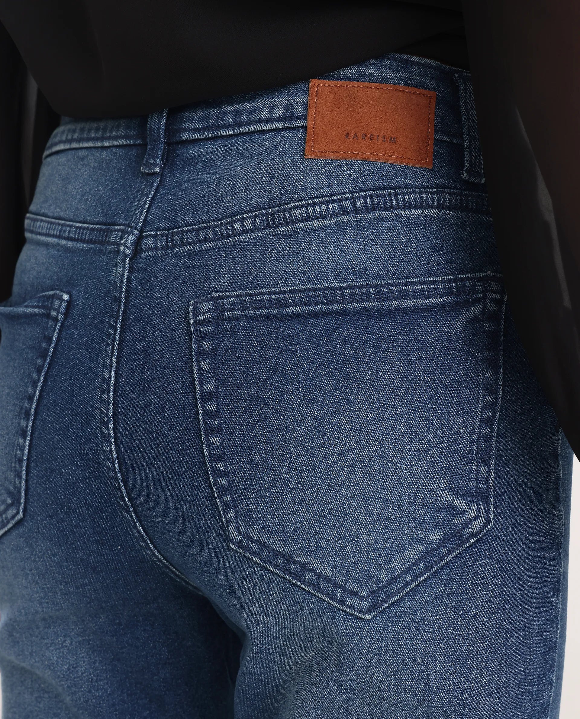 Rareism Women's Zing Blue Cotton Blend Plain Ankle Length Sleek Skinny Fit Jeans