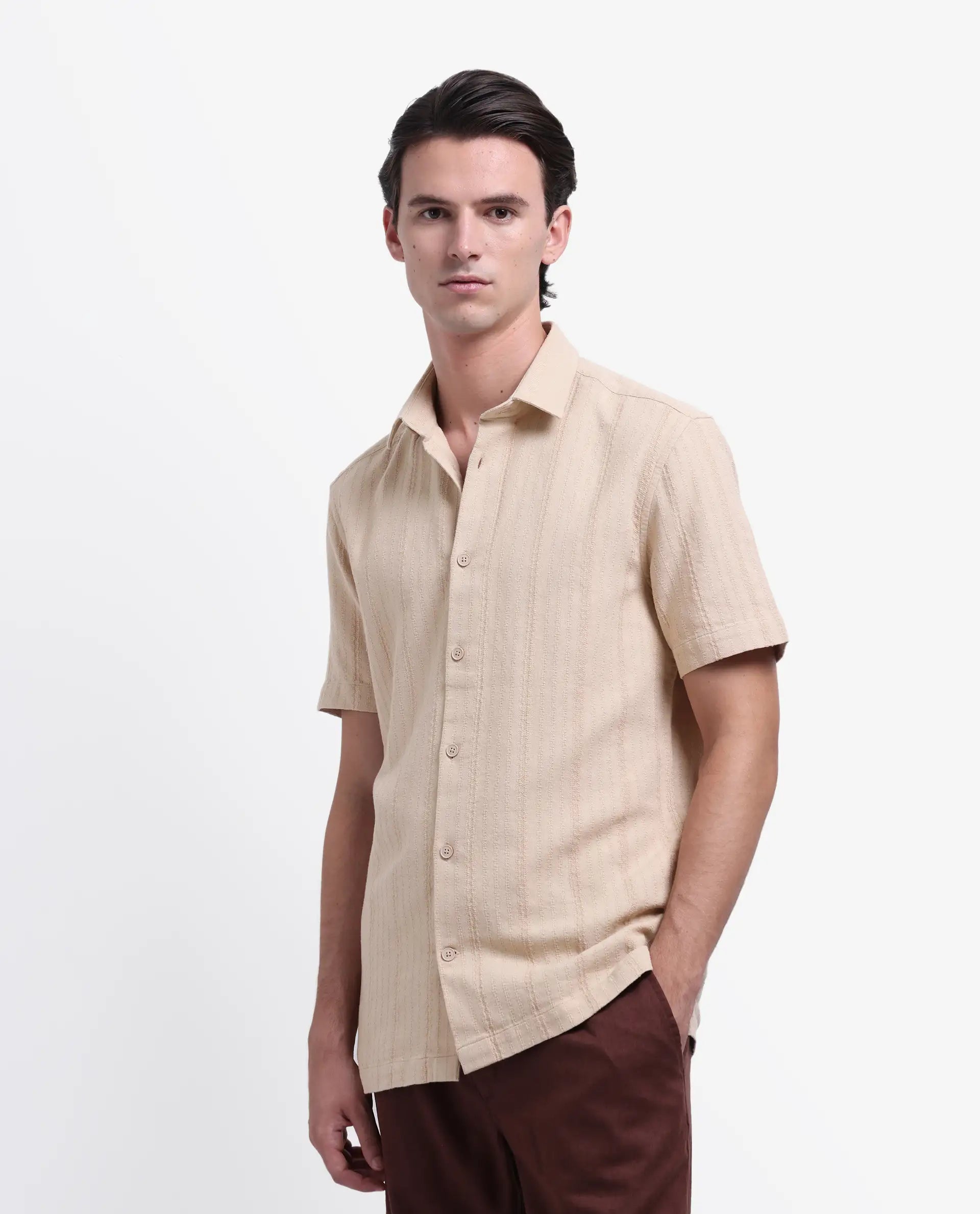 This mens shirt from RARE RABBIT carries a contemporary and minimal charm. Its neat styling keeps the outfit looking fresh and composed. A reliable pick for someone who prefers a soft, modern aesthetic.